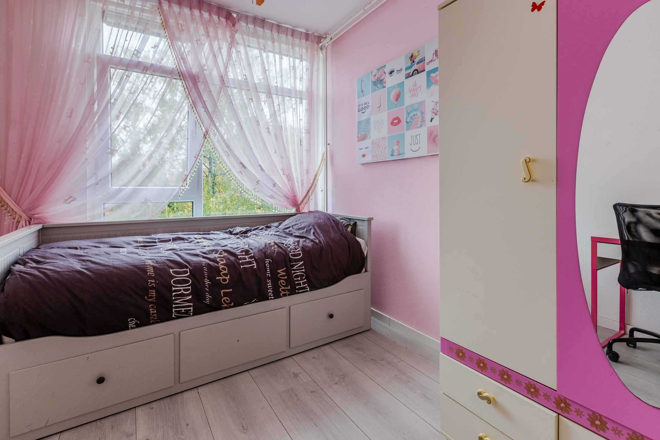 Als bewoner van dit appartement beschik je over drie volwaardige slaapkamers. Net als in het woongedeelte is hier gebruikgemaakt van mooi laminaat voor de vloeren.