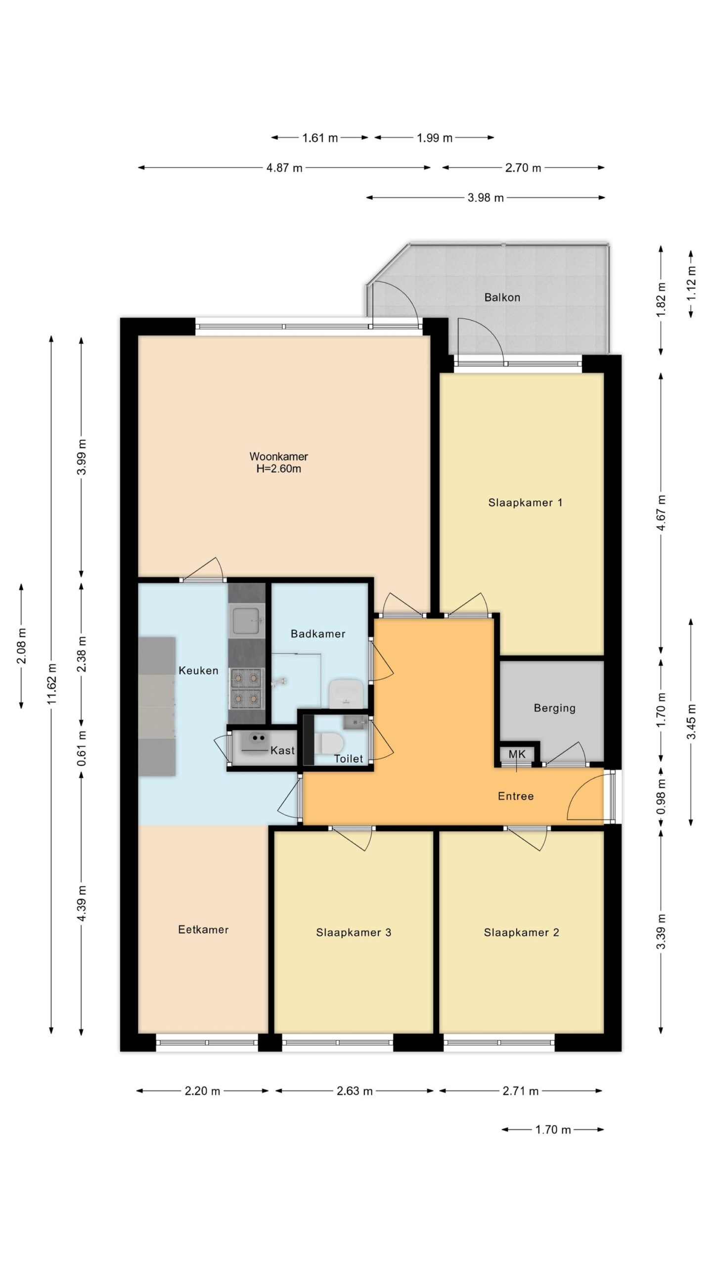 Dit instapklare appartement biedt 88 (!) vierkante meter aan woonruimte. Als bewoner beschik je over drie volwaardige slaapkamers, een moderne badkamer, een lichte woonkamer en een prachtige aparte woonkeuken. Bovendien hoort er een fraai balkon bij, waar je dankzij de ligging op de derde verdieping een mooi uitzicht hebt over het park dat naast het gebouw ligt. Tenslotte heb je beneden in het gebouw een eigen berging.