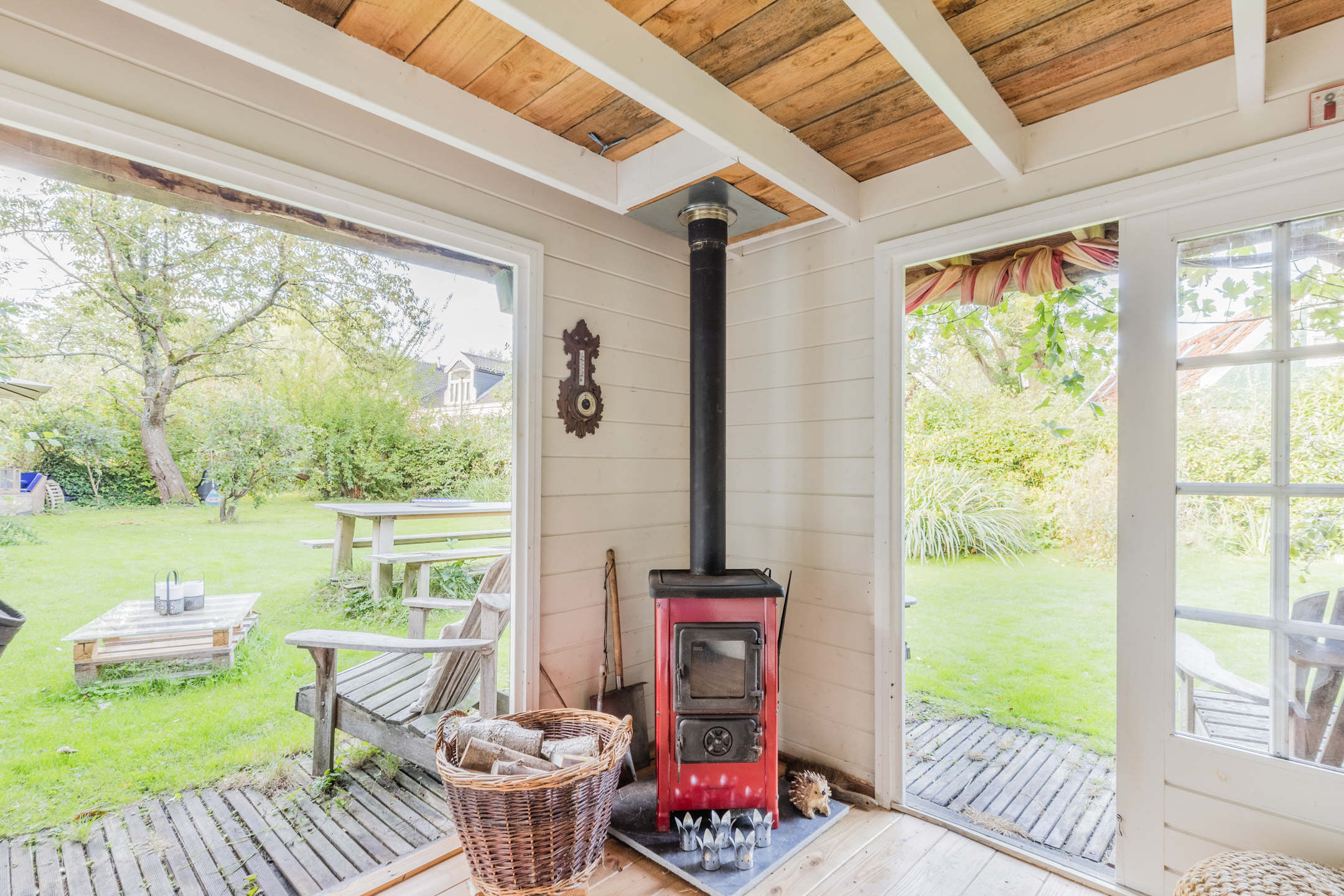 The property has a large, special garden with lawns, fruit trees and natural plants. The garden features a cosy garden shed with a wood stove and sink ā what a wonderful place to get together with friends and family!