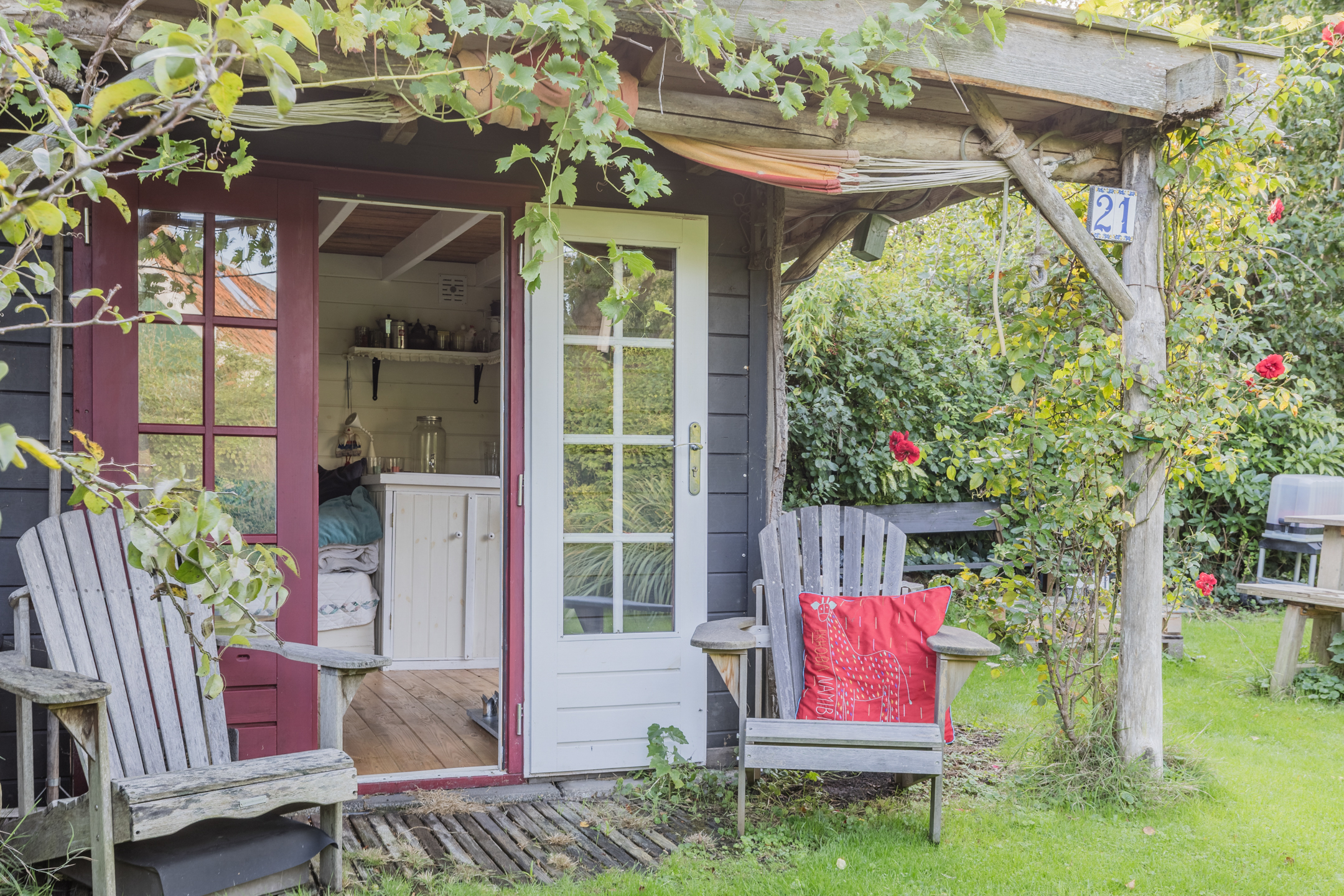 De woning beschikt over een grote, bijzonder gelegen tuin met gazon, fruitbomen en is omringd door greppels en natuurlijke begroeiing. In de tuin staat een gezellig tuinhuis met houtkachel en gootsteen ā wat een heerlijke plek om samen te komen met vrienden en familie!