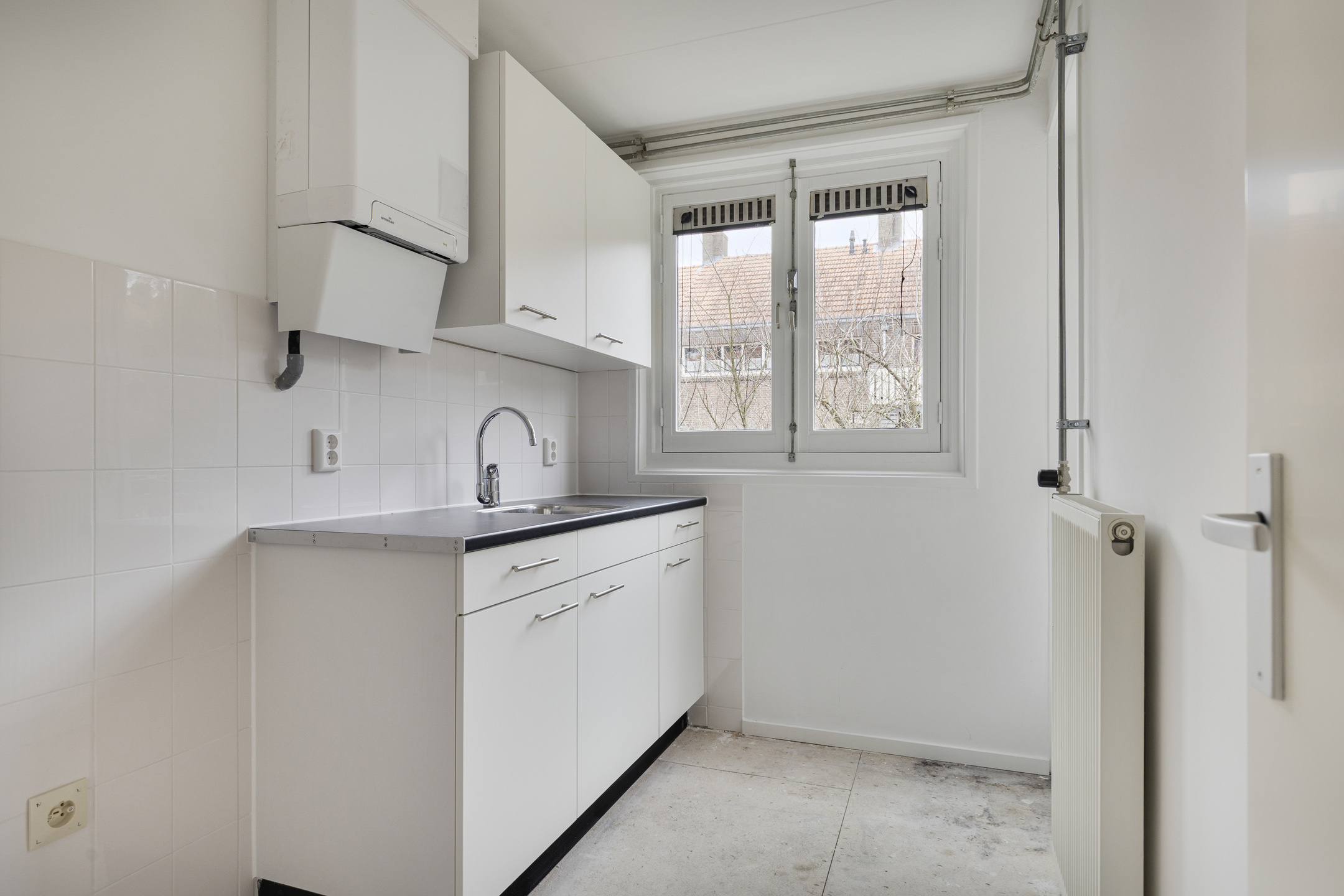 There is a separate cupboard with connections for a washing machine and possibly a dryer. The bathroom includes a toilet and a walk-in shower. Please note: the new tenant must take into account the finishing of the walls and floors. The walls have been newly plastered. Energy label A.