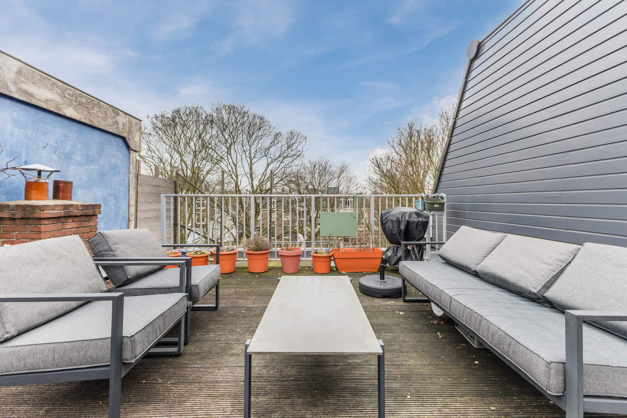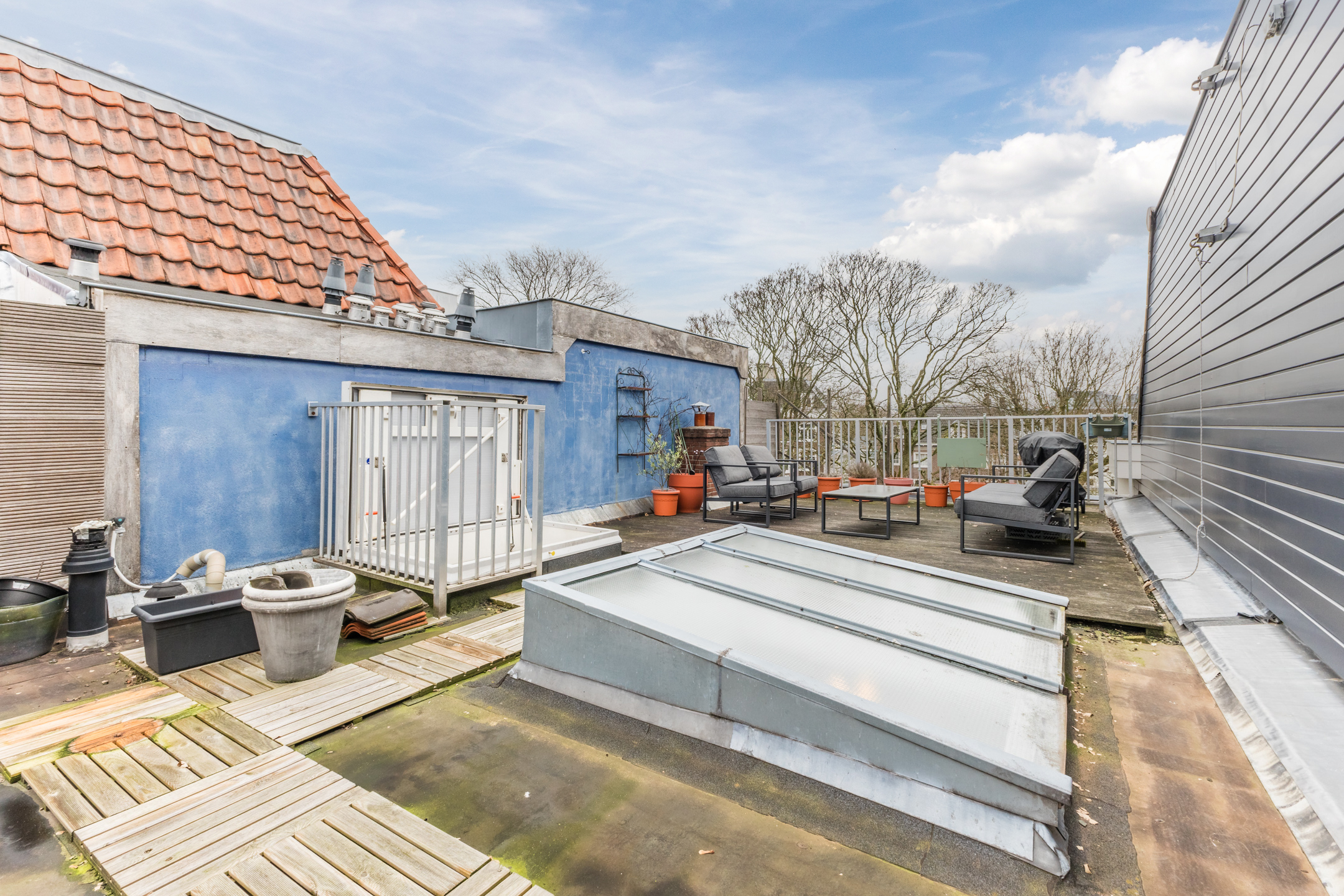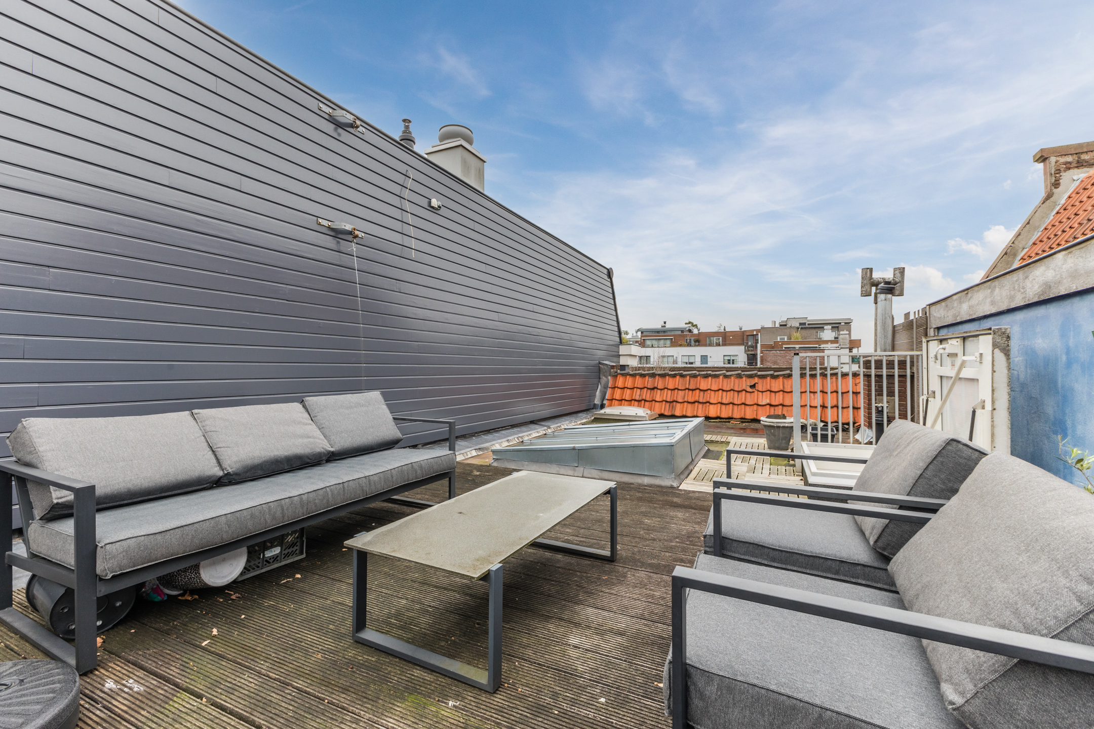 De woning beschikt over een groot dakterras met veel privacy en vrij uitzicht.