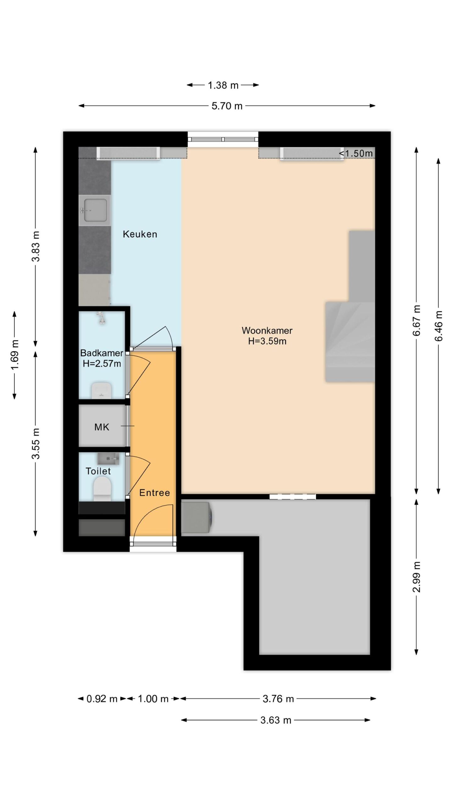- De berging aangrenzend aan het appartement is erbij gekocht en getrokken. Dit is notarieel vastgelegd in de splitsingsakte