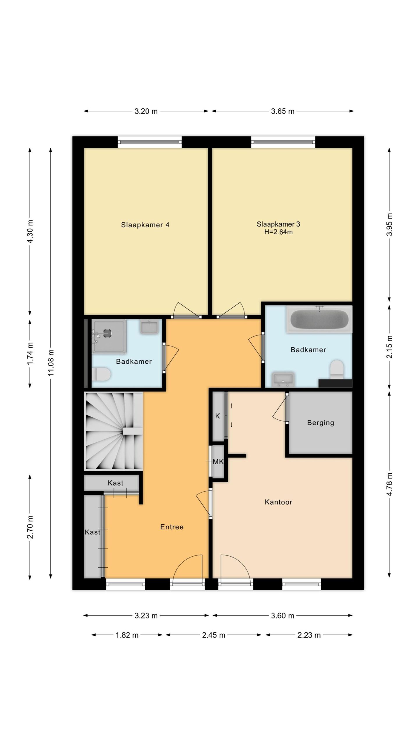 Net als op de eerste woonlaag zijn er op deze verdieping 2 slaapkamers van een goed formaat aanwezig. Naast elke slaapkamer zit een compleet uitgeruste badkamer met zwevend toilet, wastafel en een douche of bad. Tevens is er op deze etage een ruime kantoorruimte aanwezig welke over een eigen voordeur beschikt en daardoor ideaal is voor het ontvangen van klanten.