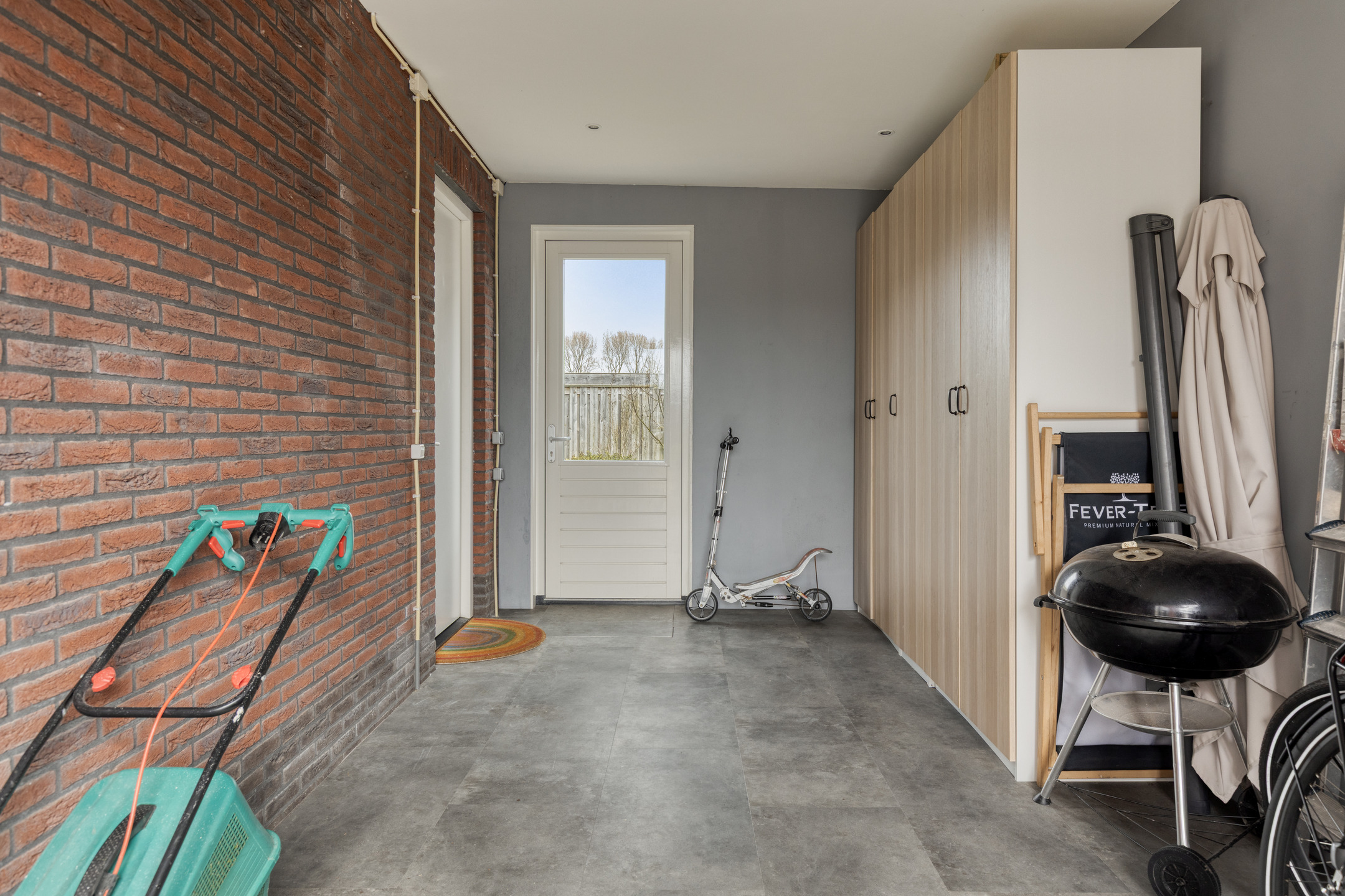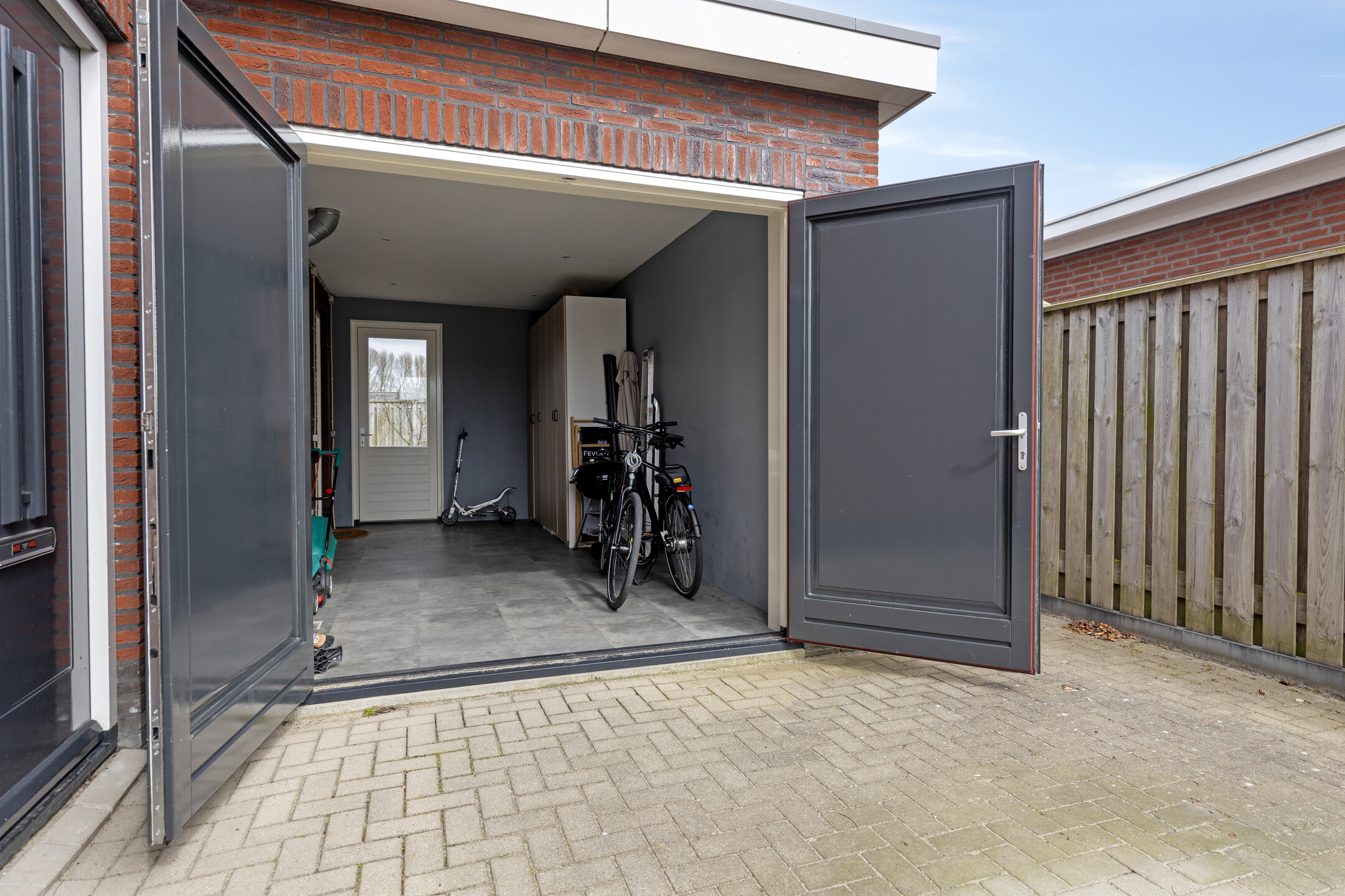 Aan de voorzijde beschik je over een eigen oprit met ruimte voor 2 auto's. De aangebouwde garage is zowel vanaf de oprit als vanuit de achtertuin en de keuken bereikbaar, wat zorgt voor extra gebruiksgemak.
