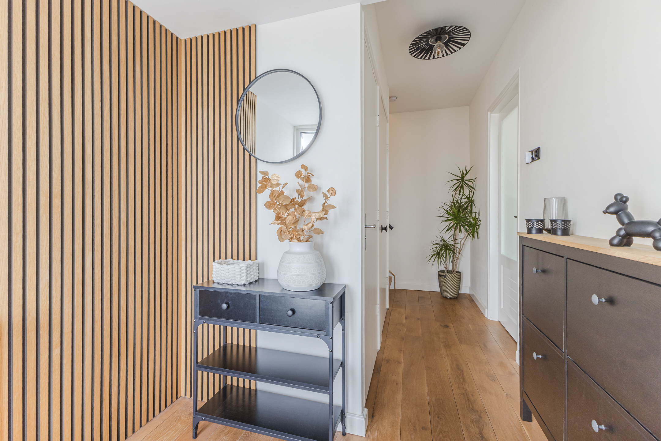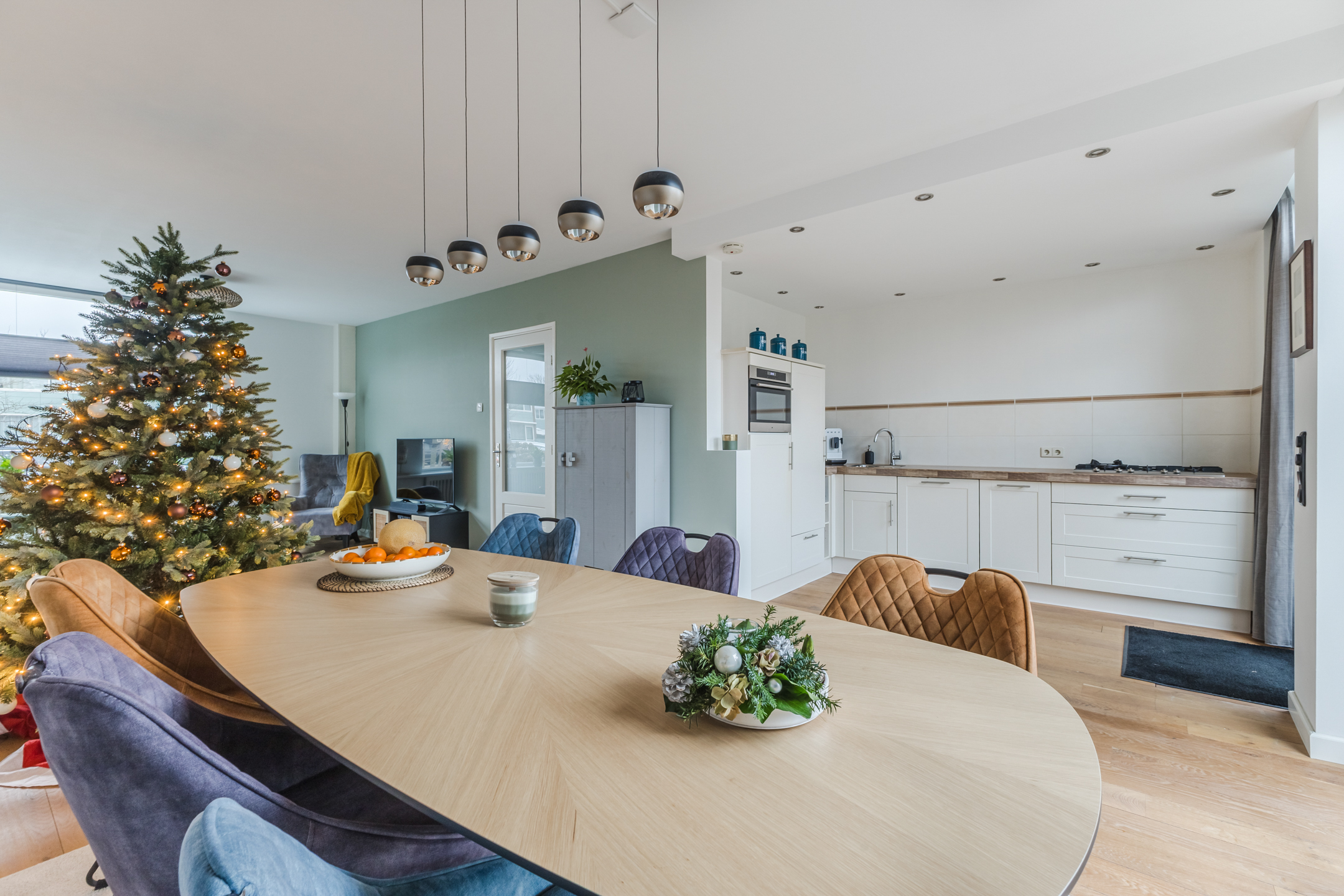 Achter de voordeur bevindt zich de ruime hal met garderobe, meterkast, gastentoilet, trap naar de eerste verdieping en toegang tot de gezellige woonkamer met open keuken.