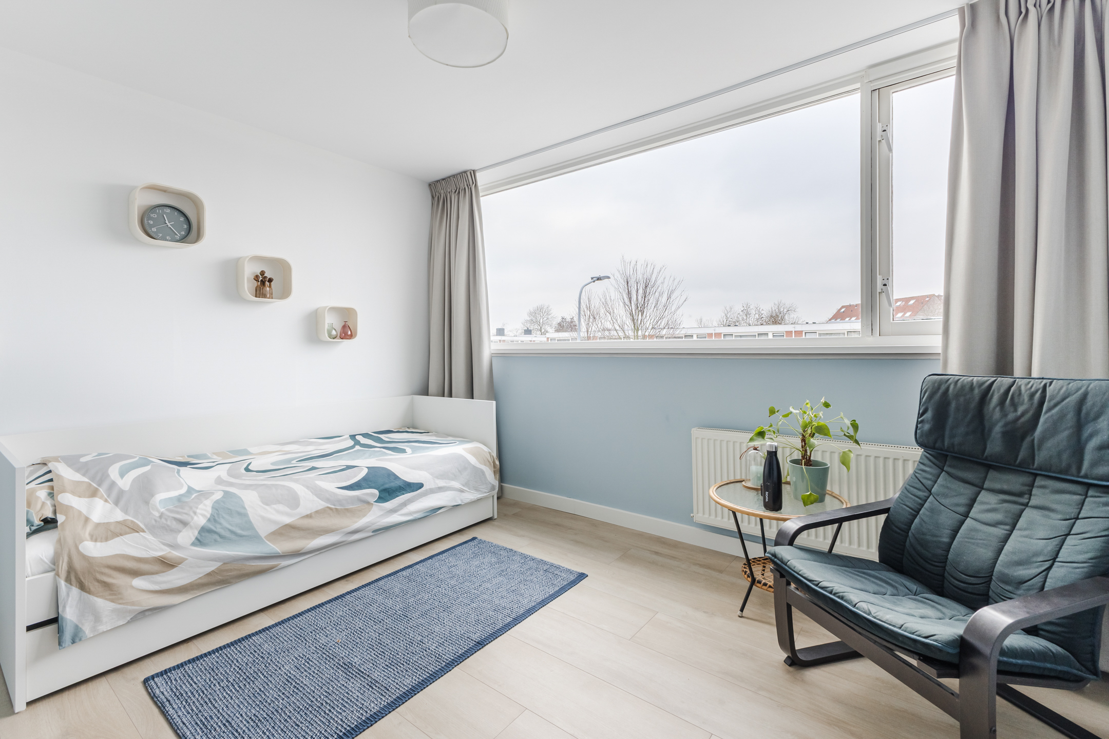 Via een vaste trap bereiken we de ruime tweede verdieping met overloop en toegang tot nog twee slaapkamers.