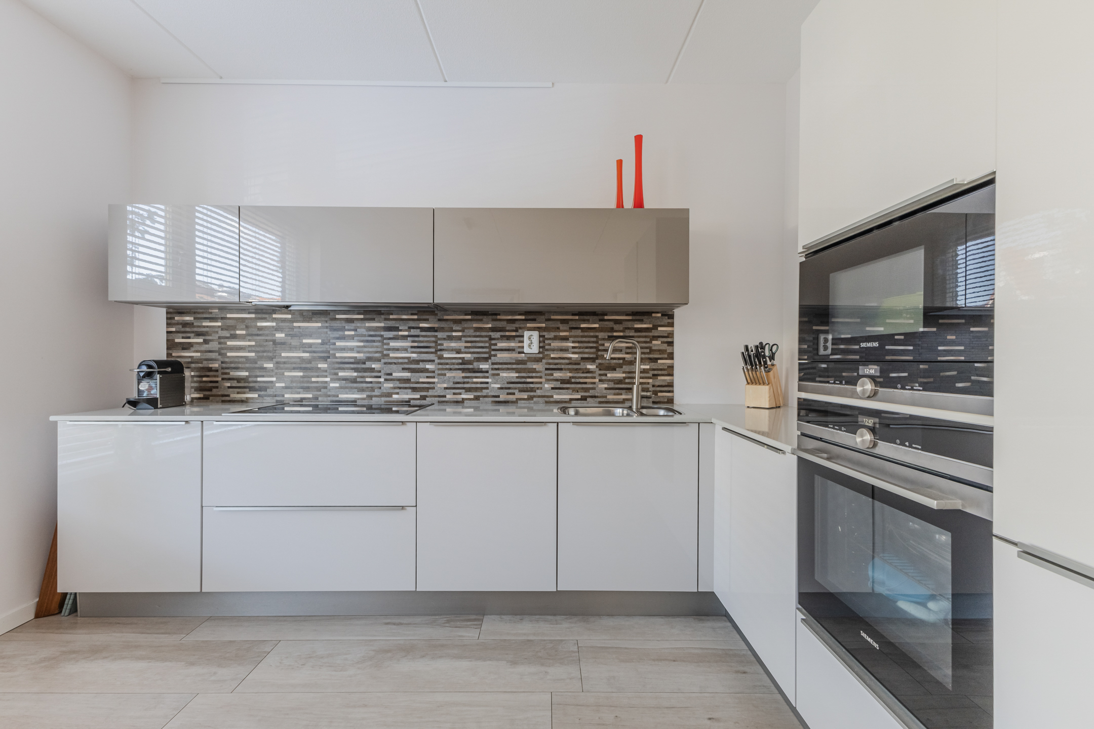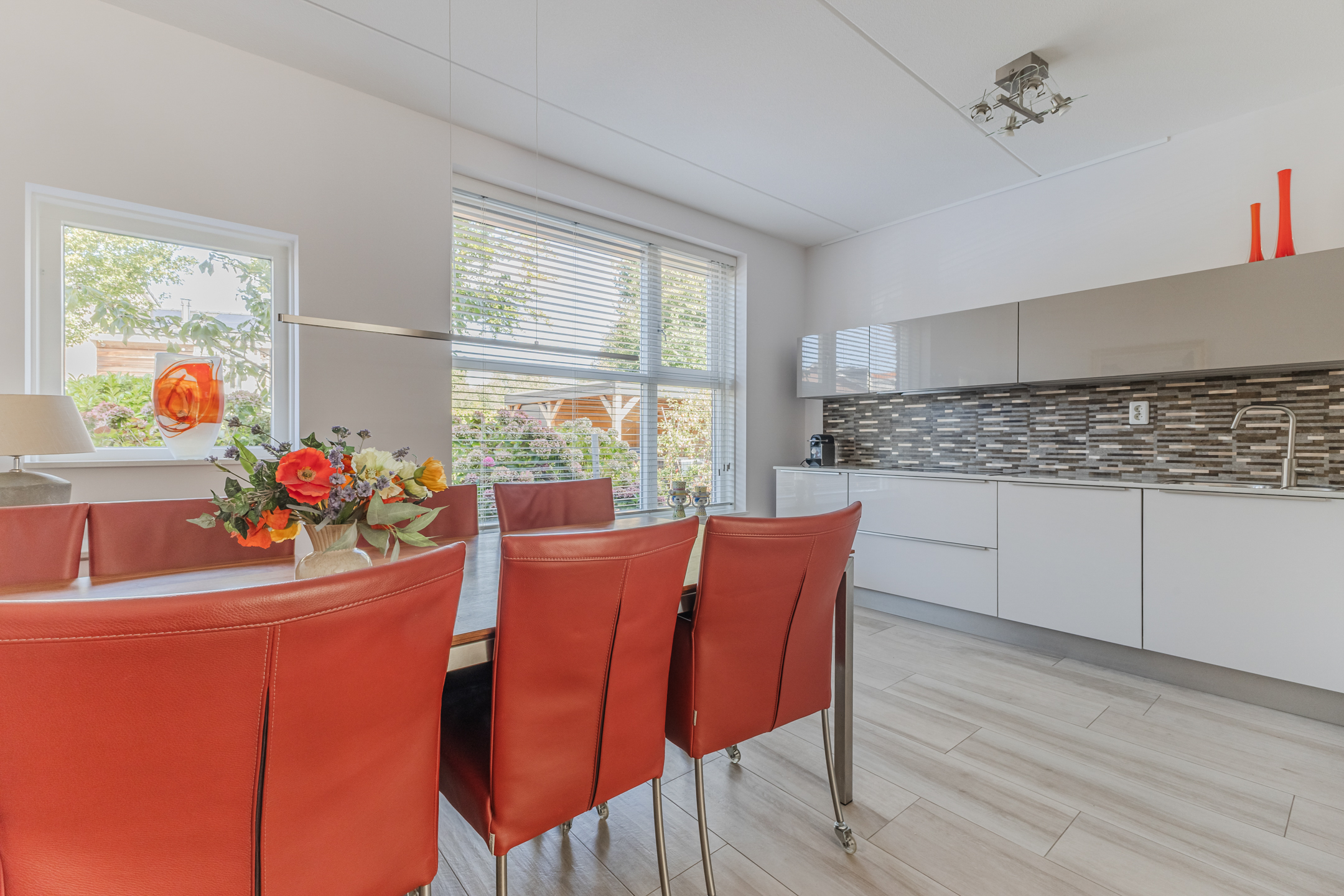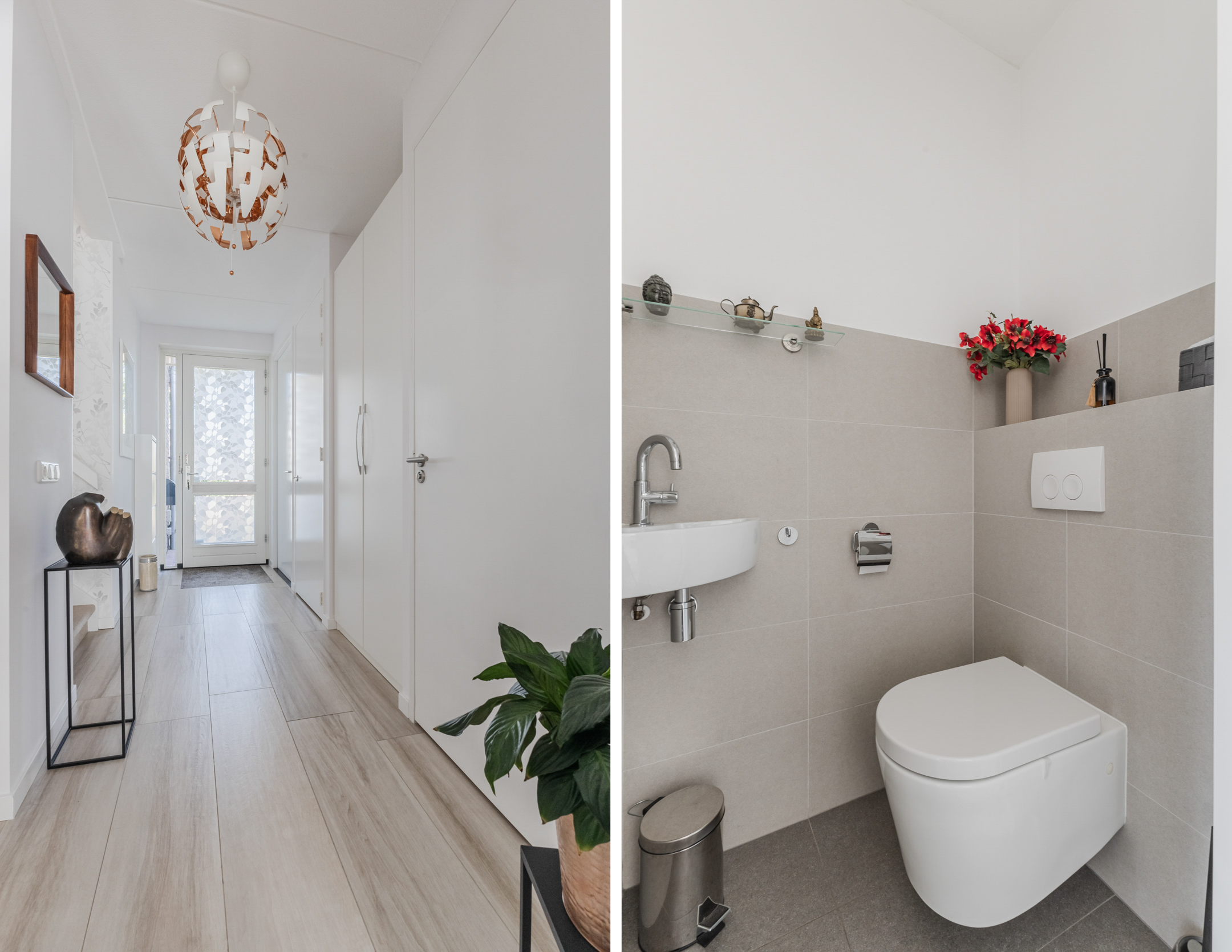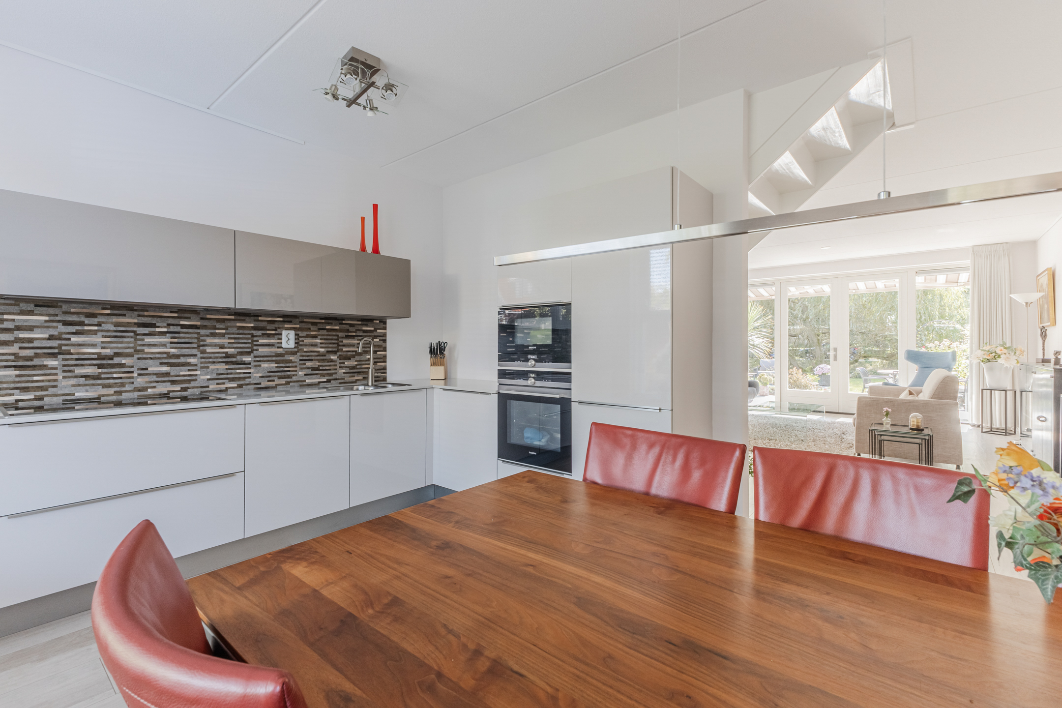 Ruime entreehal met inpandige toegang tot de berging/wasruimte/bijkeuken (deze beschikt tevens over een eigen entree), het gastentoilet en toegang tot zowel de woonkamer met eventueel de slaapkamer op de begane grond. Er is en suite toegang tot de badkamer met een wastafel met meubel en een inloopdouche. De royale woonkamer is tuingericht en geniet door de grote raampartijen aan beide zijden van een grote hoeveelheid lichtinval. Openslaande deuren bieden toegang tot de heerlijke tuin. De moderne open keuken bevindt zich aan de voorzijde van het huis en is voorzien van een inductiekookplaat, koelkast, magnetron, oven en een vaatwasser. Het geheel is afgewerkt met een fraaie keramische tegel met vloerverwarming.