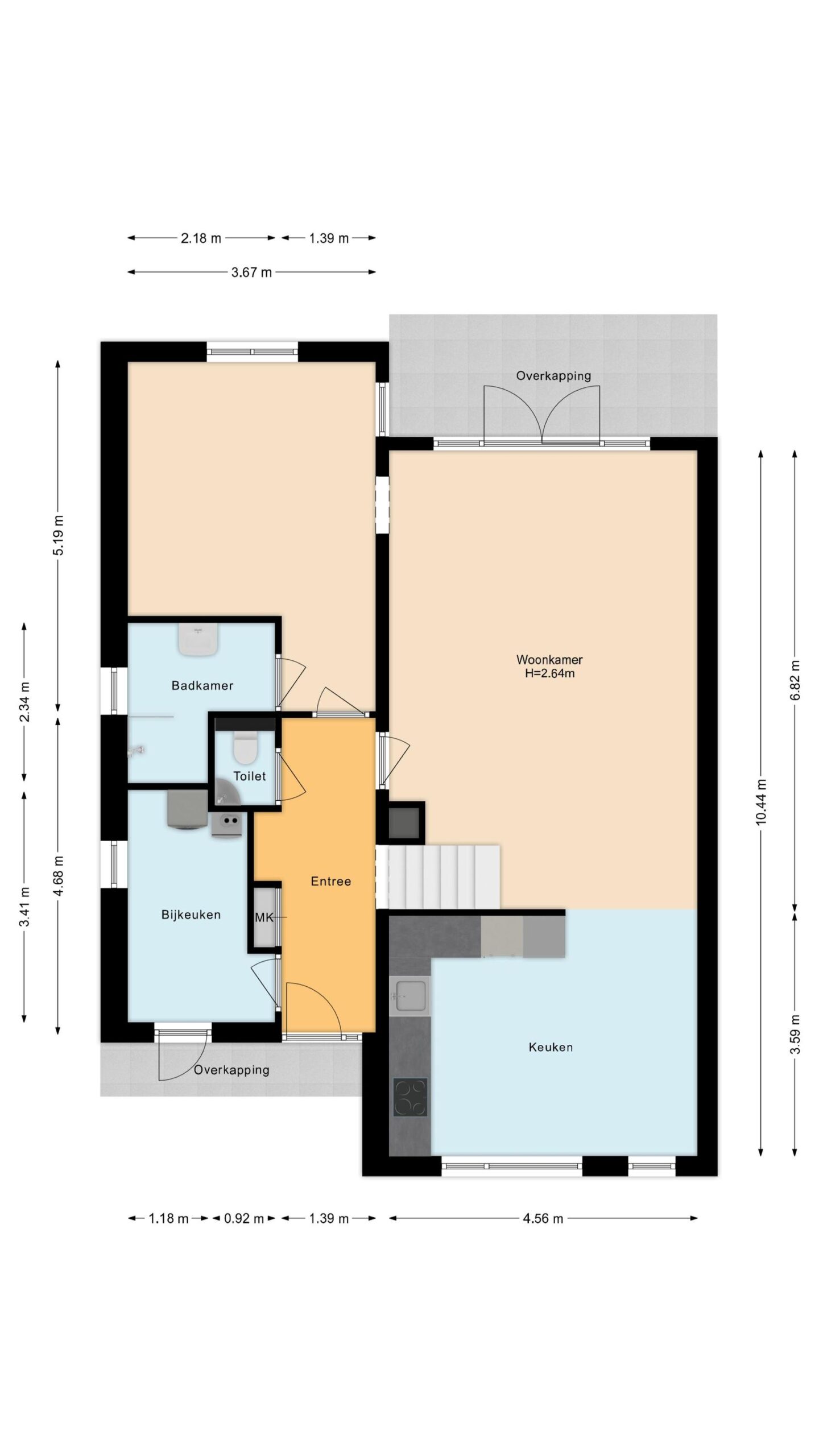 ā¢	badkamer en mogelijkheid voor slaapkamer op de begane grond