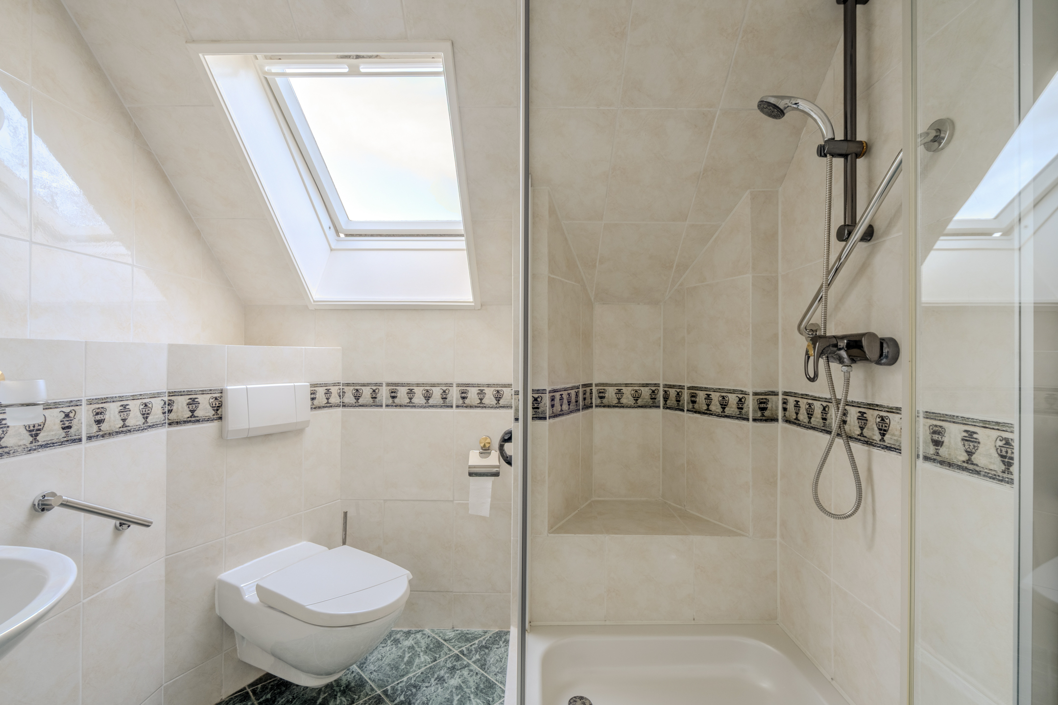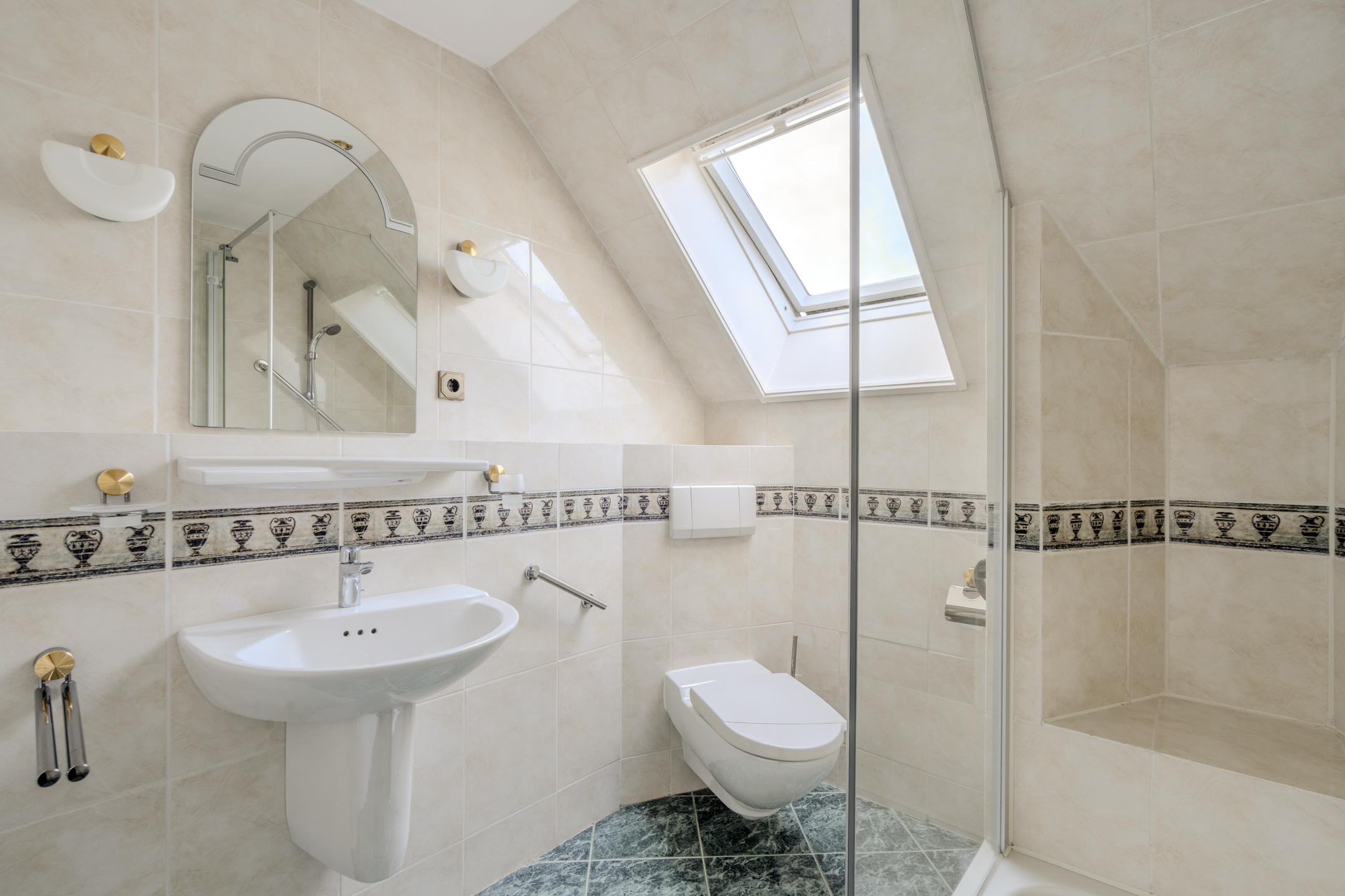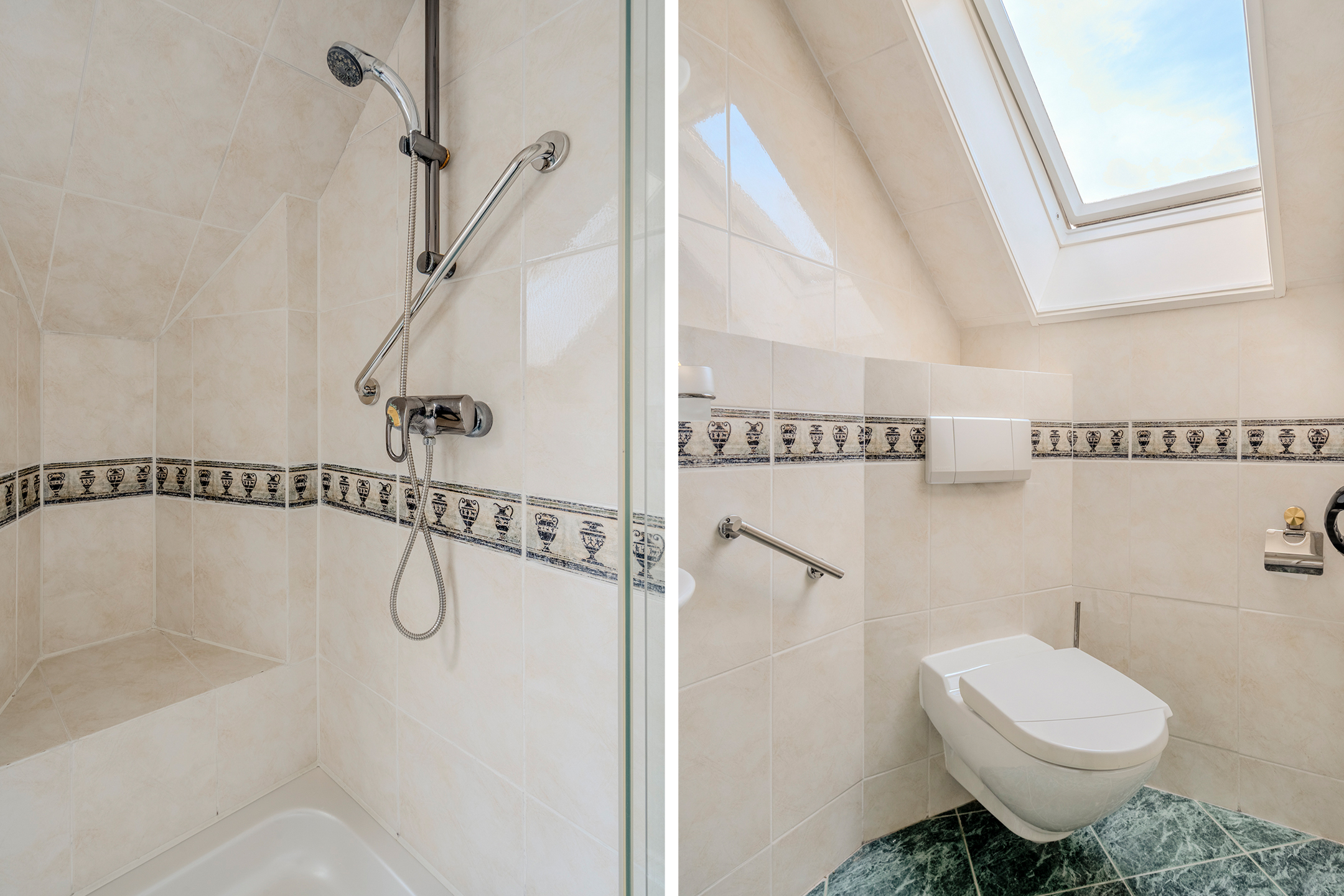 Overloop, 3 slaapkamers en de badkamer. Alle slaapkamers hebben ingebouwde kastruimte en 1 slaapkamer heeft een eigen wastafel. De nette en complete badkamer beschikt over een zwevend toilet, een wastafel en een douchecabine.
