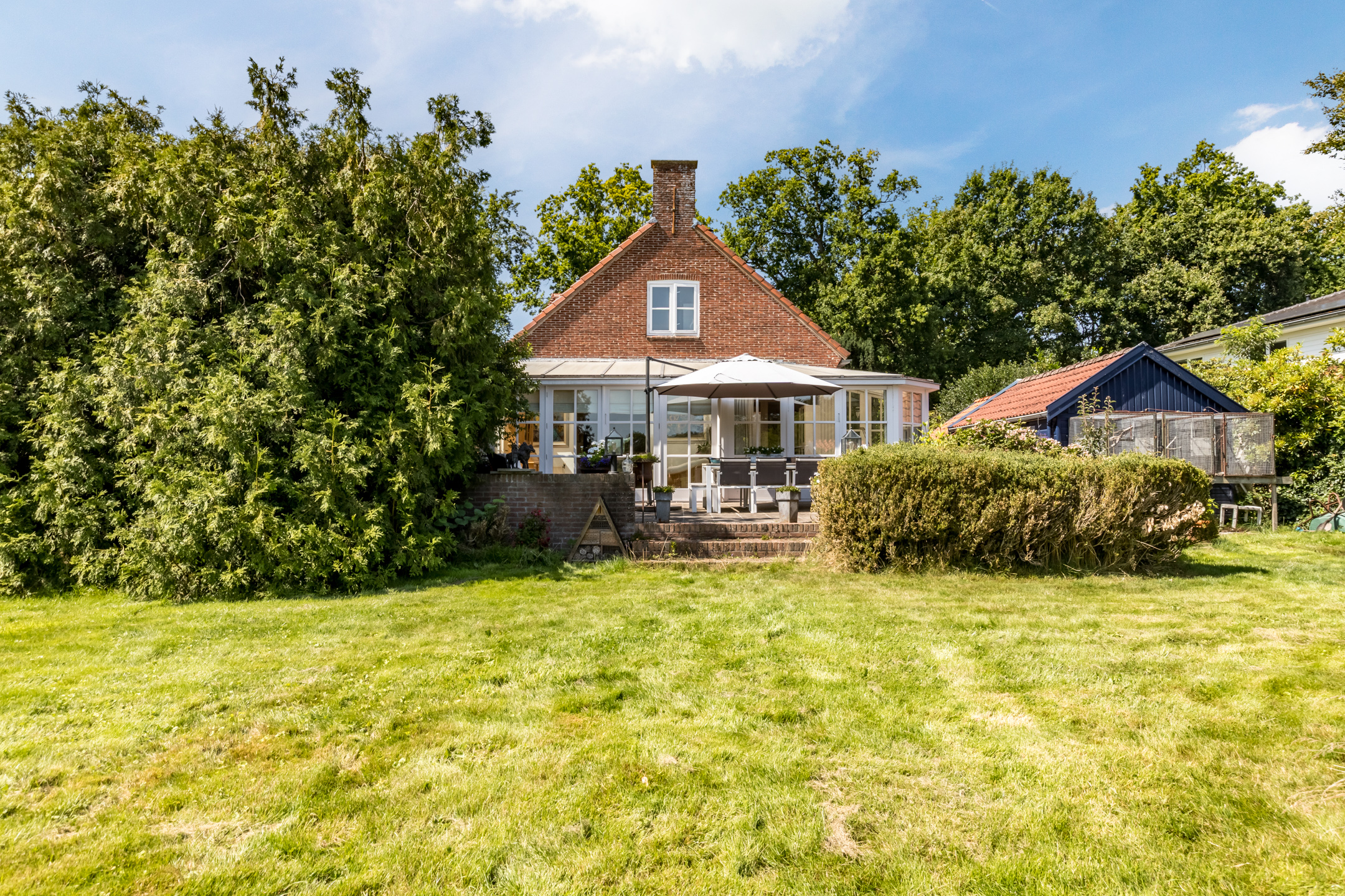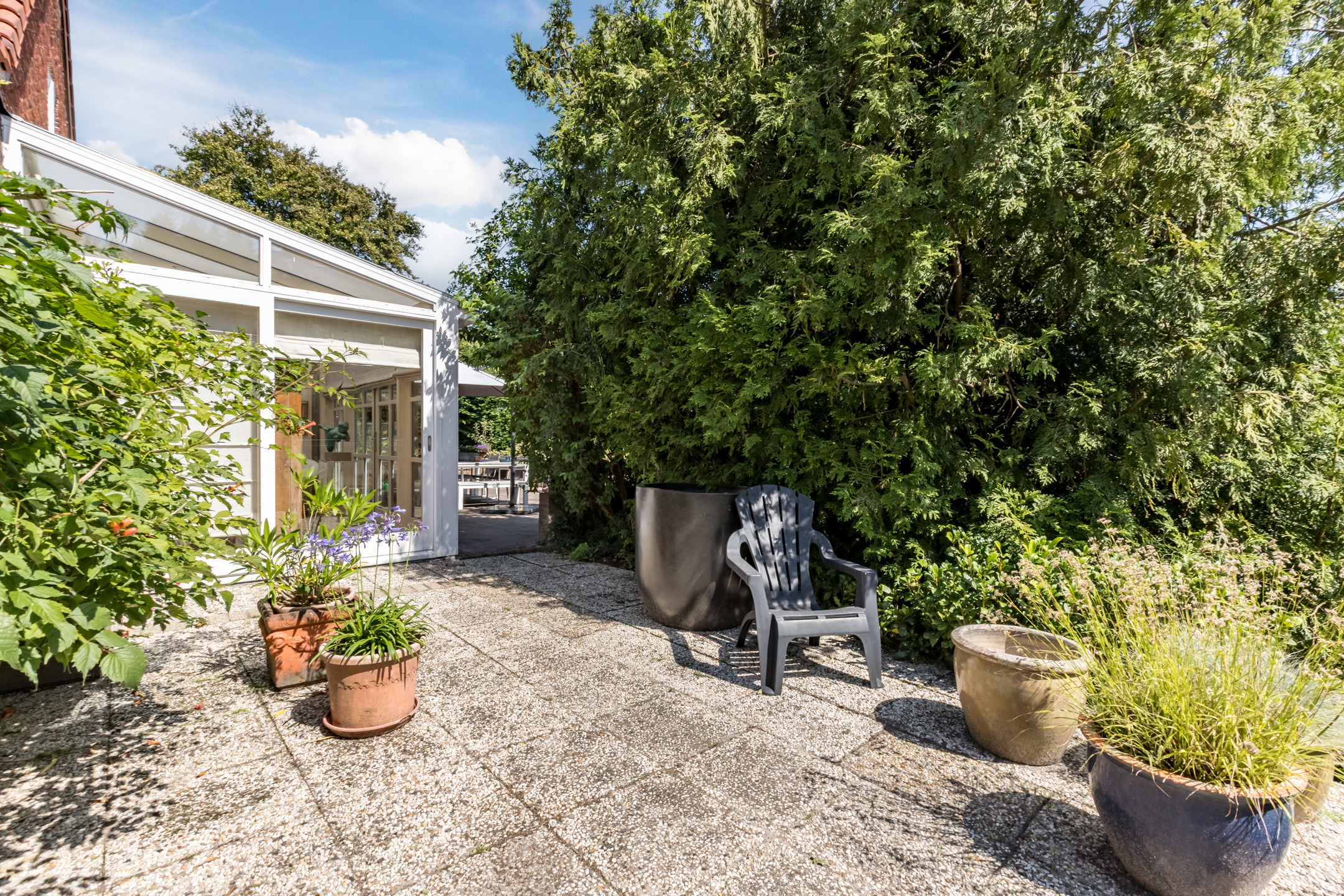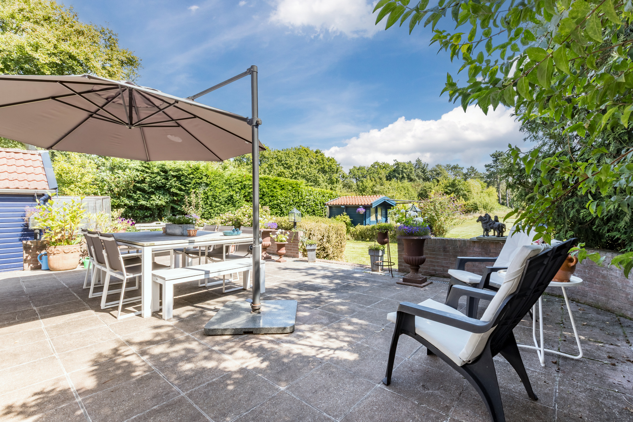 Royale tuin op het zuidoosten. De tuin heeft een parkachtig karakter met een groot betegeld terras dat wordt omlijst door groene borders, een groot grasveld, bomen en hagen. Er is vrij uitzicht over groen. Tevens staat er een ruime vrijstaande berging in de tuin met geschakelde overkapping.