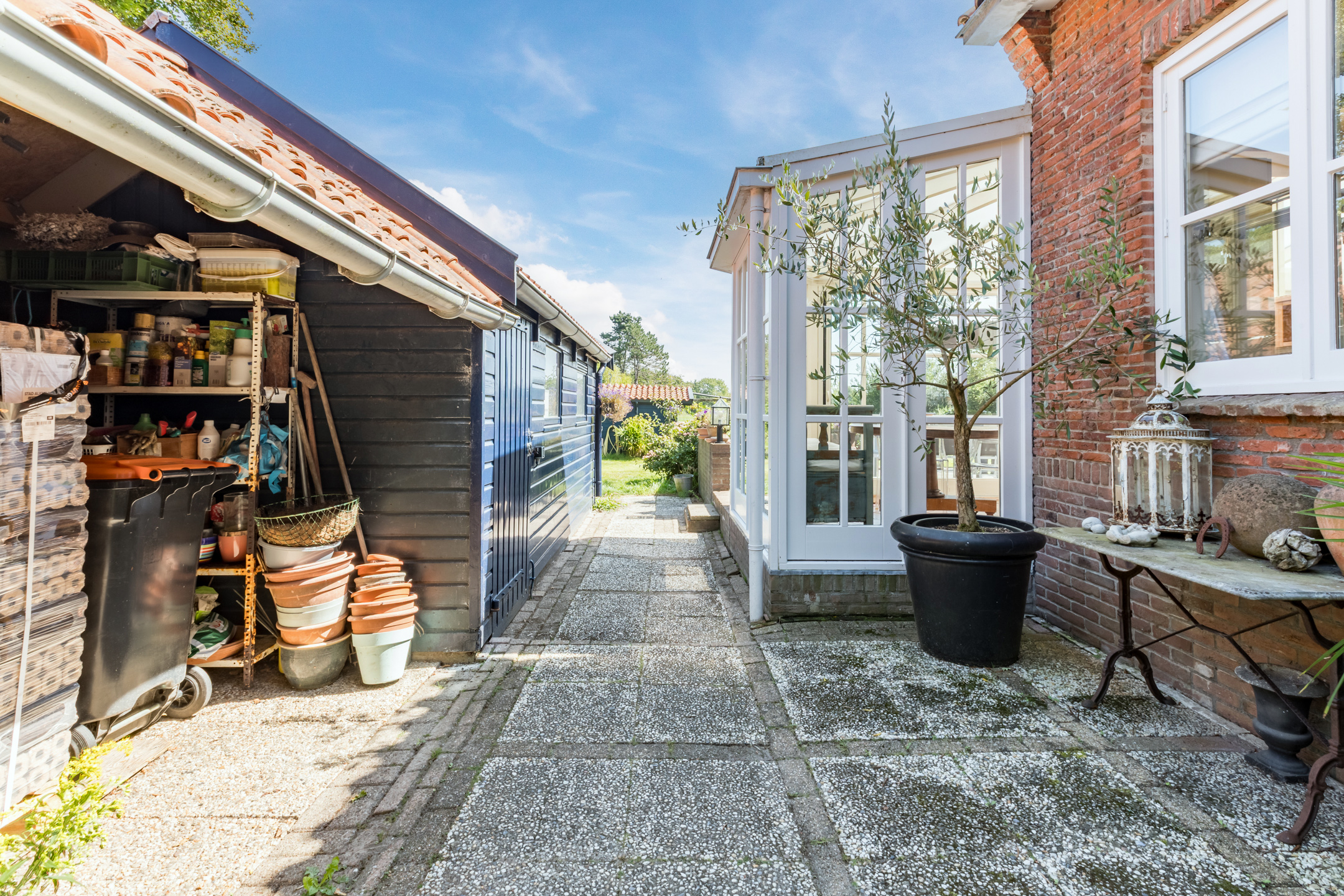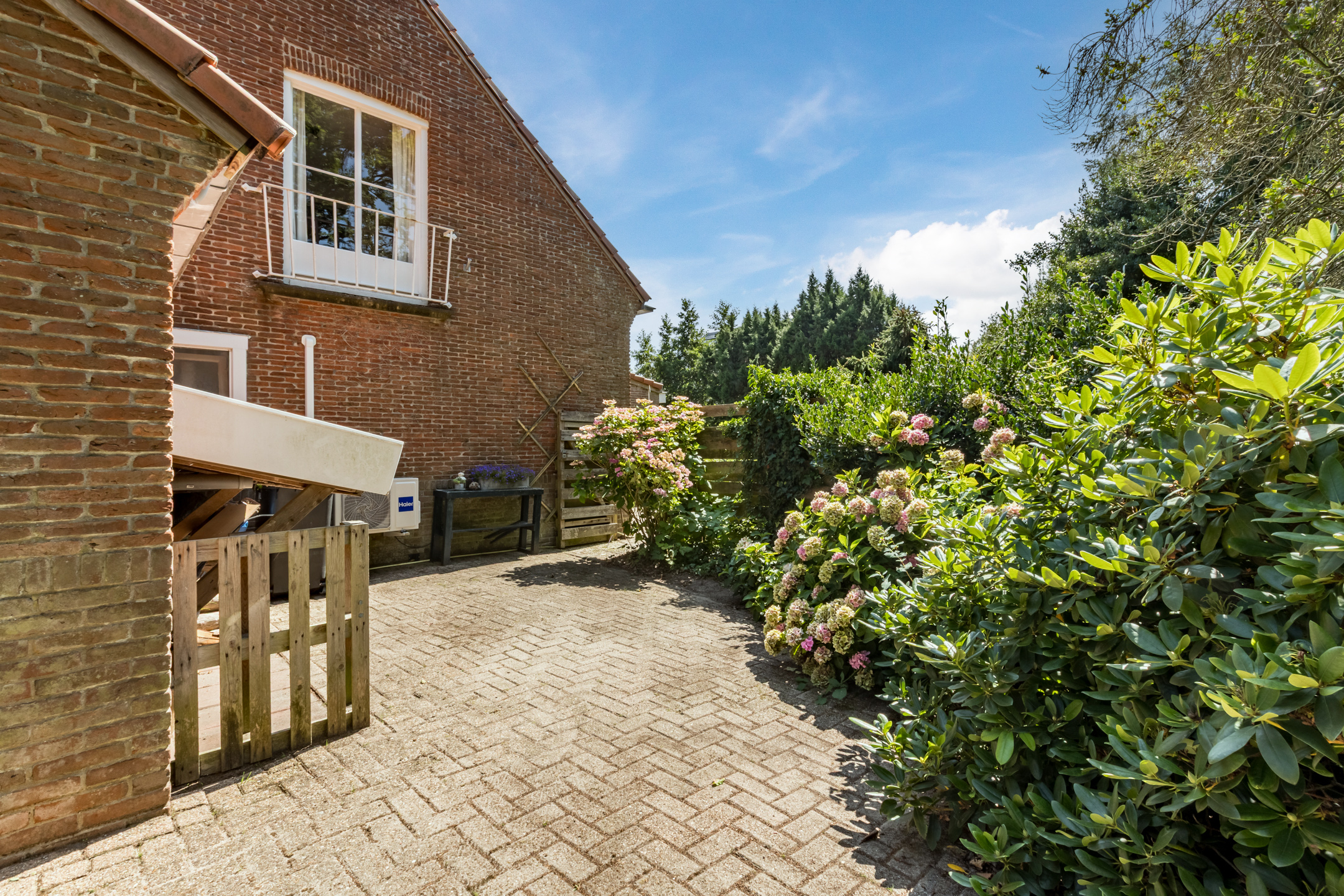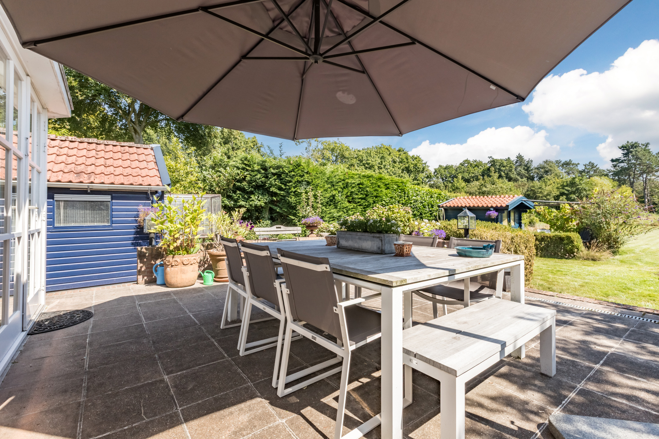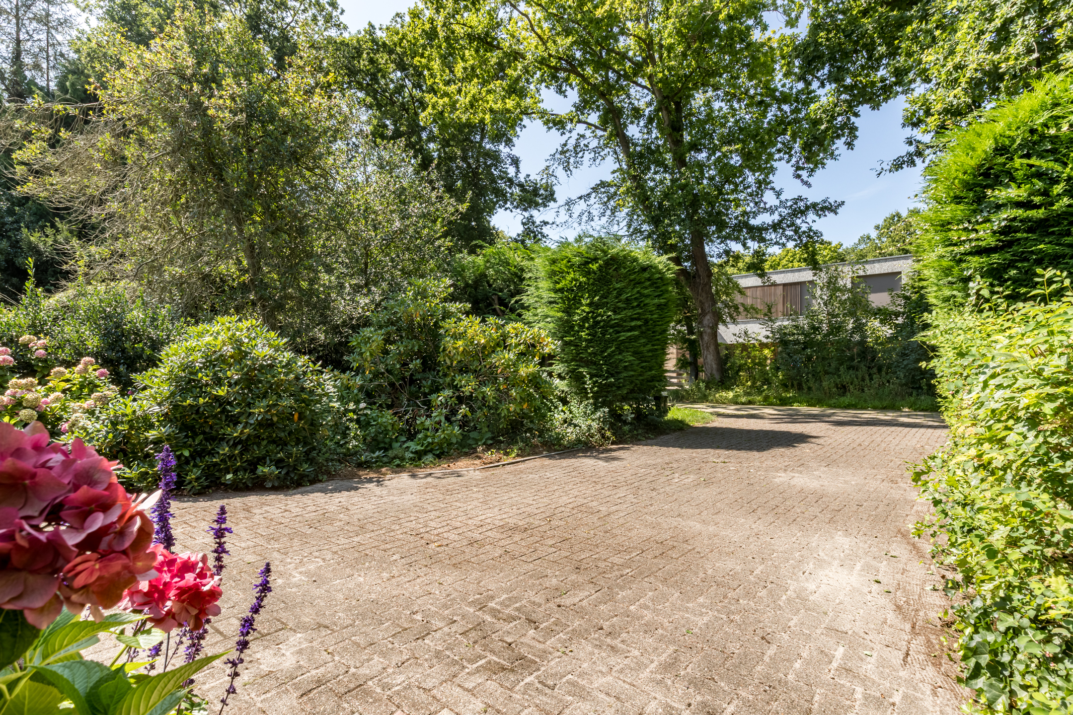Royale tuin op het zuidoosten. De tuin heeft een parkachtig karakter met een groot betegeld terras dat wordt omlijst door groene borders, een groot grasveld, bomen en hagen. Er is vrij uitzicht over groen. Tevens staat er een ruime vrijstaande berging in de tuin met geschakelde overkapping.