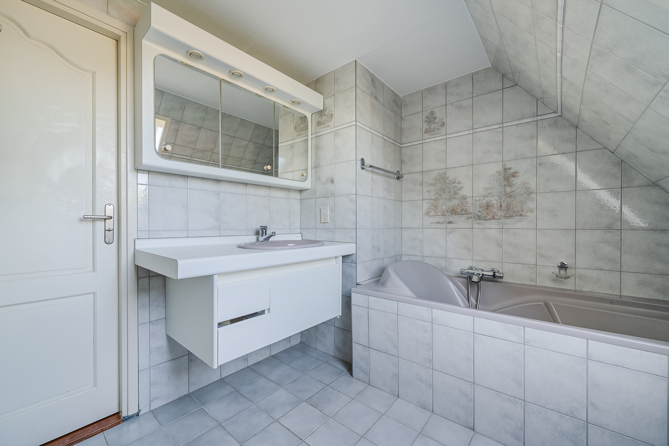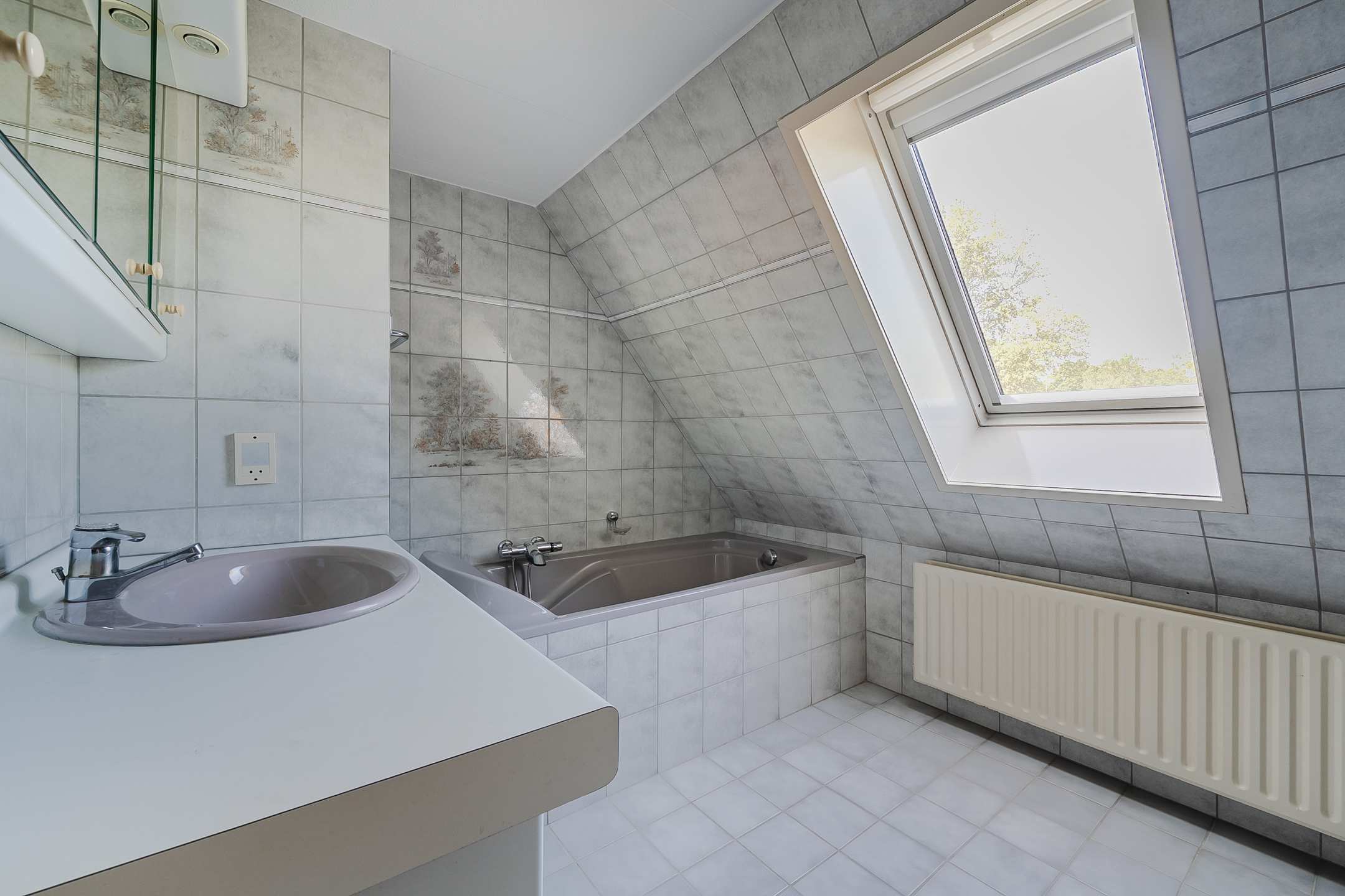 Overloop, 3 slaapkamers, werkkamer, aparte wasruimte/berging en de badkamer. De ruime badkamer beschikt over een tweede toilet, een wastafel met meubel, een ligbad en een aparte douchecabine.