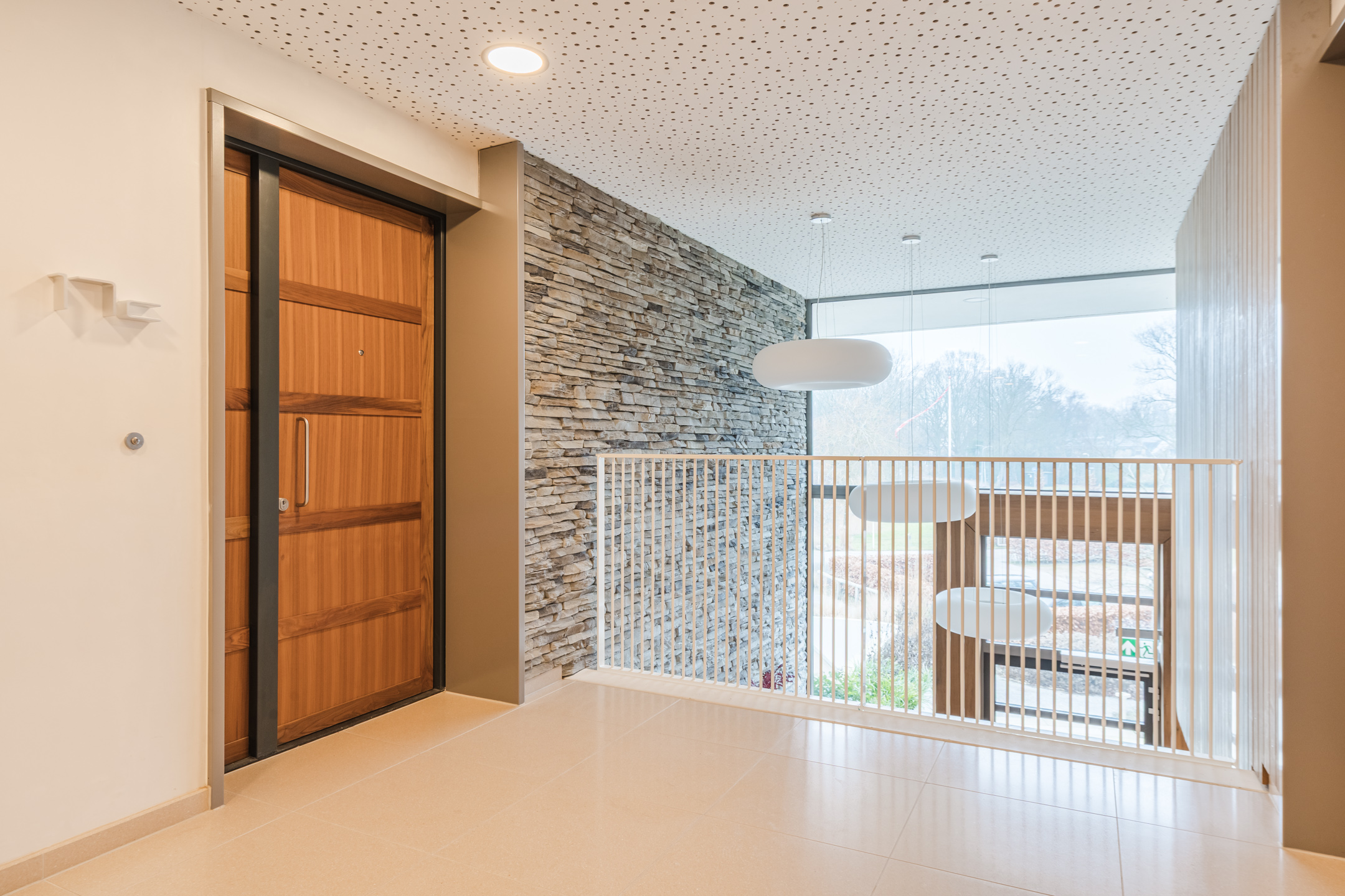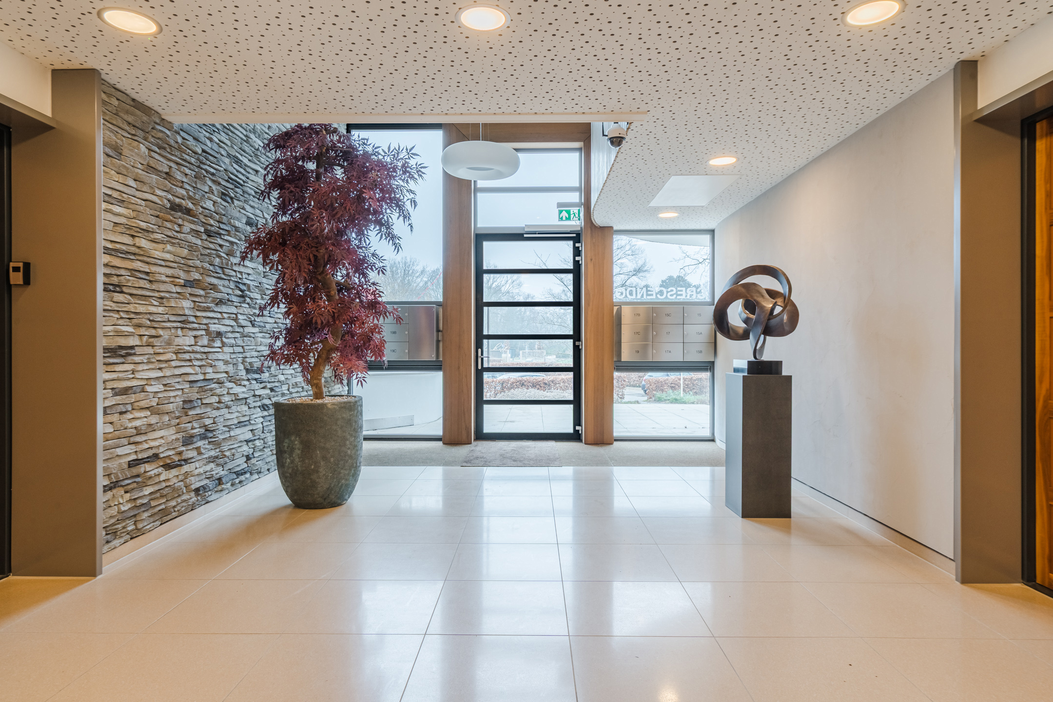 Prachtige gemeenschappelijke hal met trappenhuis en liftinstallatie.