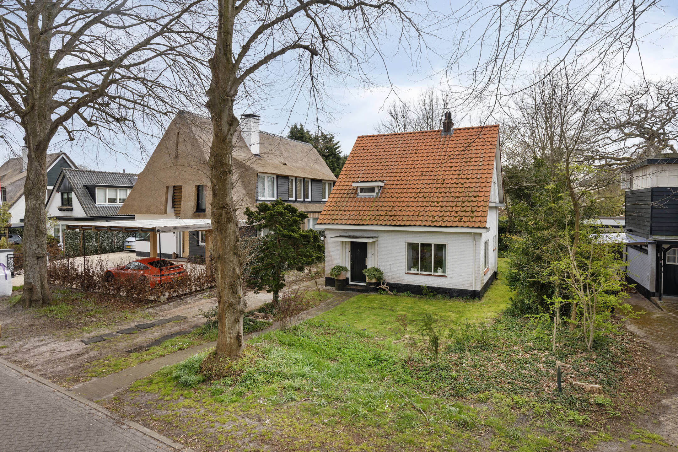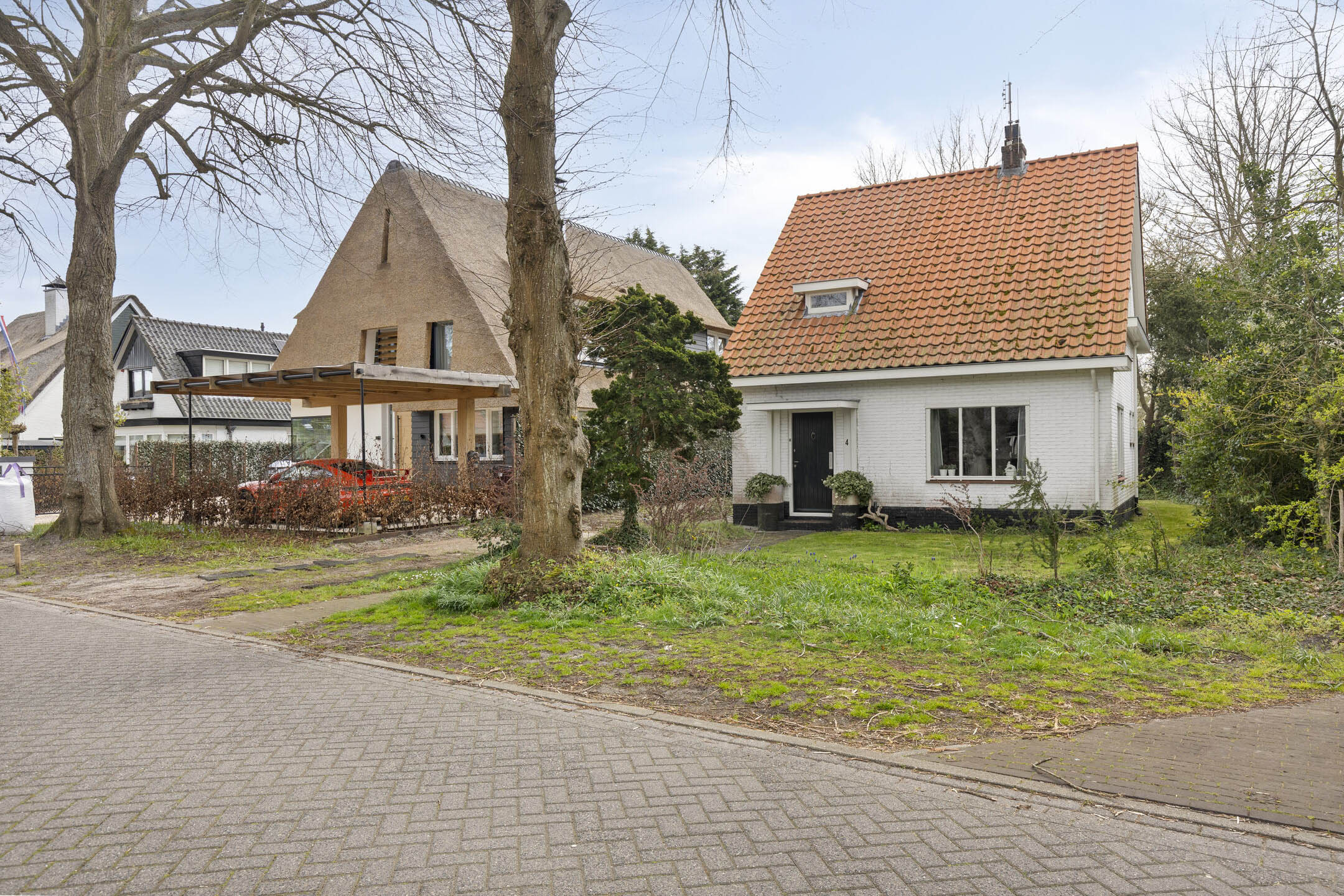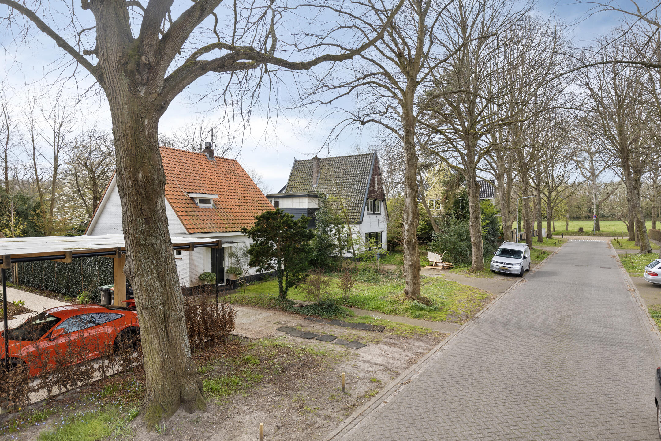 Aan de voorzijde is ruimte voor een ruime oprit naast de woning, voor meerdere auto’s.
