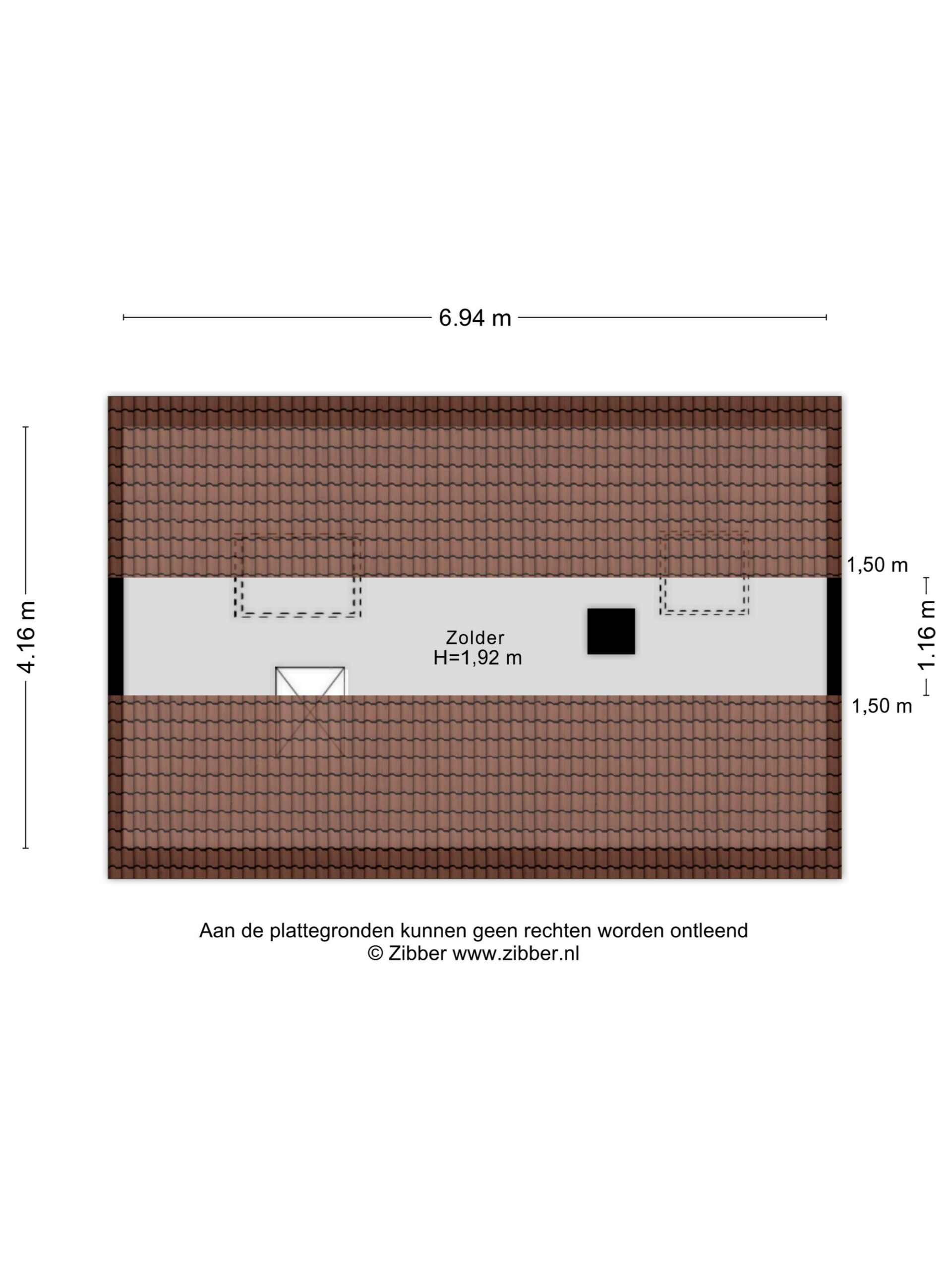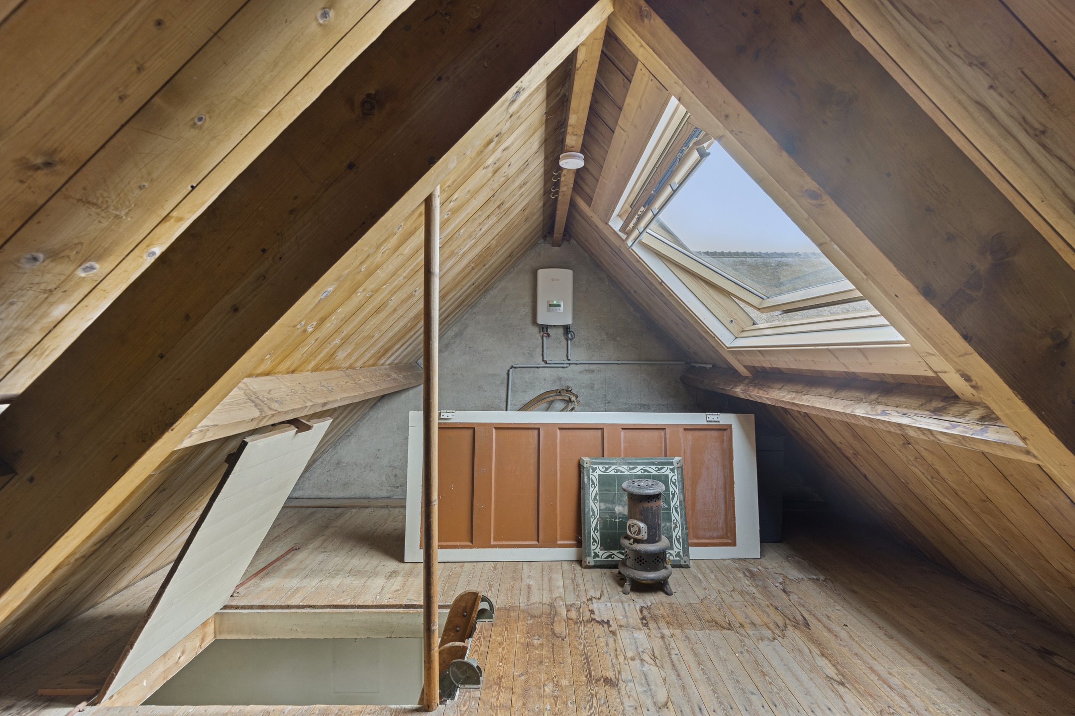 Via een vlizotrap is de zolder bereikbaar. Deze ruimte met een nokhoogte van circa 1,92 meter is geschikt voor bergruimte en biedt mogelijkheden voor verdere benutting, afhankelijk van de wensen.