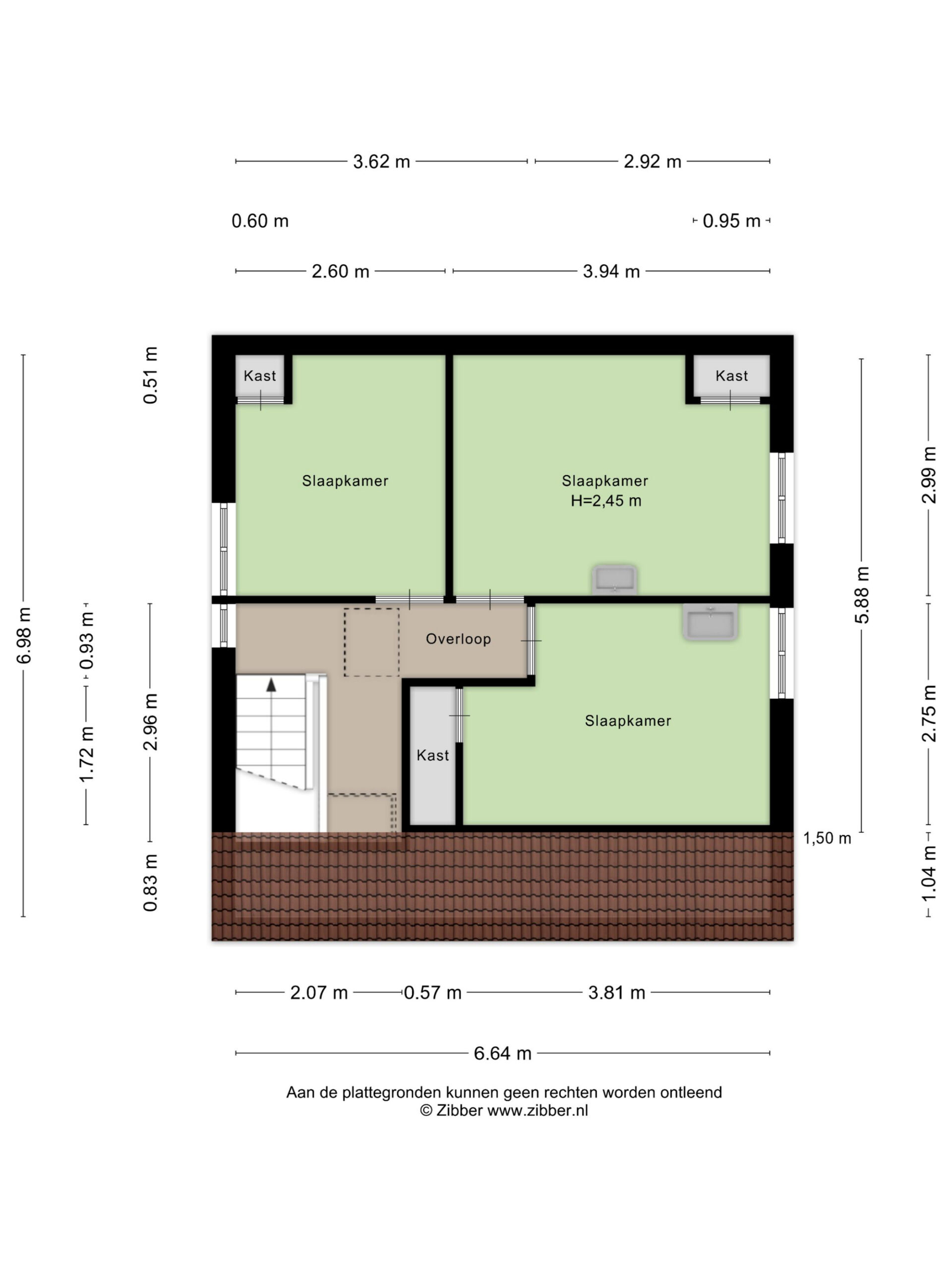 Op deze verdieping geeft de overloop toegang tot drie slaapkamers. Alle kamers beschikken over daglicht en vaste kastruimte. De indeling is rechttoe rechtaan en biedt voldoende ruimte voor een praktische invulling.