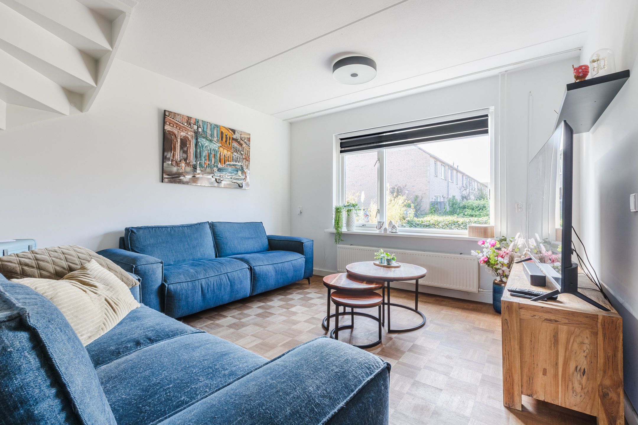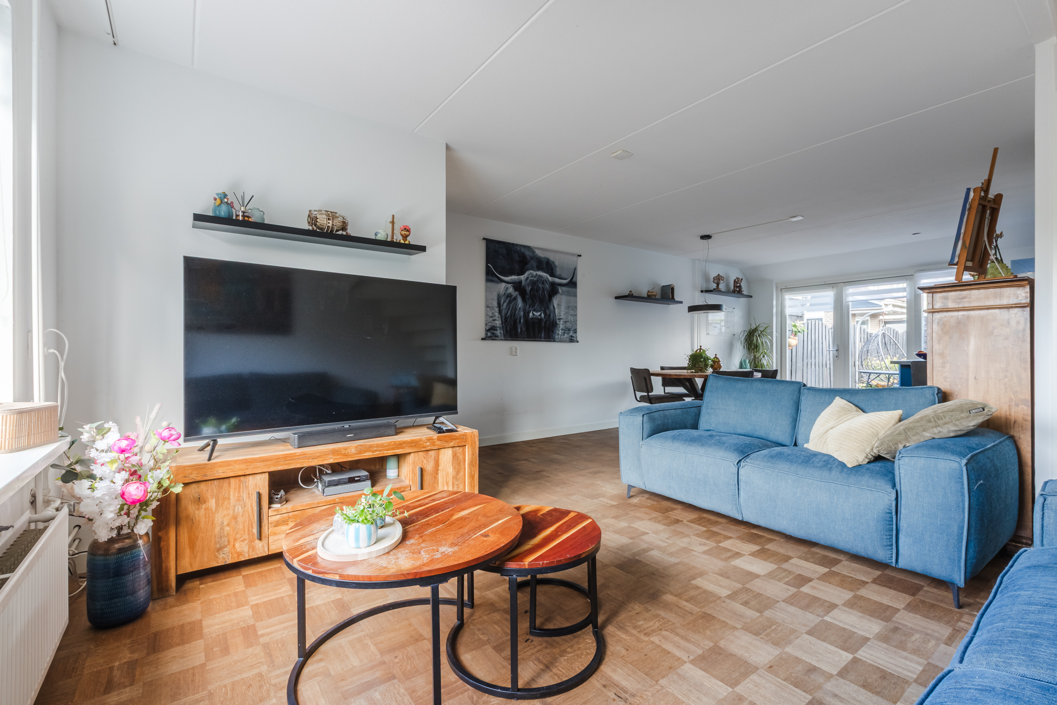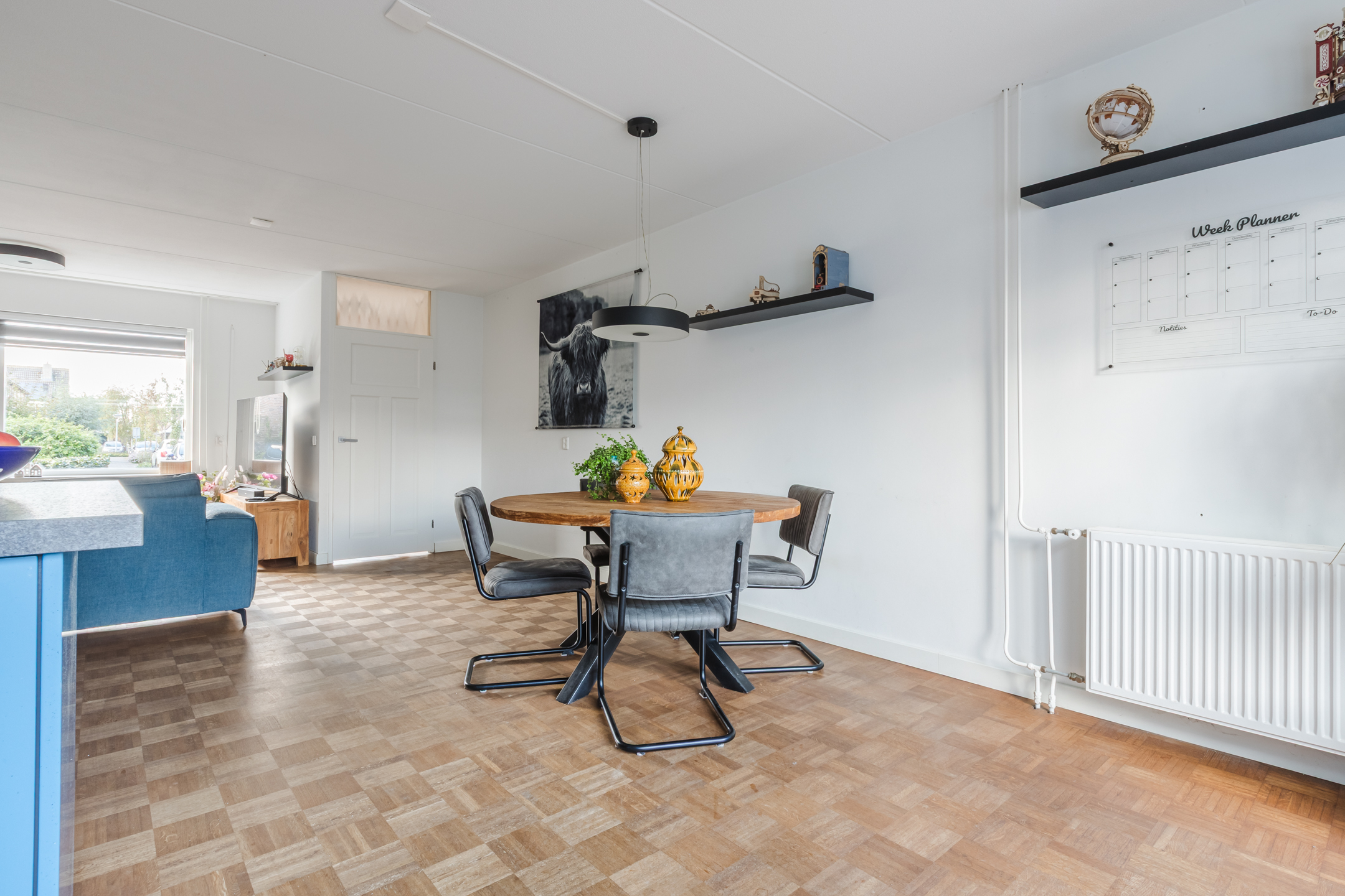 Entree via een verzorgde voortuin met haag en poortje. De hal biedt toegang tot de meterkast. De doorzonwoonkamer is heerlijk licht en voorzien van een warme parketvloer. De royale zithoek aan de voorzijde en de eetkamer aan de tuinzijde vormen samen een sfeervol geheel.