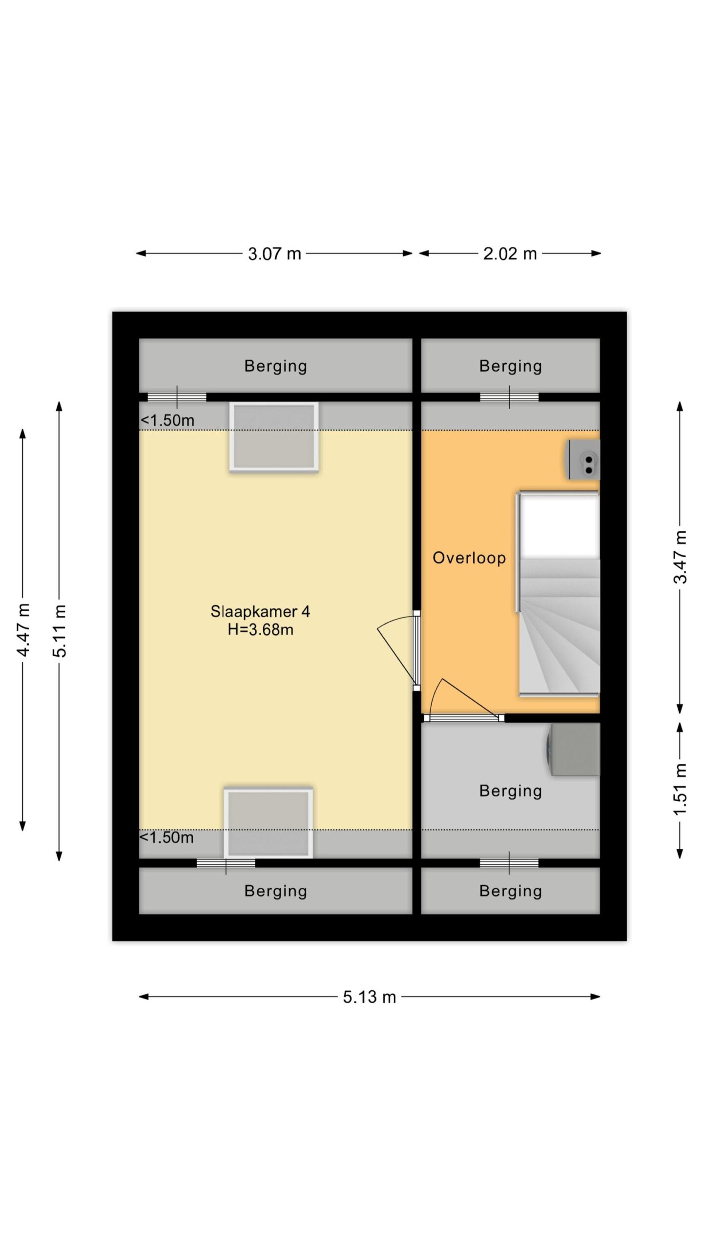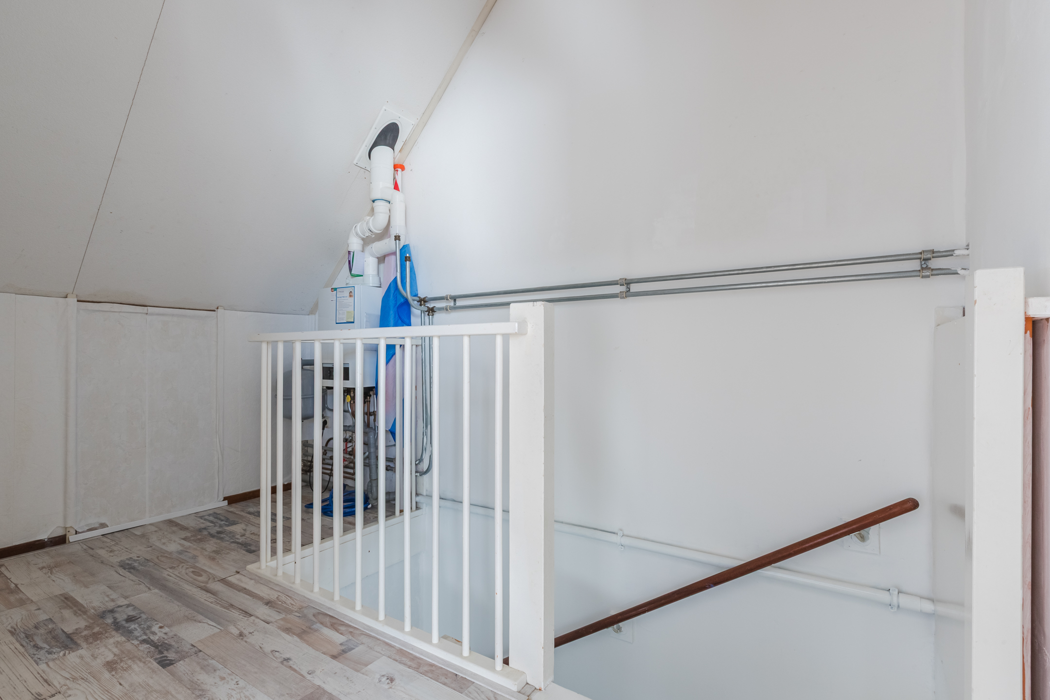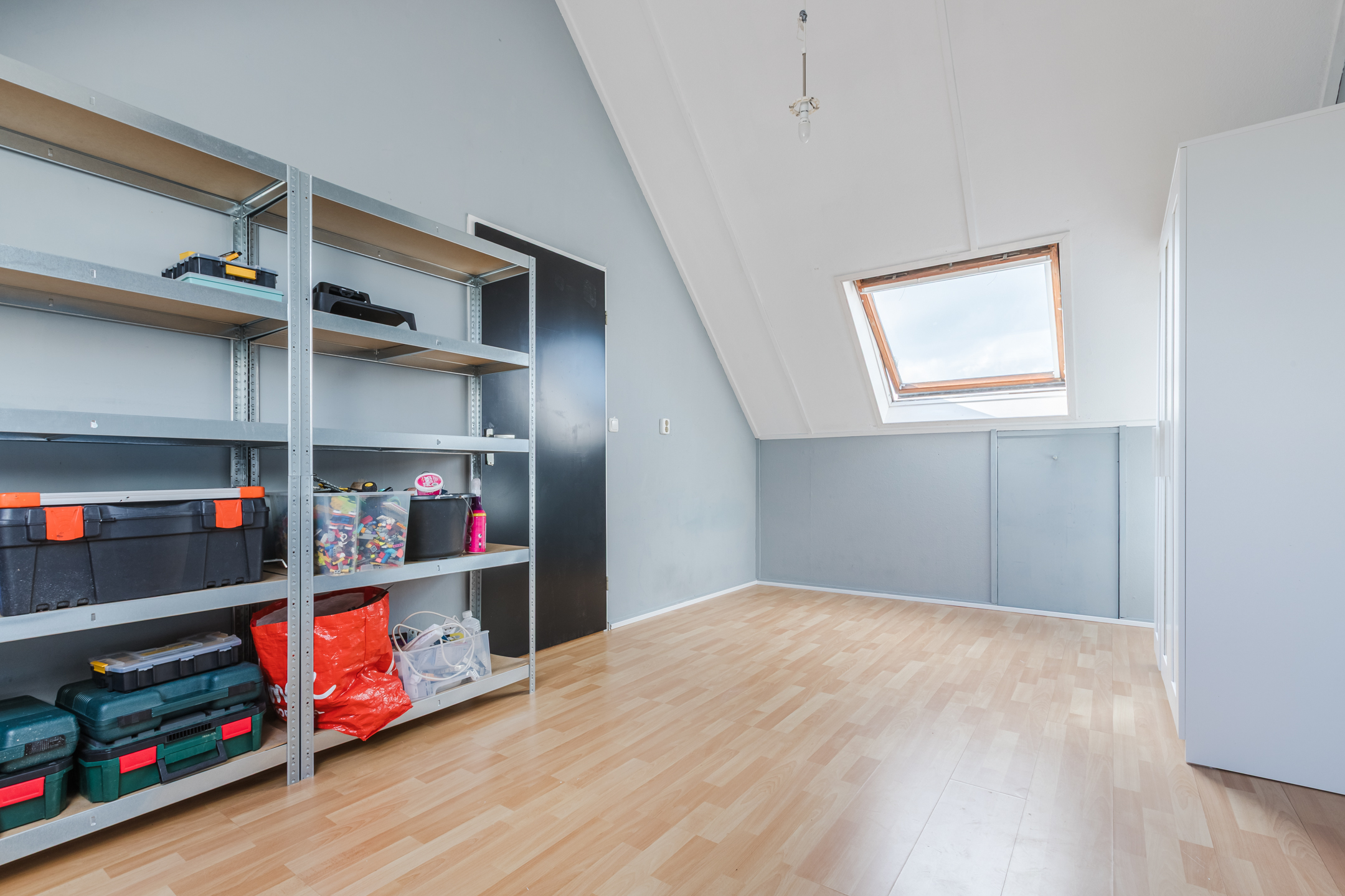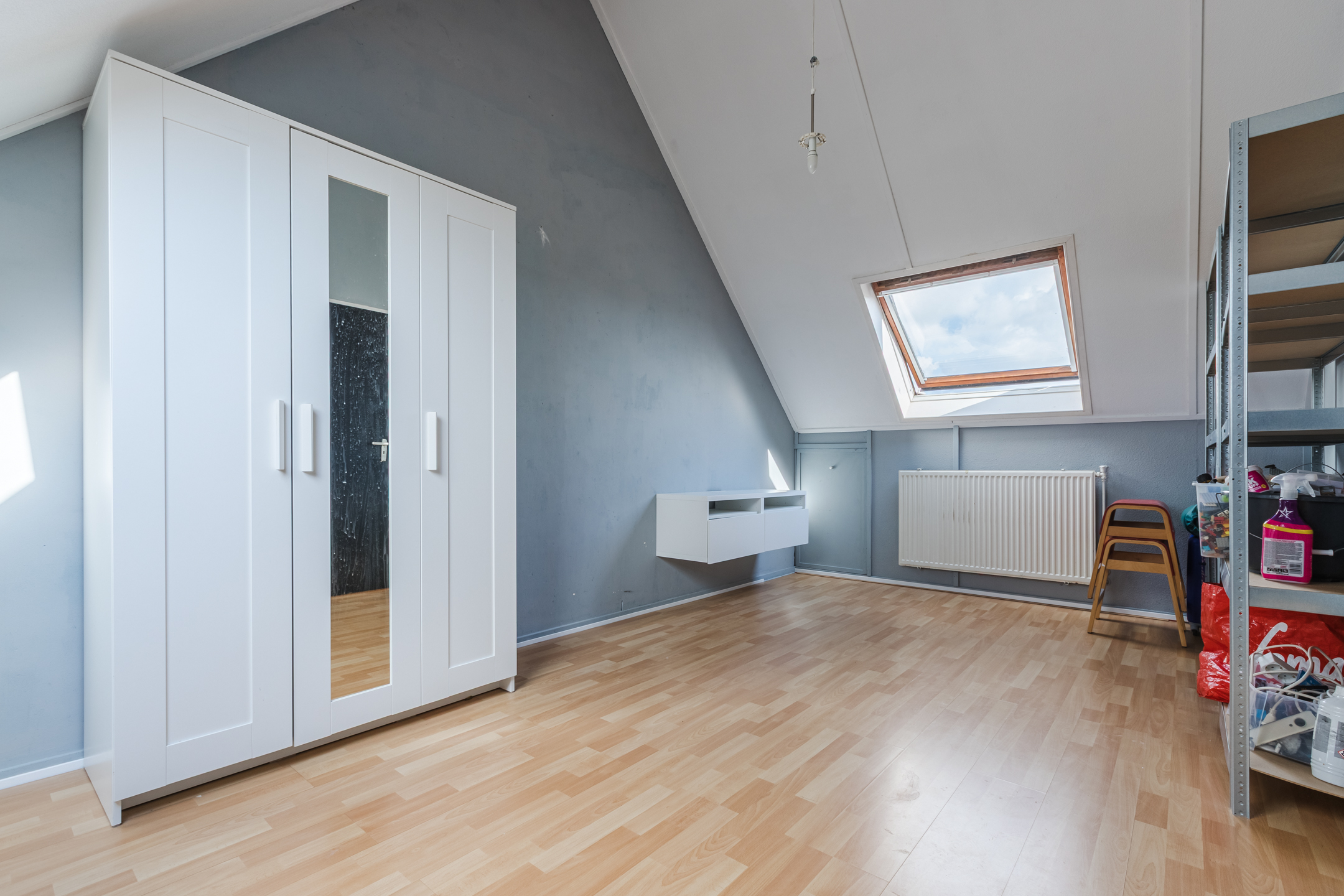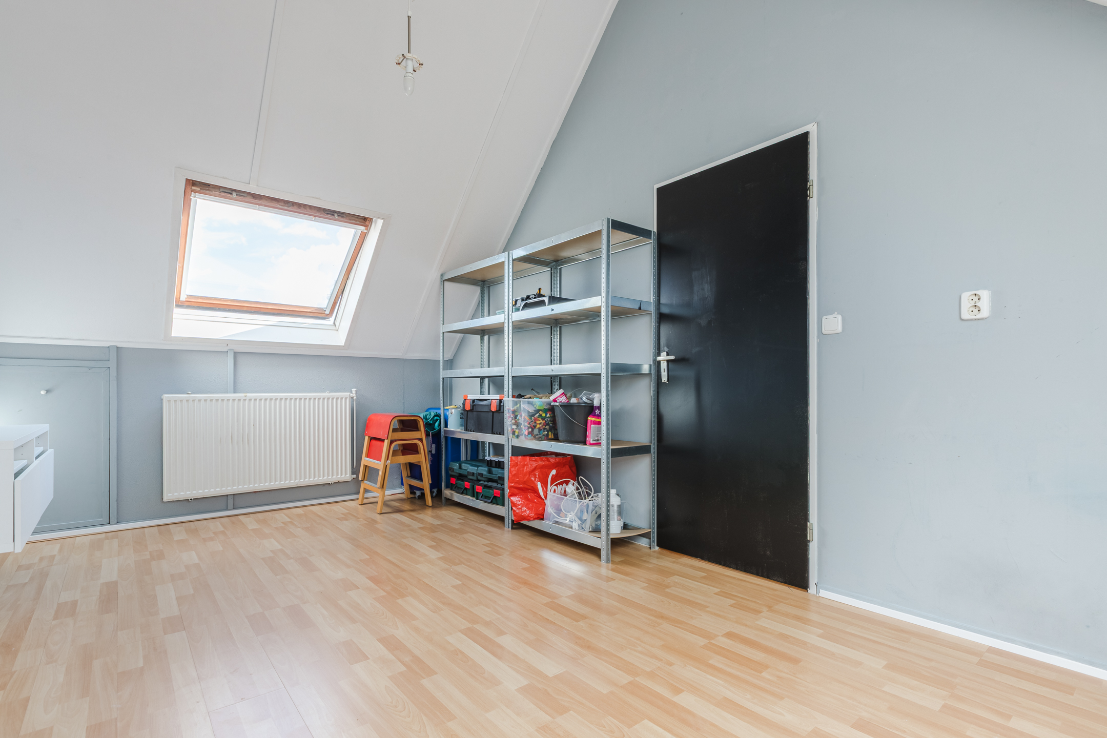 Via een vaste trap bereik je de tweede verdieping. Hier vind je een royale overloop met wasmachineaansluiting en de CV-opstelling (Nefit, Proline nxt hrc 2019). Tevens is er een vierde slaapkamer met dakramen en extra bergruimte achter de knieschotten. Perfect als werkruimte, logeerkamer of tienerkamer.