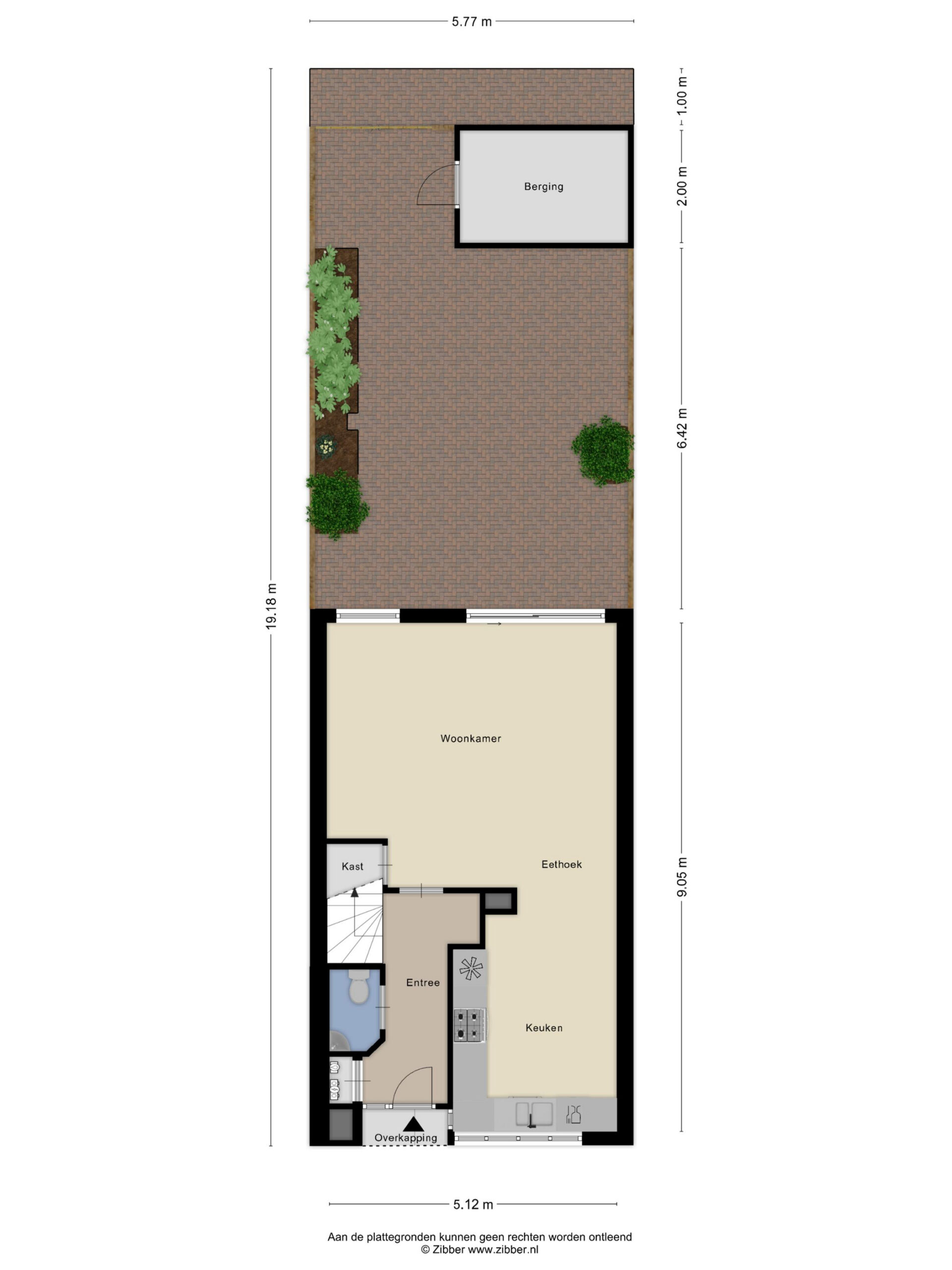 De zonnige achtertuin is bereikbaar vanuit de woonkamer en bestaat uit een prettige combinatie van bestrating en groen. Er is volop ruimte voor het creƫren van een terras en meerdere zitplekken. Achter in de tuin bevindt zich een berging, ideaal voor fietsen en tuinspullen. Dankzij de achterom is de tuin ook praktisch en gemakkelijk bereikbaar.