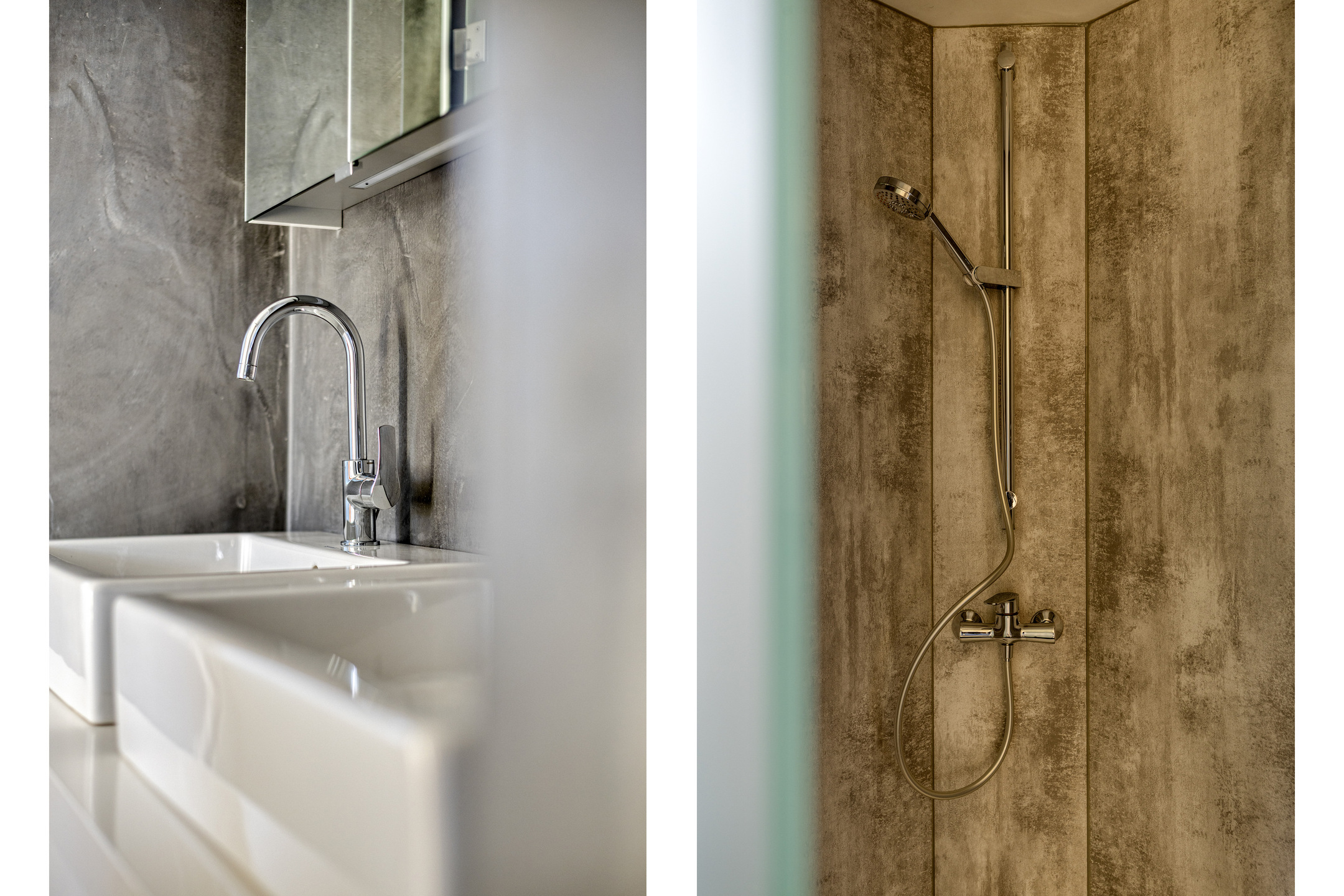 Both bedrooms are spacious and bright. There is sufficient room for a bed, desk or wardrobe, making the rooms multi-functional. Ideal as a master bedroom, children’s room or home office. Both rooms feature built-in wardrobes. One of the bedrooms is directly connected to the bathroom and provides access to the roof terrace — a pleasant and quiet place to start or end your day.