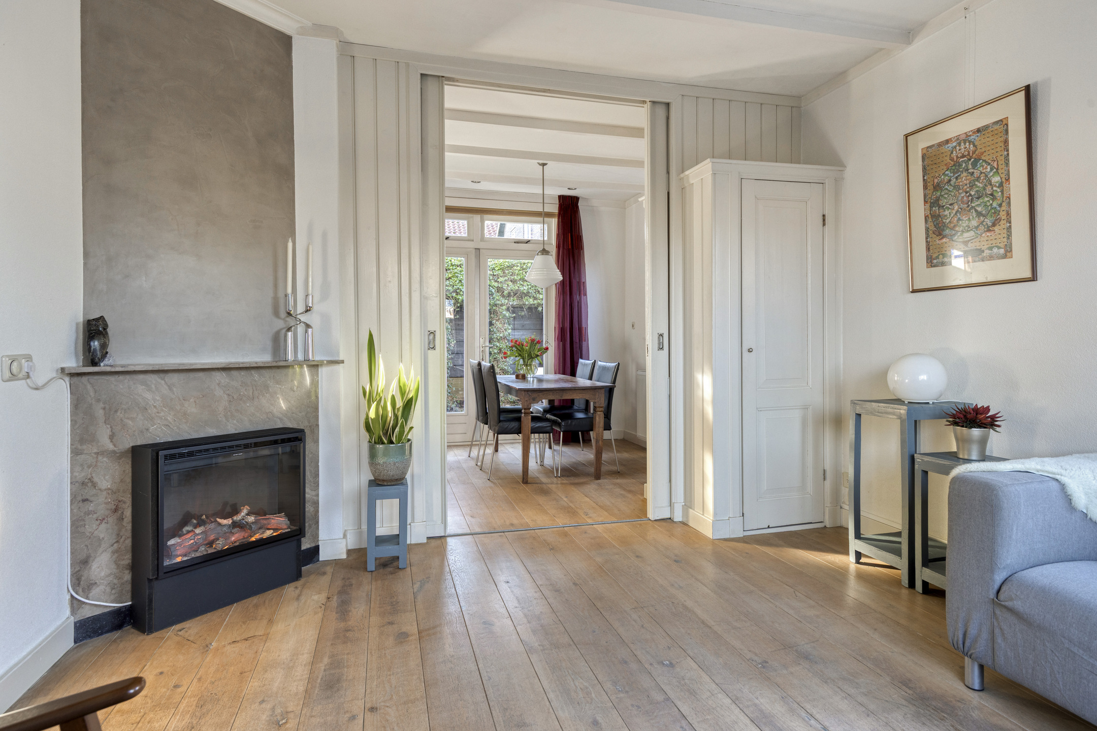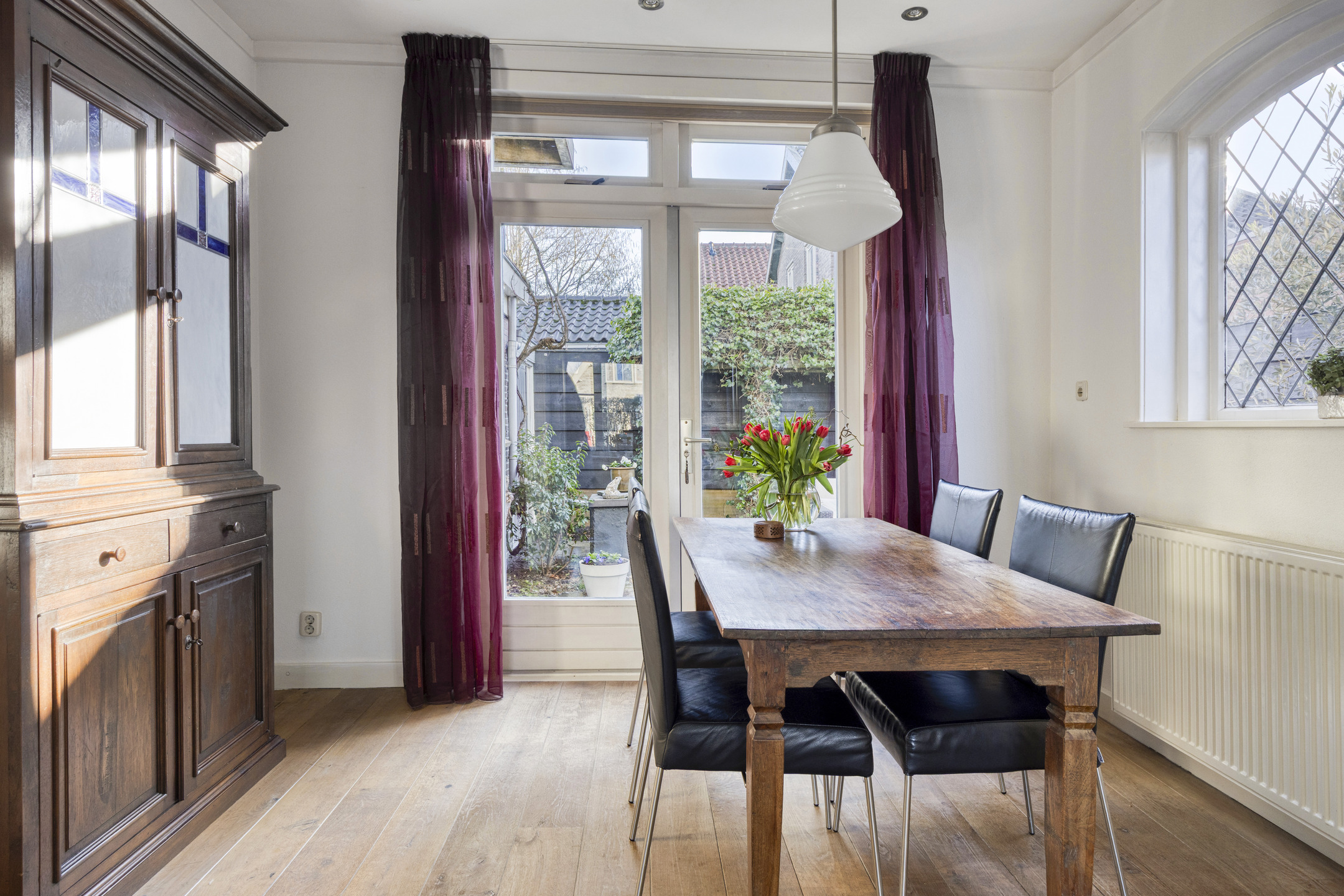 De woonkamer vormt het hart van de begane grond. Dankzij de open indeling en de royale lichtinval voelt de ruimte aangenaam en uitnodigend aan. De houten vloer (Frans eiken) geeft warmte en karakter. U heeft hier volop ruimte voor een comfortabele zithoek Ʃn een eethoek. De en suite deuren naar het eetgedeelte versterken het gevoel van sfeer, terwijl de openslaande deuren naar de tuin zorgen voor een prachtige verbinding tussen binnen en buiten.