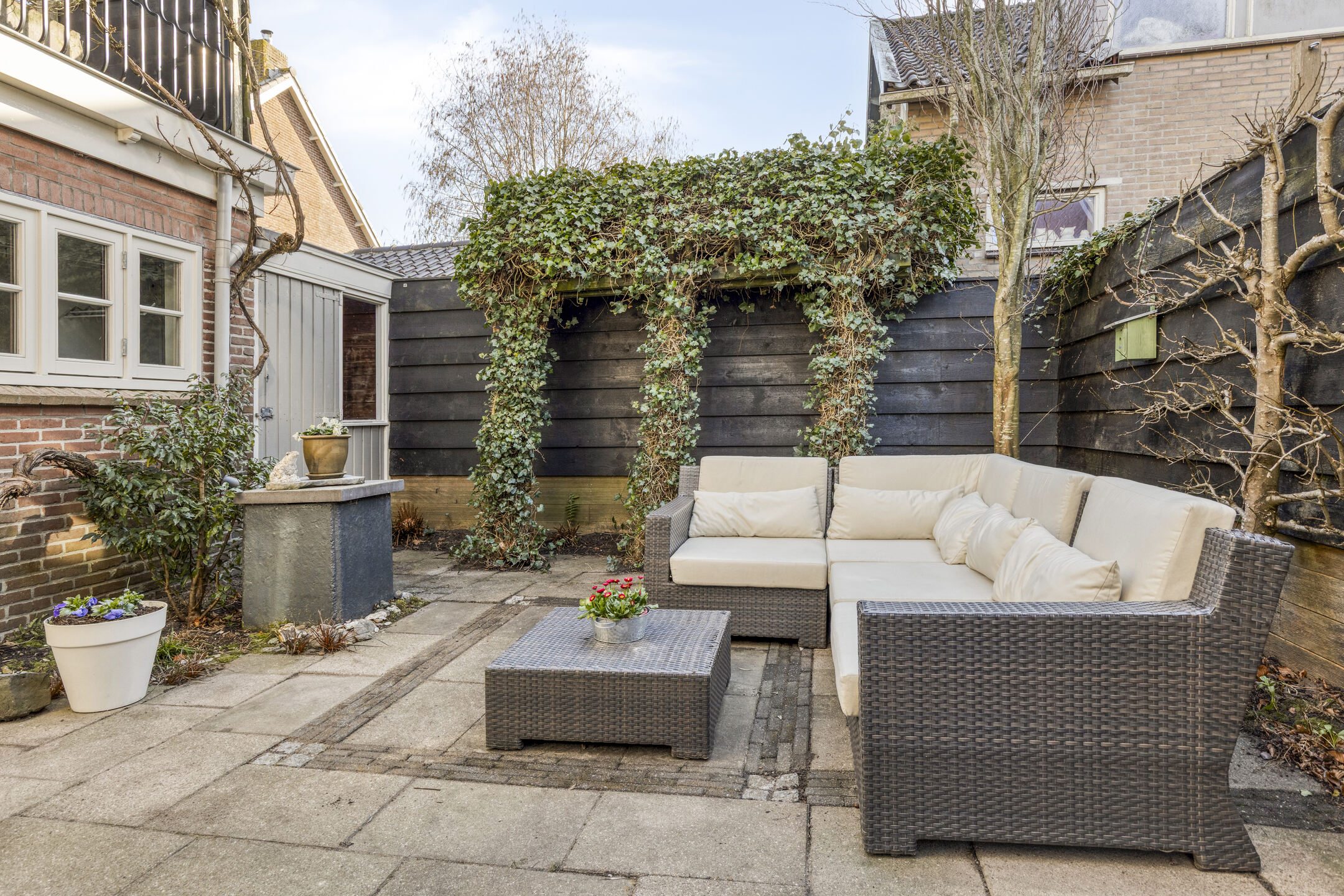 De achtertuin is open, zonnig en goed onderhouden. Een combinatie van bestrating en groen zorgt voor een prettige balans tussen onderhoudsgemak en sfeer. Er is volop ruimte voor een terras, waardoor u hier heerlijk kunt loungen of uitgebreid kunt tafelen met familie en vrienden. Vanuit de tuin heeft u toegang tot de garage, perfect voor het stallen van fietsen of het opbergen van gereedschap. Dankzij de achterom is de tuin bovendien praktisch bereikbaar.