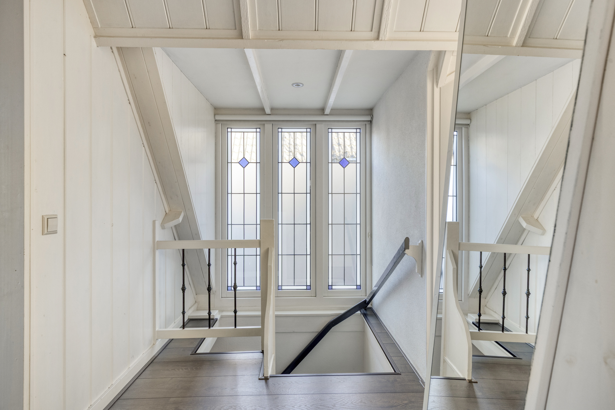 You enter the property through the front garden. In the hallway, the characteristic features of the house immediately stand out. From here you have access to the living room, kitchen, toilet and the staircase to the first floor.
