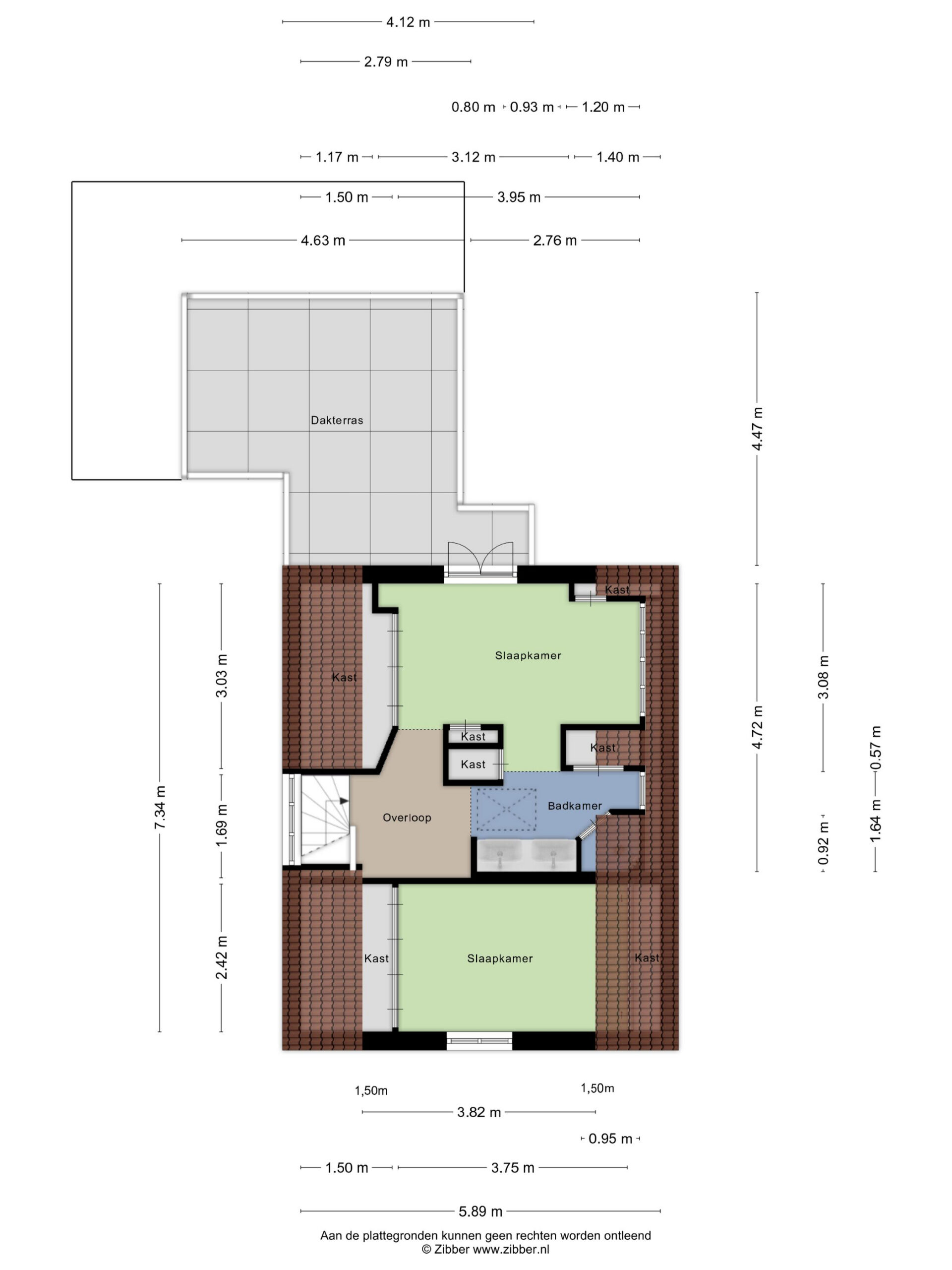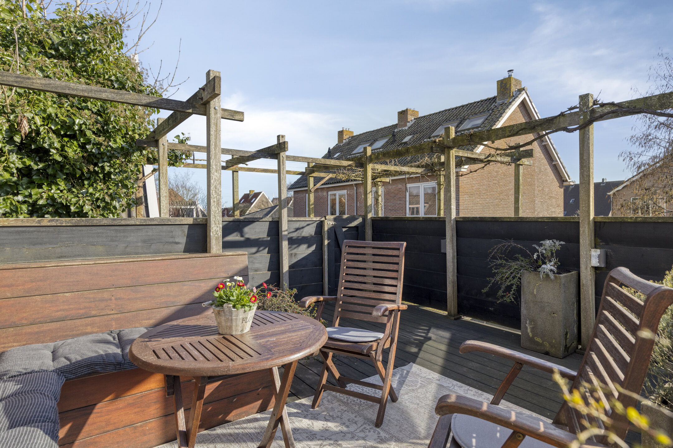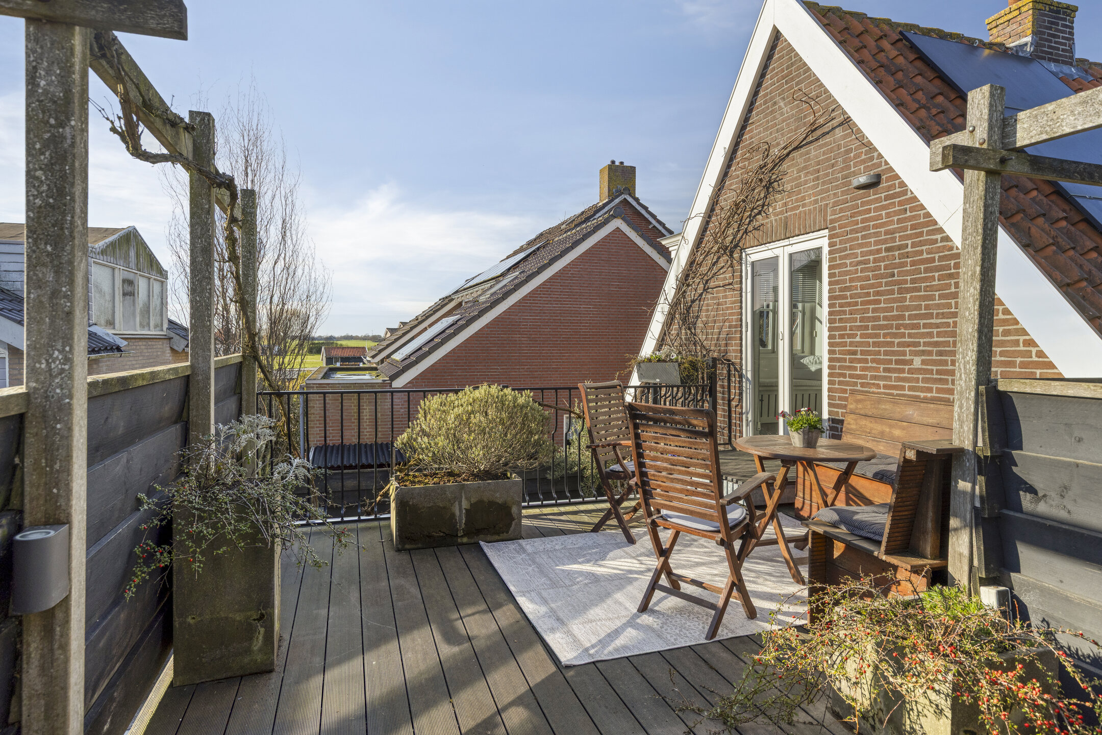 Het dakterras op het zuiden is een heerlijke plek om te ontspannen en te genieten van de zon. Er is ruimte voor een comfortabel zitje, waar u in alle rust kunt genieten van het buitenleven. Een waardevolle toevoeging aan de woning.