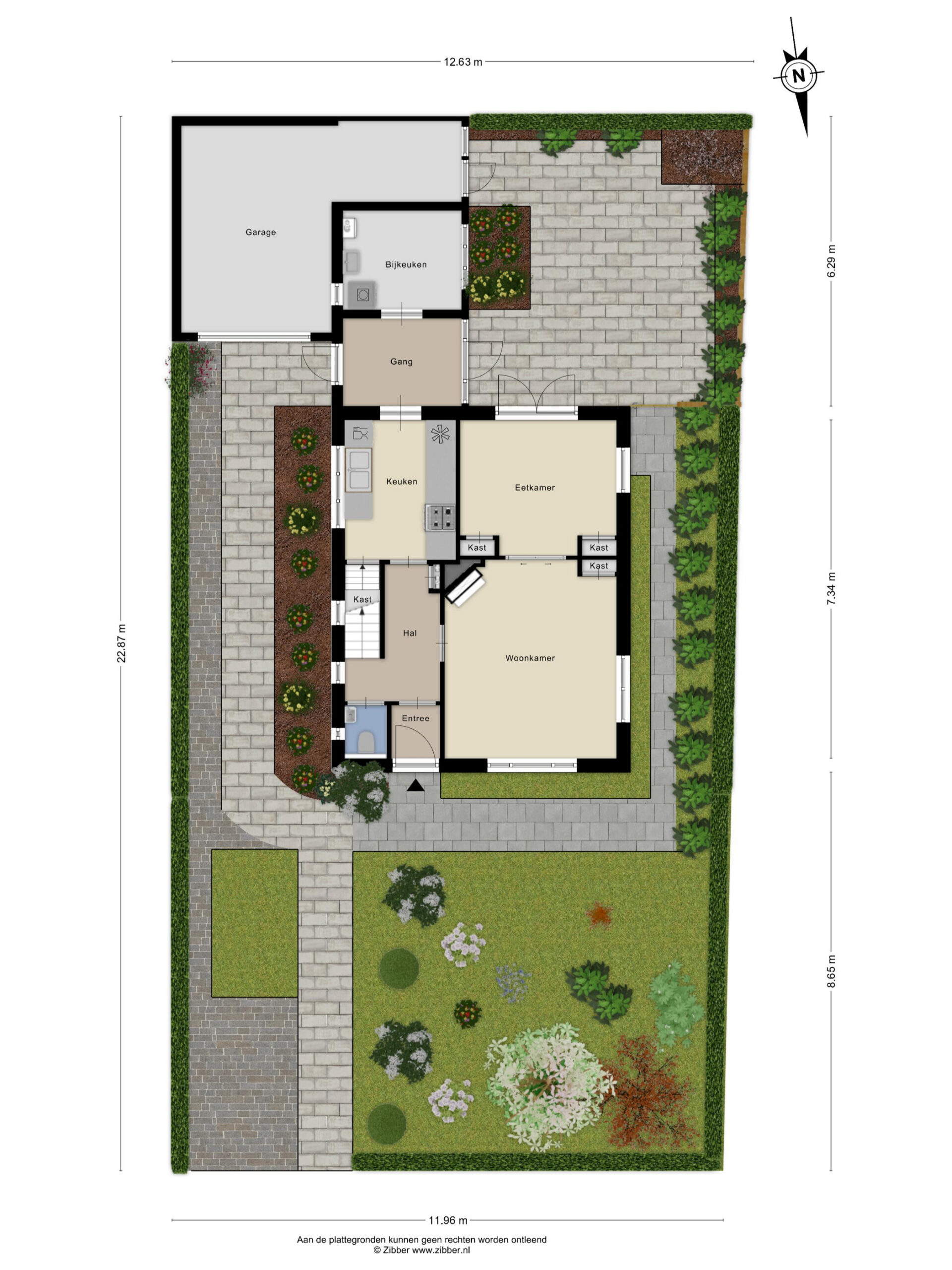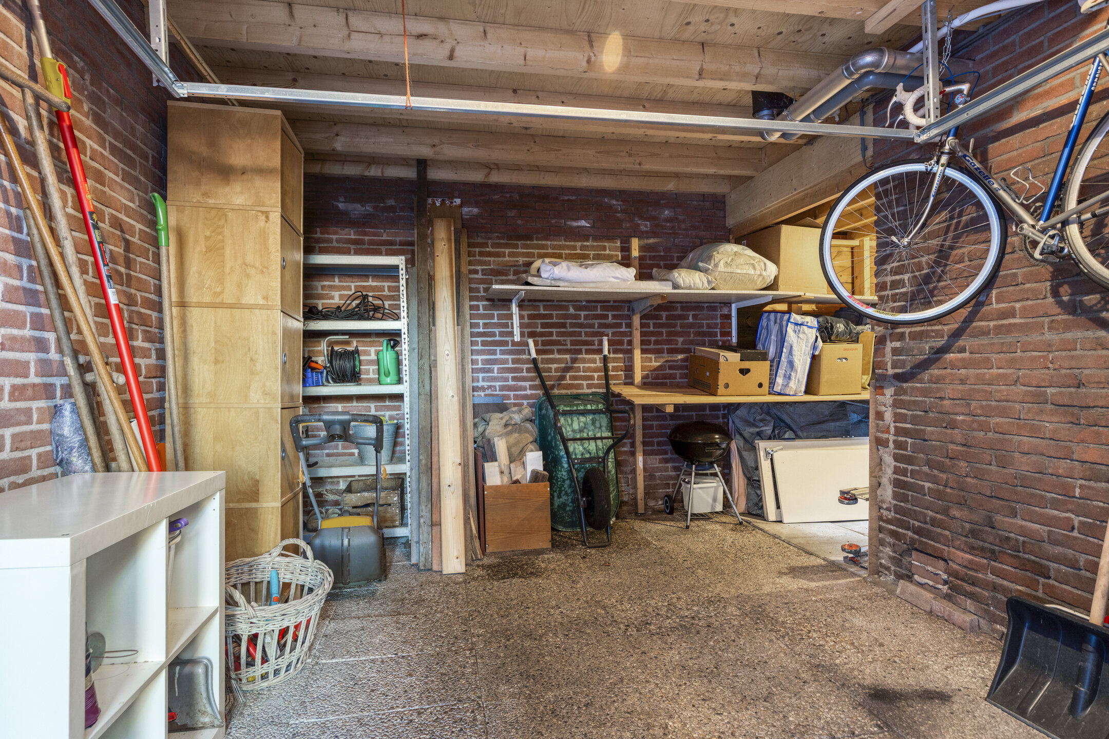 The backyard is open, sunny and well maintained. A combination of paving and greenery creates a pleasant balance between easy maintenance and atmosphere. There is ample space for a terrace, making it perfect for relaxing or dining extensively with family and friends. From the garden you have access to the garage, ideal for storing bicycles or tools. The garden is also easily accessible thanks to a rear entrance.