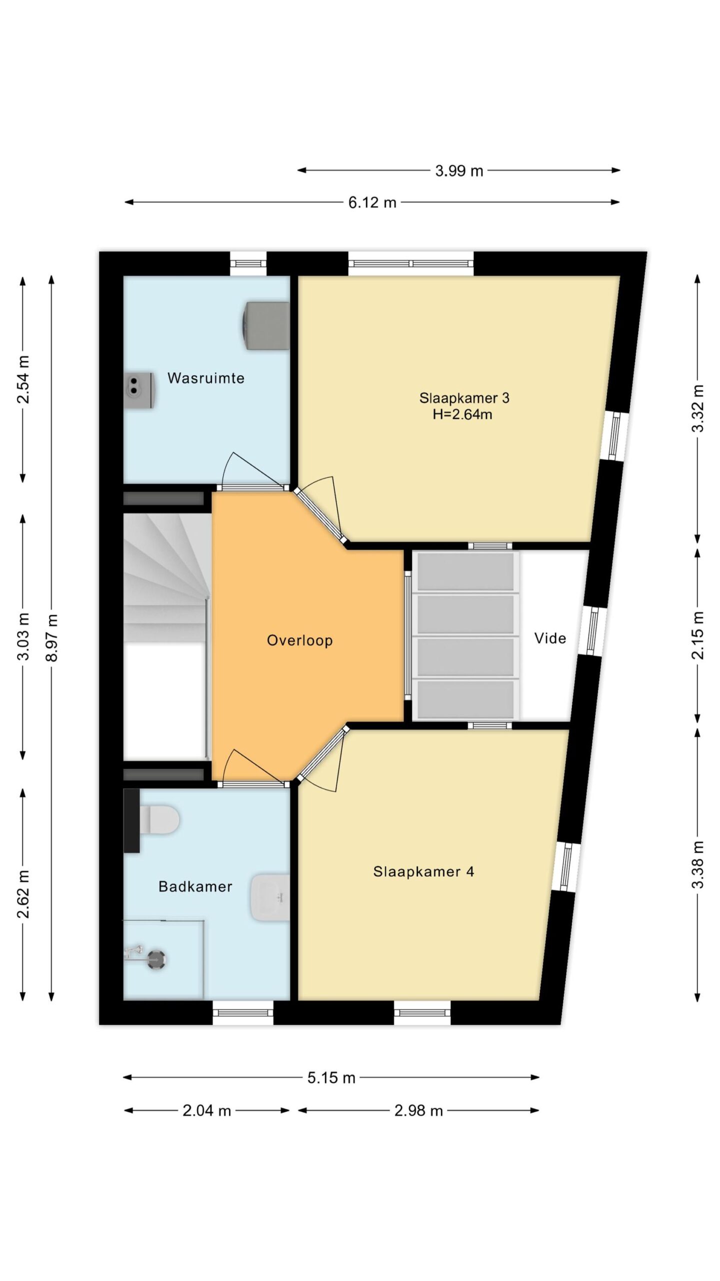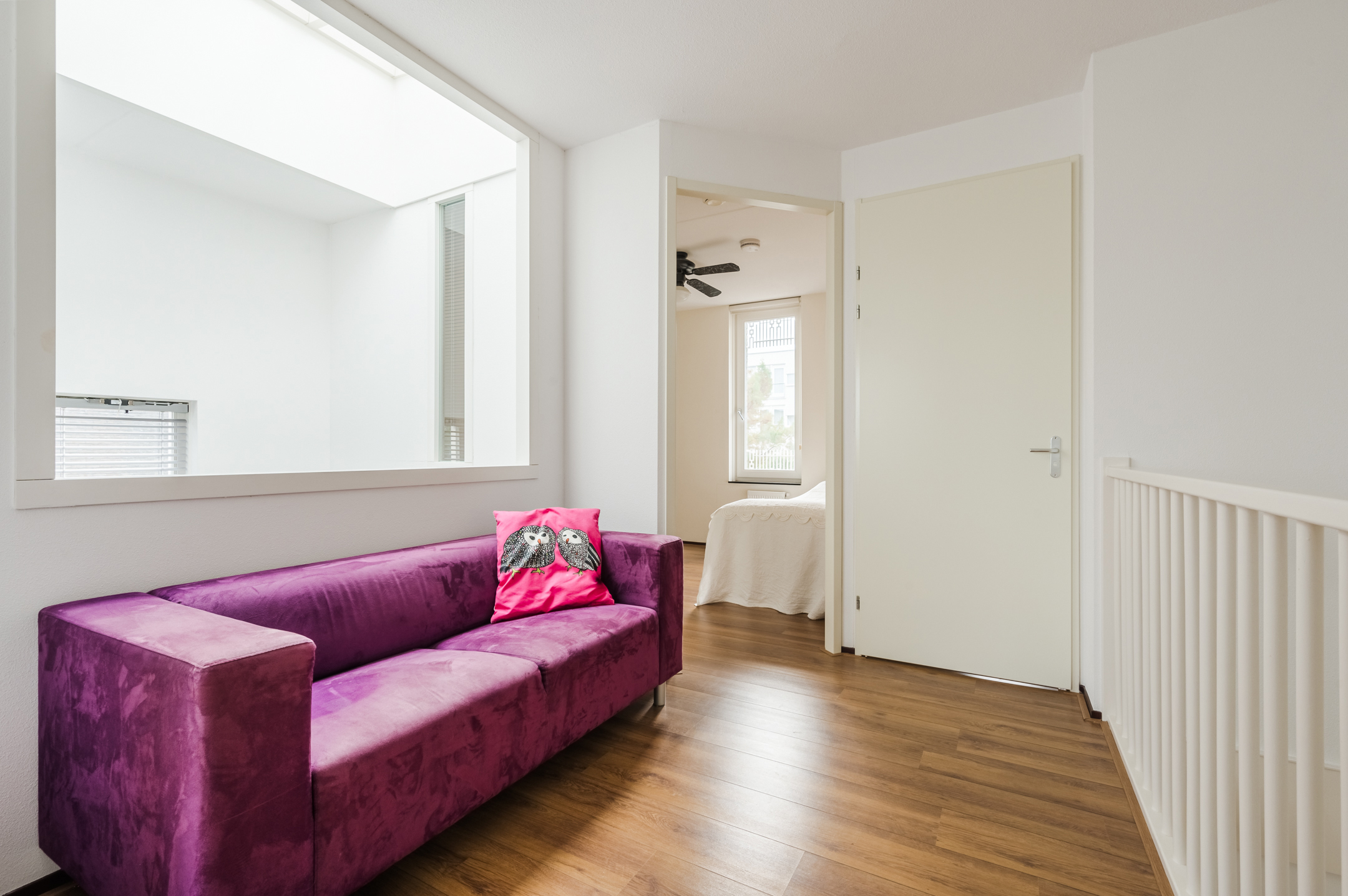 Vanaf de overloop is er toegang tot 2 slaapkamers waarvan er 1 beschikt over een eigen wastafelmeubel met dubbele kraan en veel kastruimte. De overloop is dusdanig groot dat je hier gemakkelijk een extra slaapkamer kunnen realiseren! In de huidige indeling is hier een fraaie vide aanwezig wat zorgt voor een fijn en ruimtelijk effect.