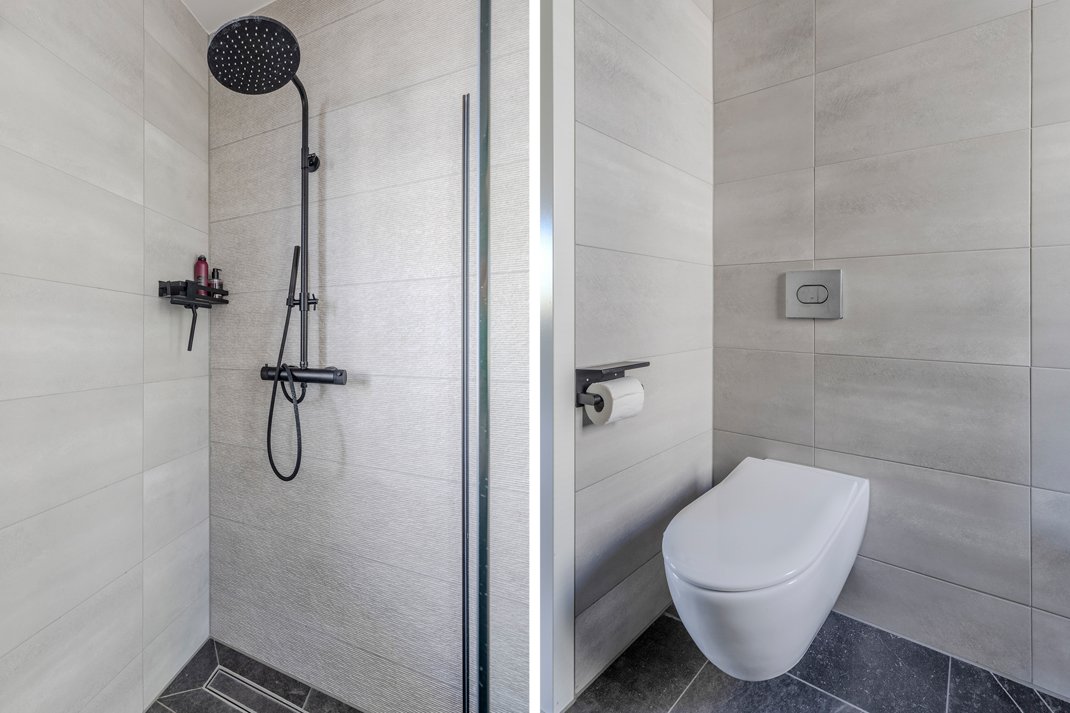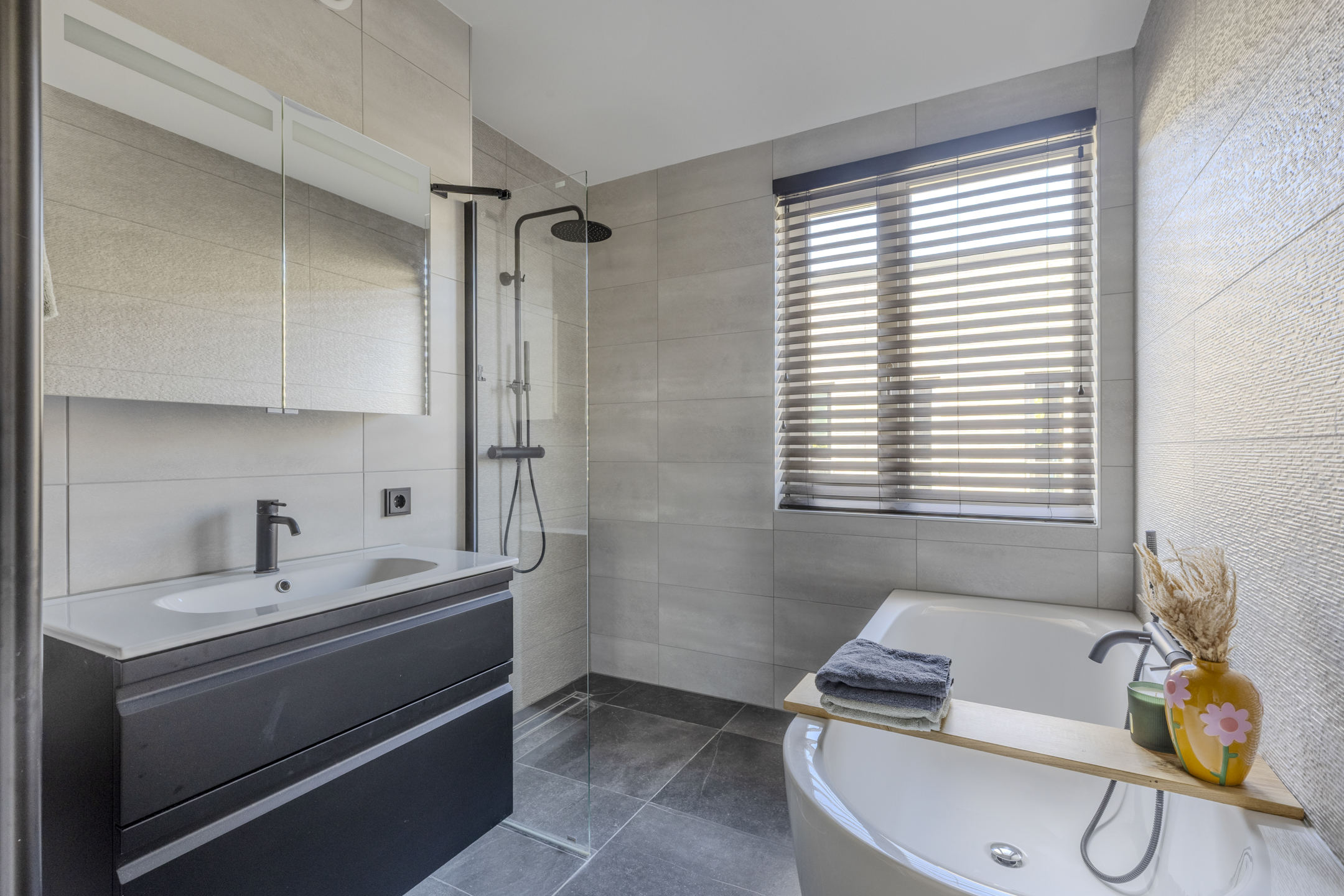 Vanaf de overloop is er toegang tot nog eens 2 volwaardige slaapkamers, een separaat toilet met fonteintje en de tweede badkamer met wastafel met meubel, ligbad en een aparte inloopregendouche.