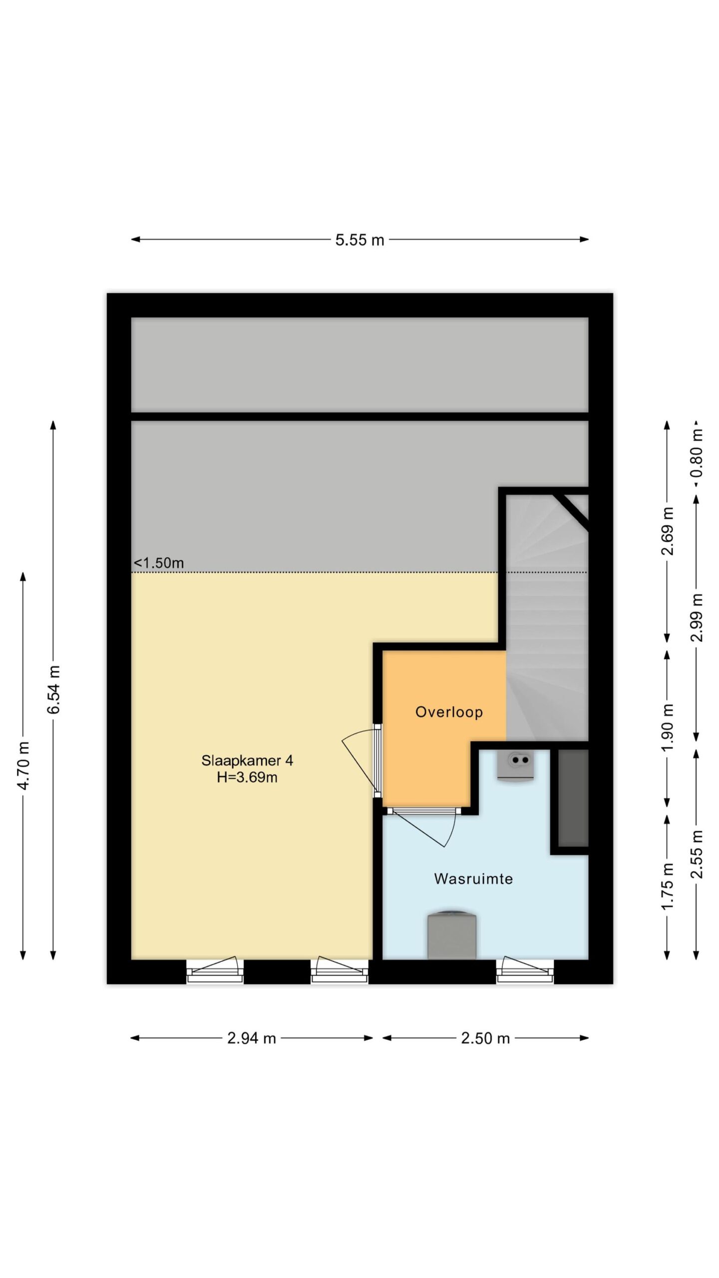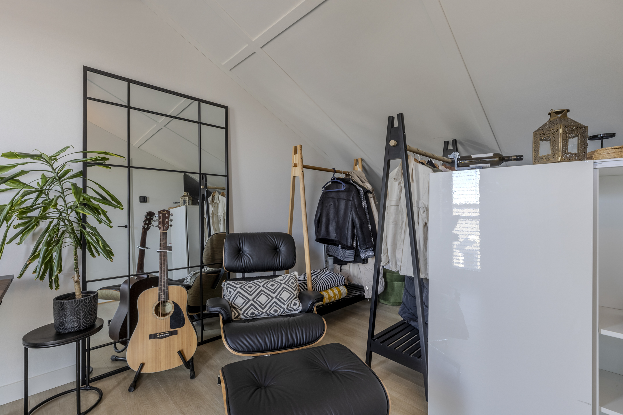 Vanaf de overloop is er toegang tot de 4e slaapkamer met mooi hoog nokplafond en tot de aparte wasruimte.