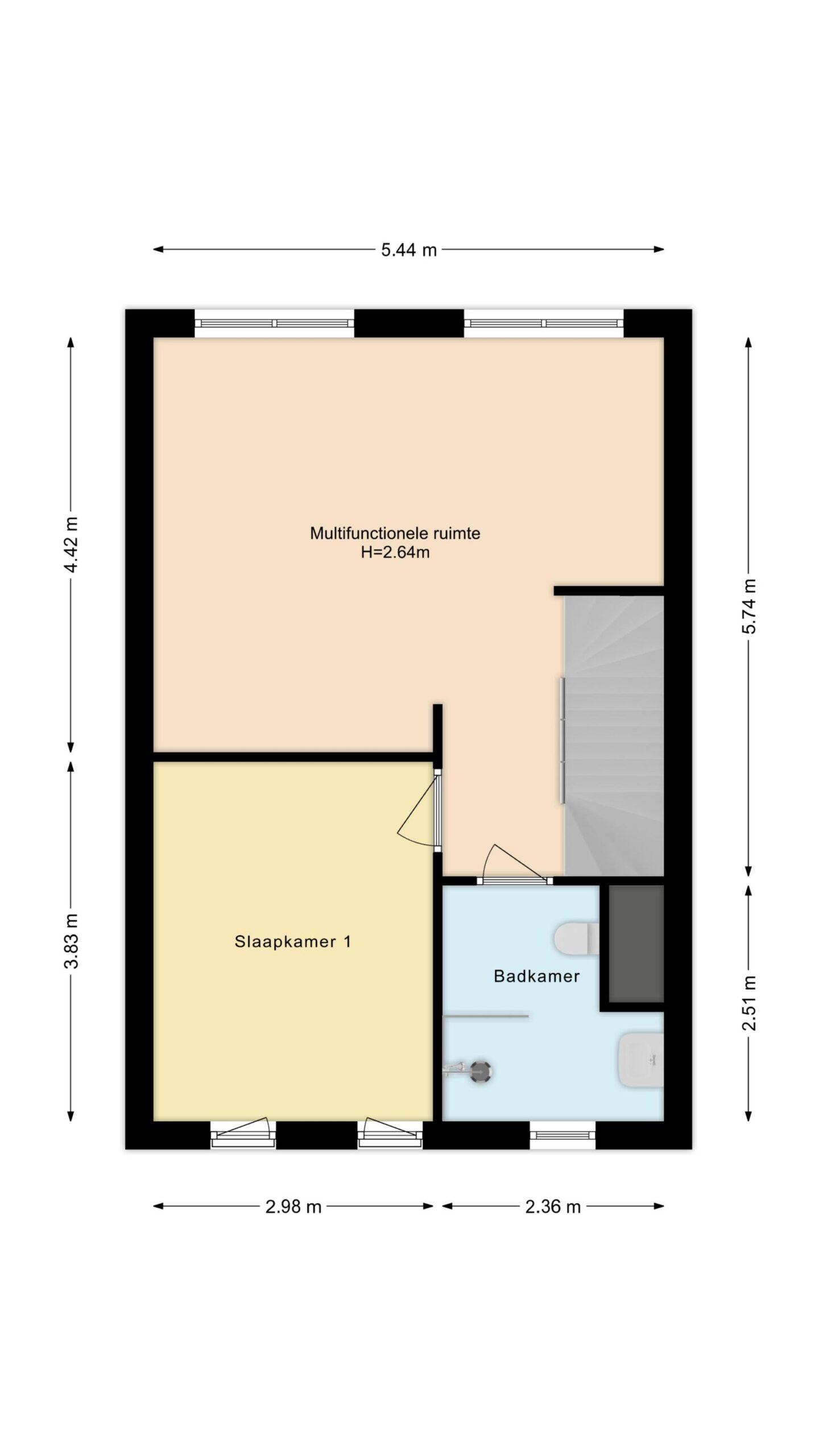 Op deze etage vinden we een grote, open multifunctionele ruimte (zeer geschikt als extra woonkamer of "hobbyruimte"!) die toegang biedt tot 1 slaapkamer en 1 badkamer met zwevend toilet, wastafel met meubel en een inloopregendouche.
