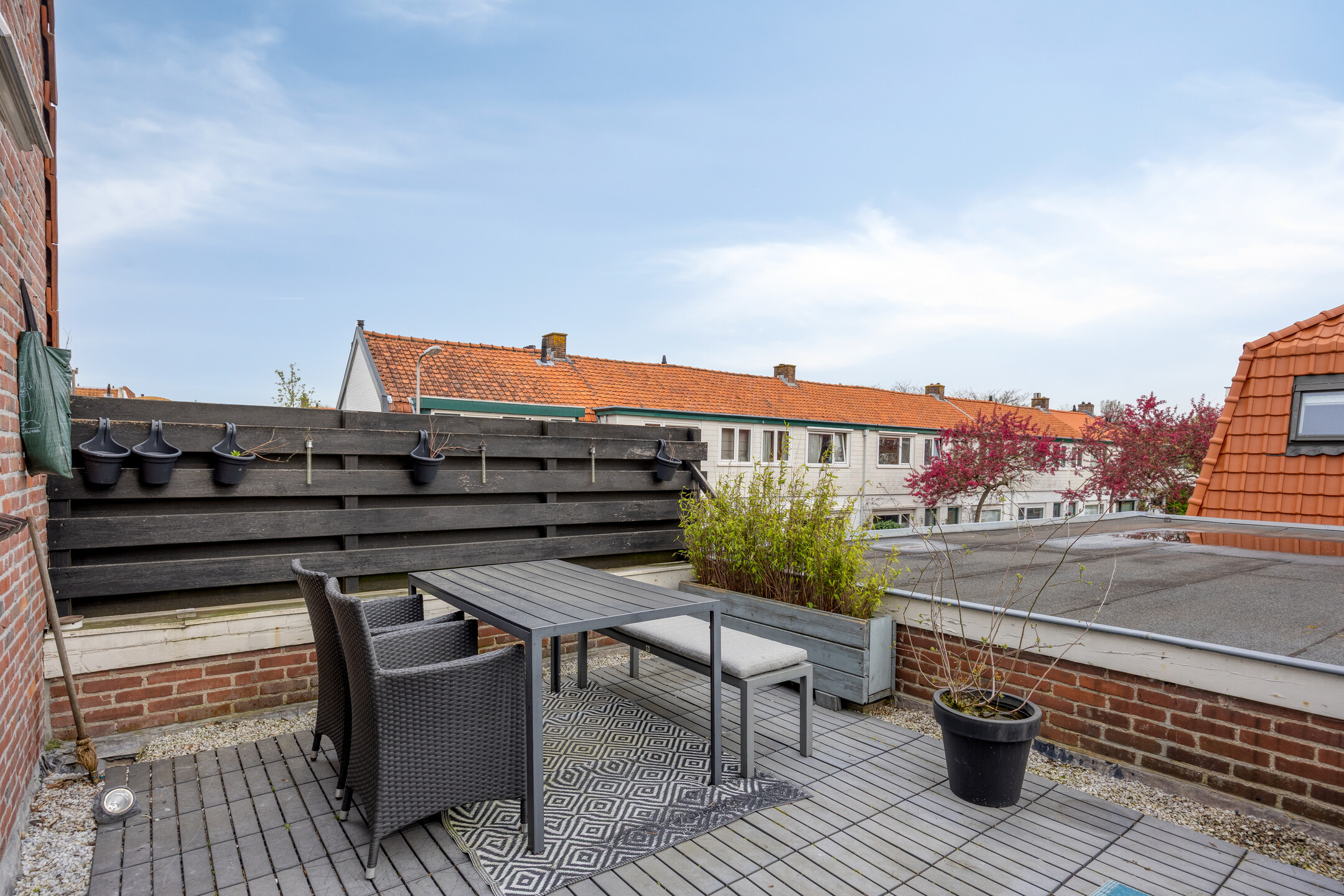 Het appartement op de eerste en tweede verdieping beschikt over zowel een balkon als een dakterras. Het dakterras is bereikbaar vanuit de keuken en vormt een heerlijke plek om buiten te zitten, terwijl het balkon een extra mogelijkheid biedt om van de buitenlucht te genieten.
