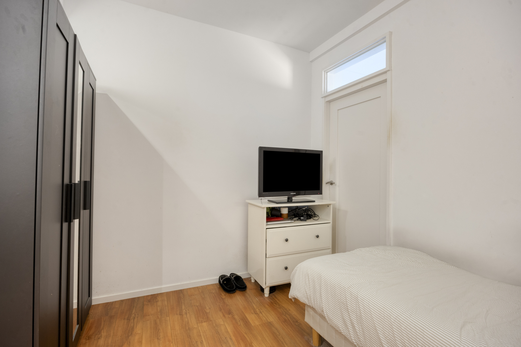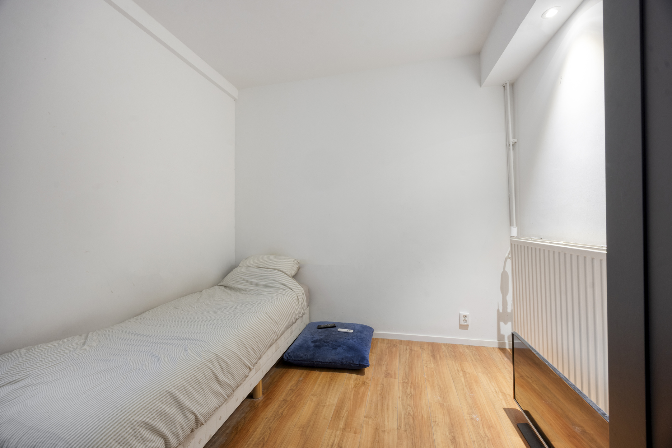 De slaapkamer is knus en biedt ruimte voor een bed en kastruimte. Een fijne plek om tot rust te komen, met een praktische indeling die optimaal gebruikmaakt van de beschikbare meters.