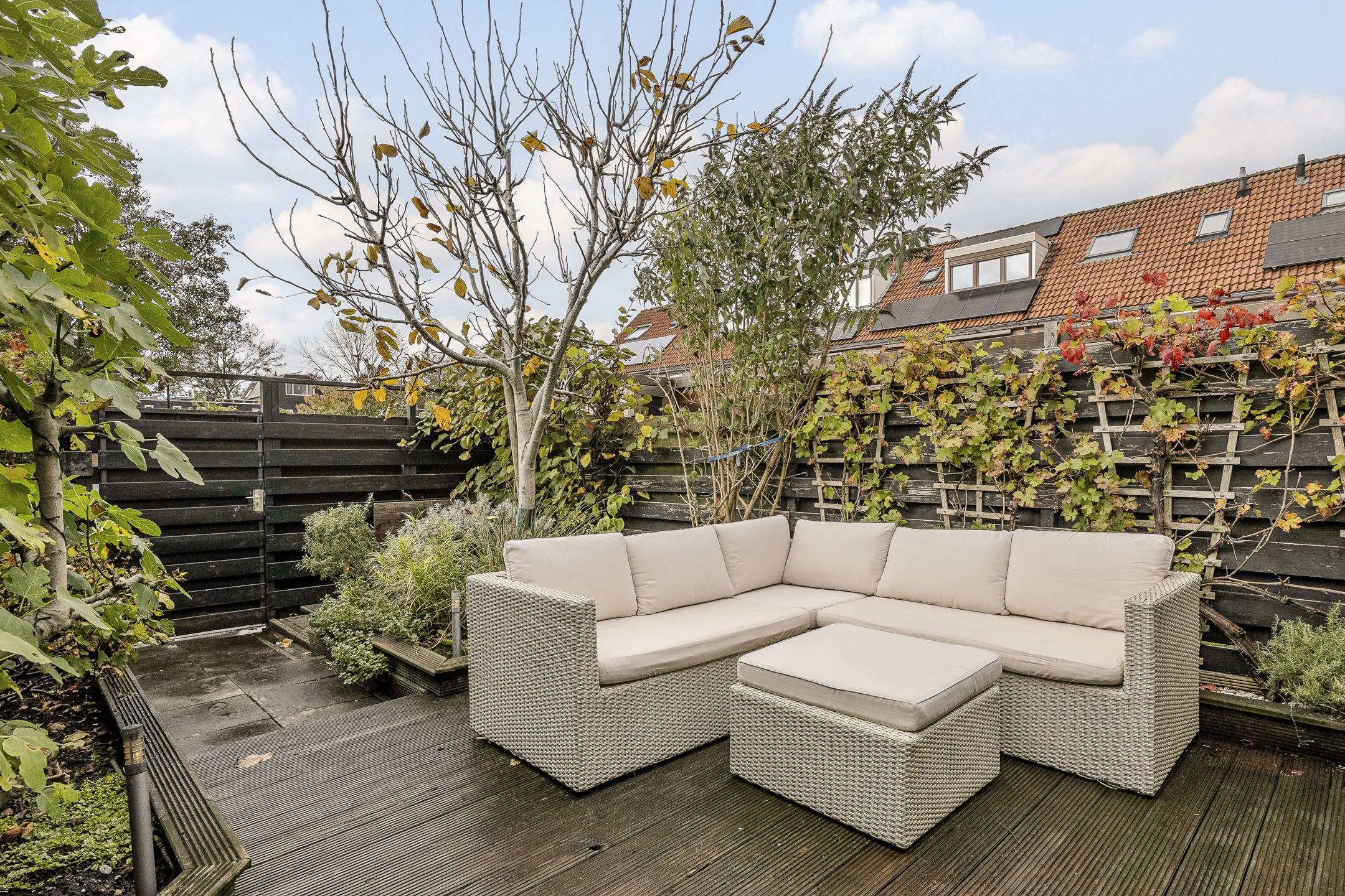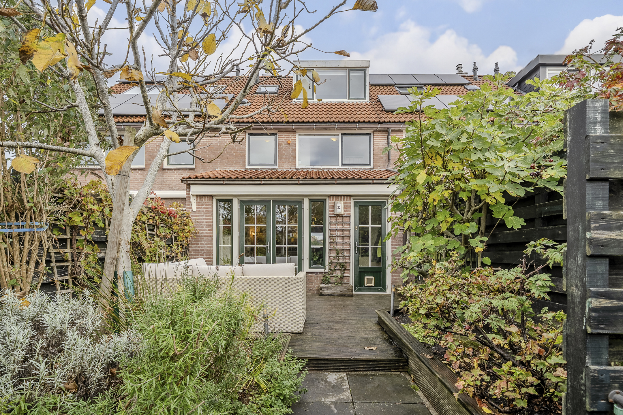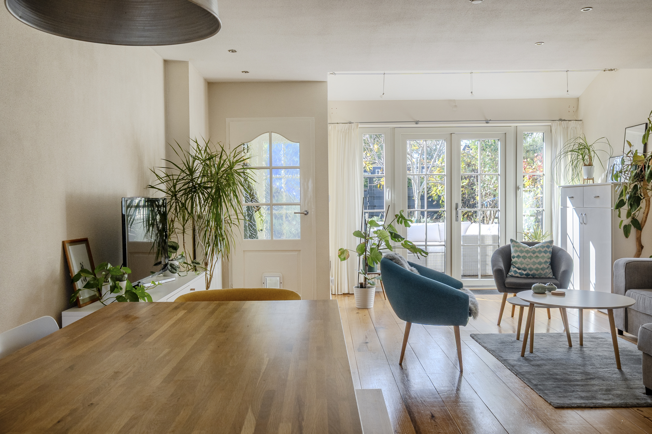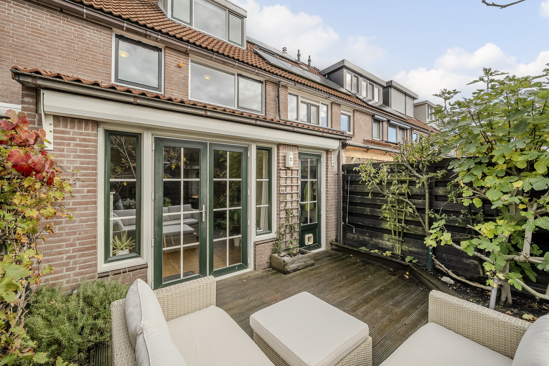 De royale openslaande tuindeuren of de loopdeur geeft een prachtige overgang naar de zonnige en fraai aangelegde achtertuin welke op het zuidwesten gelegen is. Gezien de gunstige ligging en het ontbreken van achterburen heeft u veel privacy in de tuin.