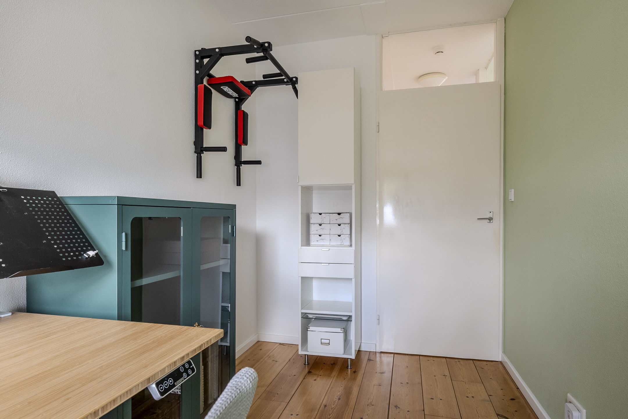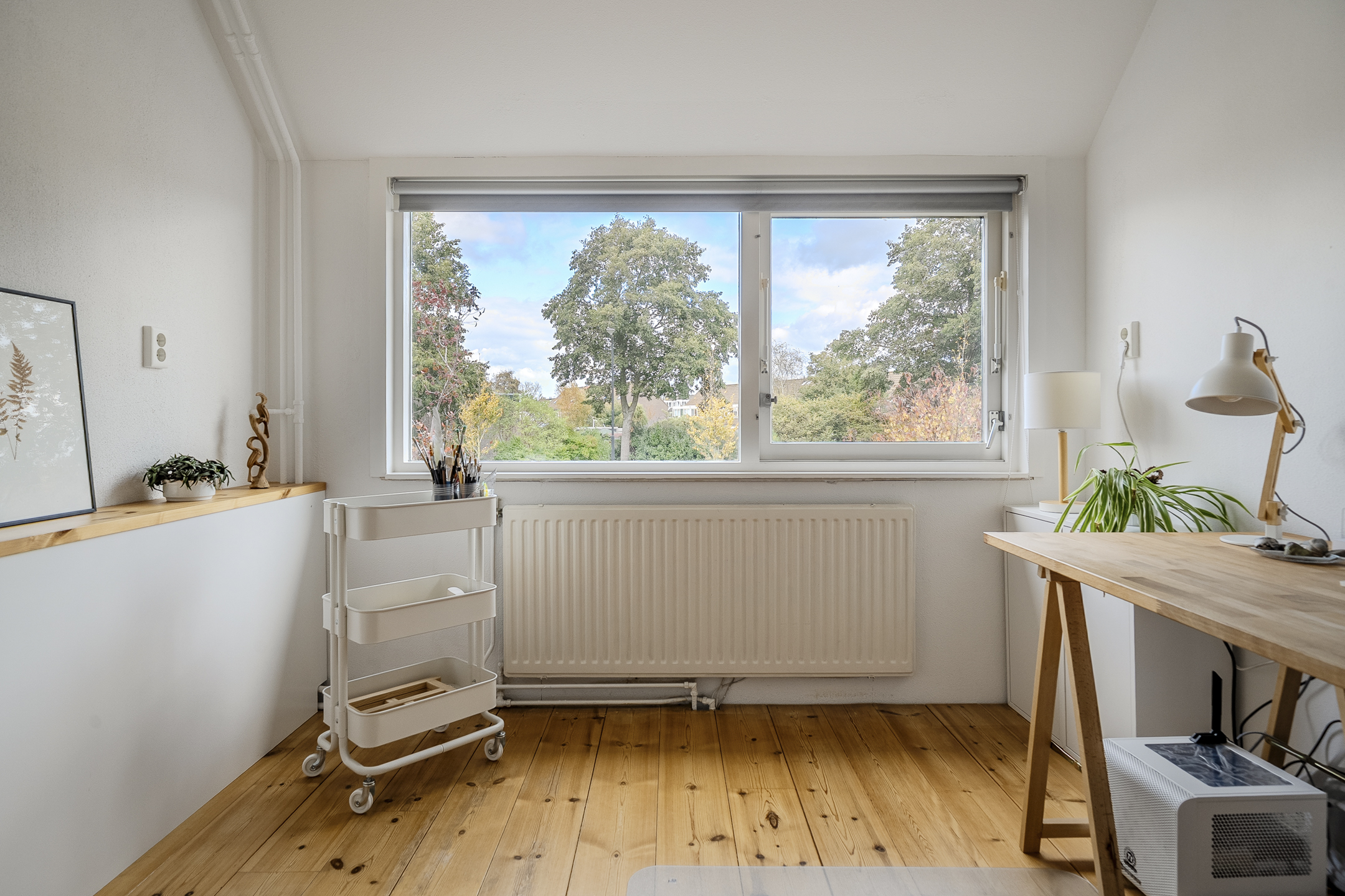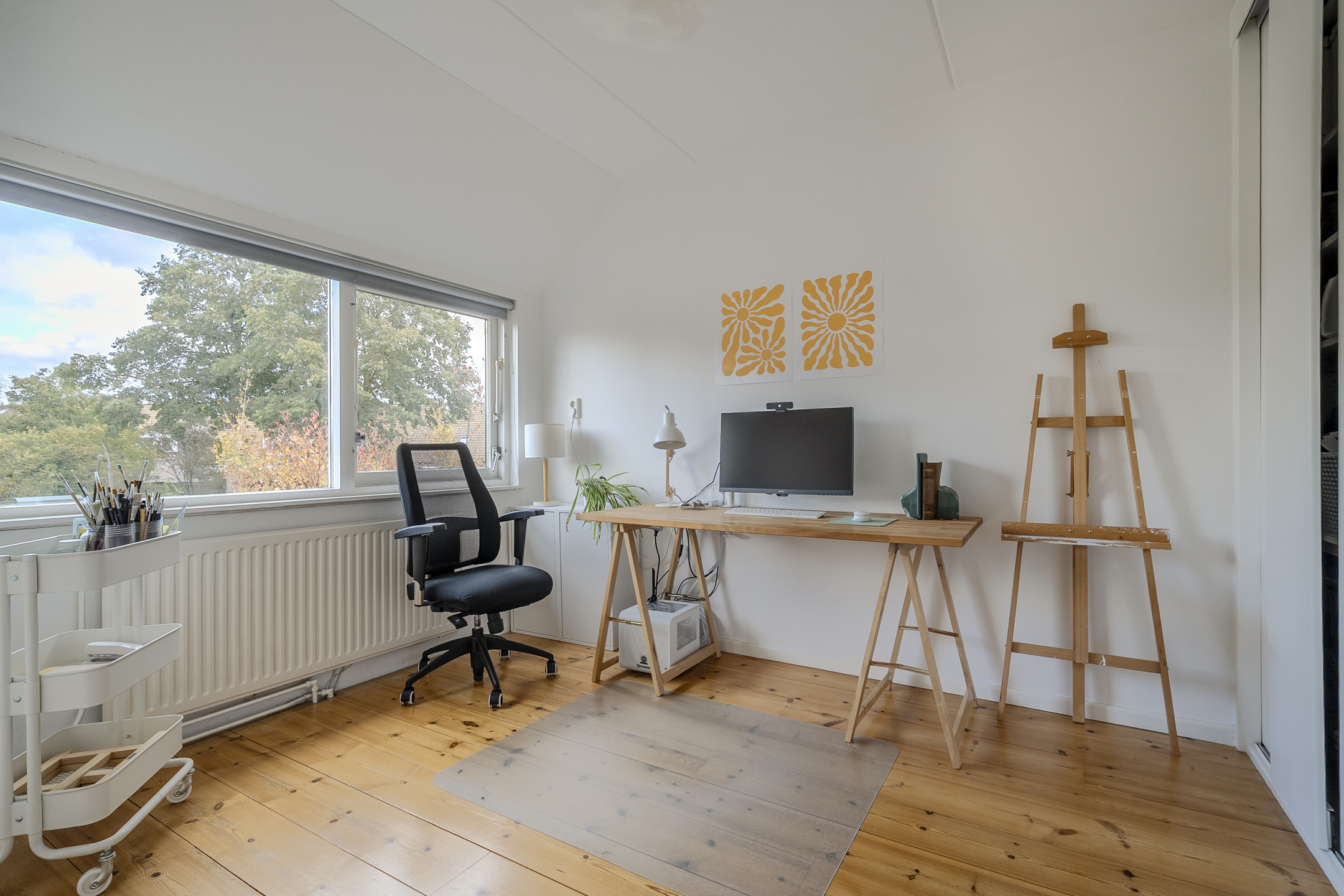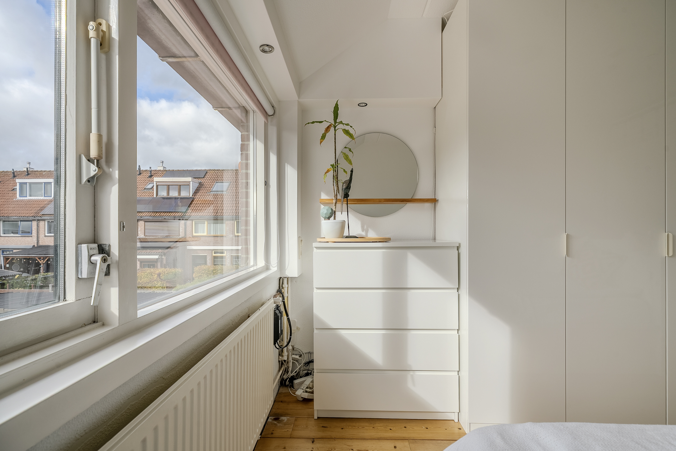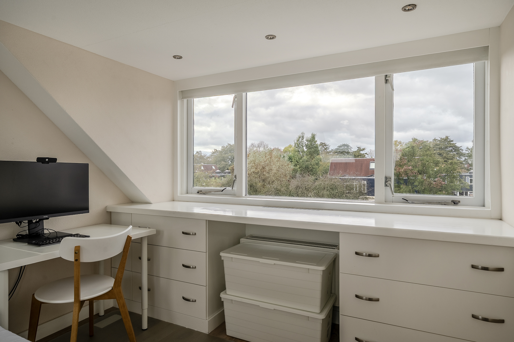 Via een vaste trap is de gerenoveerde zolderverdieping bereikbaar. Hier is de 4e slaapkamer gerealiseerd! En wat voor een! Met een riante dakkapel en drie dakramen is het een prachtige kamer geworden, met vaste kasten en een zee aan bergruimte! Verder treft u hier nog een opstel plek voor de wasmachine en droger en de opstelling voor de CV-ketel (Remeha 2024) Ʃn nog meer bergruimte op de vliering!