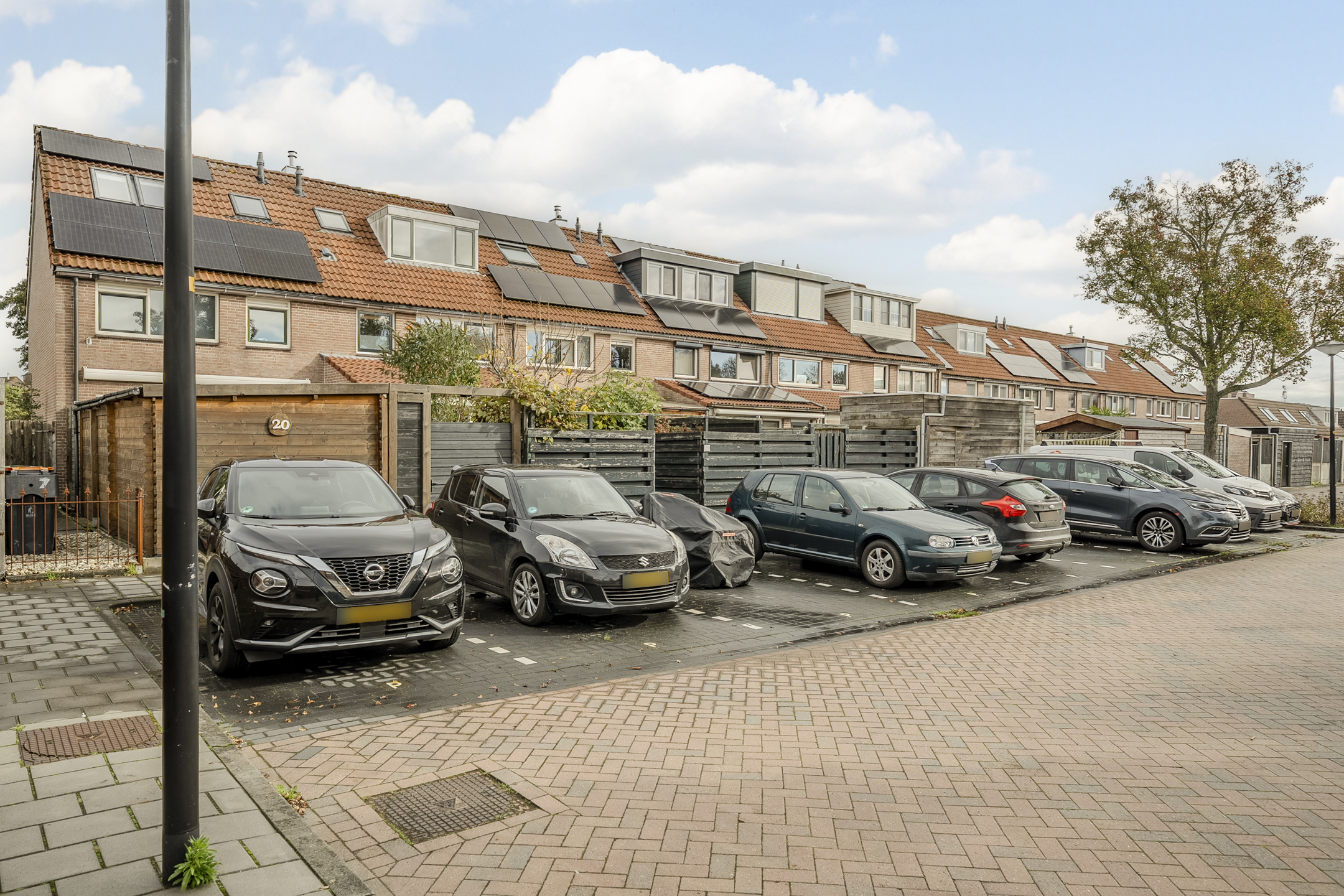 er is een ruim parkeerterrein met voldoende parkeerplaatsen aan de achterzijde van de woning.