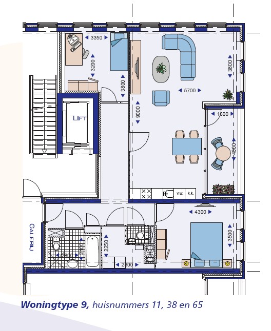Dit appartement is bereikbaar door middel van een lift. Het appartement is voorzien van een eigen berging op de eerste verdieping.