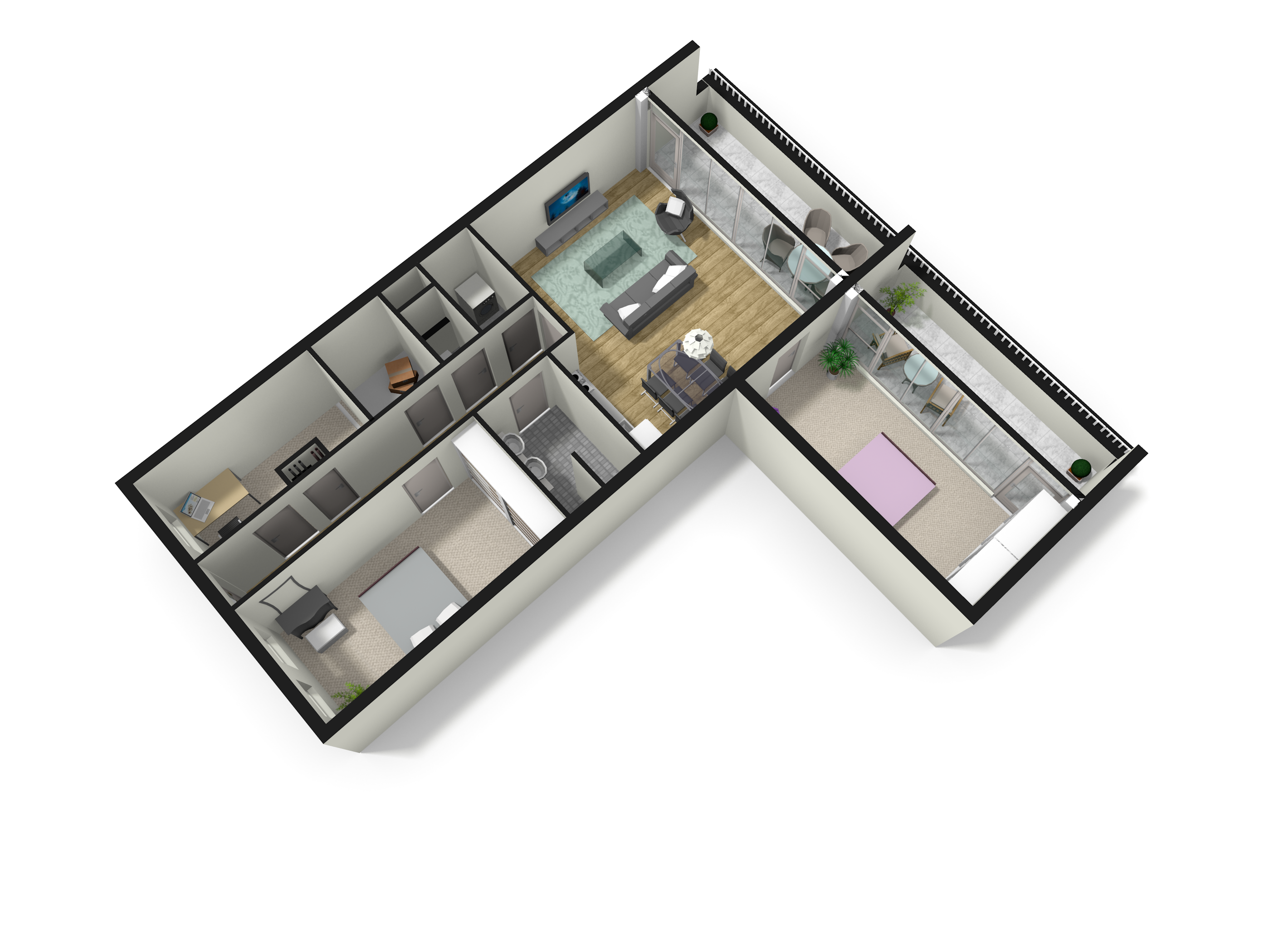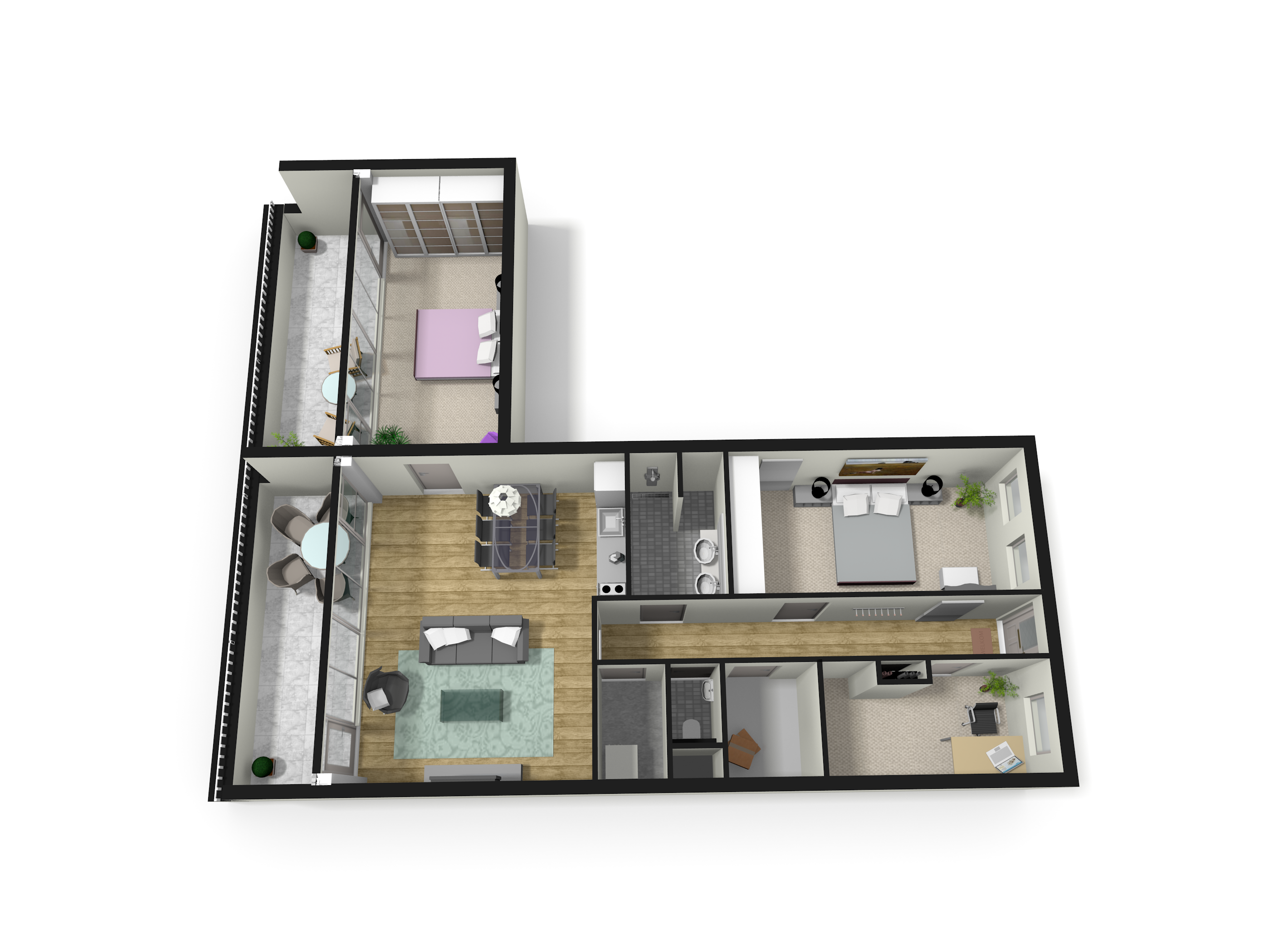 Indeling Type B: Entree, toegang tot de 2 slaapkamers ( 15,8 m2 en 6,2 m2), badkamer voorzien van dubbele wastafel en inloopdouche, toilet separaat en de meterkast. In de woonkamer treft de open keuken voorzien van diverse inbouwapparatuur te weten: koelkast, vaatwasmachine, 4 pits inductiekookplaat en afzuigkap. Aan de rechterzijde van de woonkamer treft u de doorgang naar de grootste, en derde slaapkamer van het appartement. Deze is met 18,1 m2 en een directe toegang tot een privƩ balkon over het water op het zuidwesten. Ook de woonkamer heeft een balkon welke is gelegen direct boven het water op het zonnige zuidwesten.