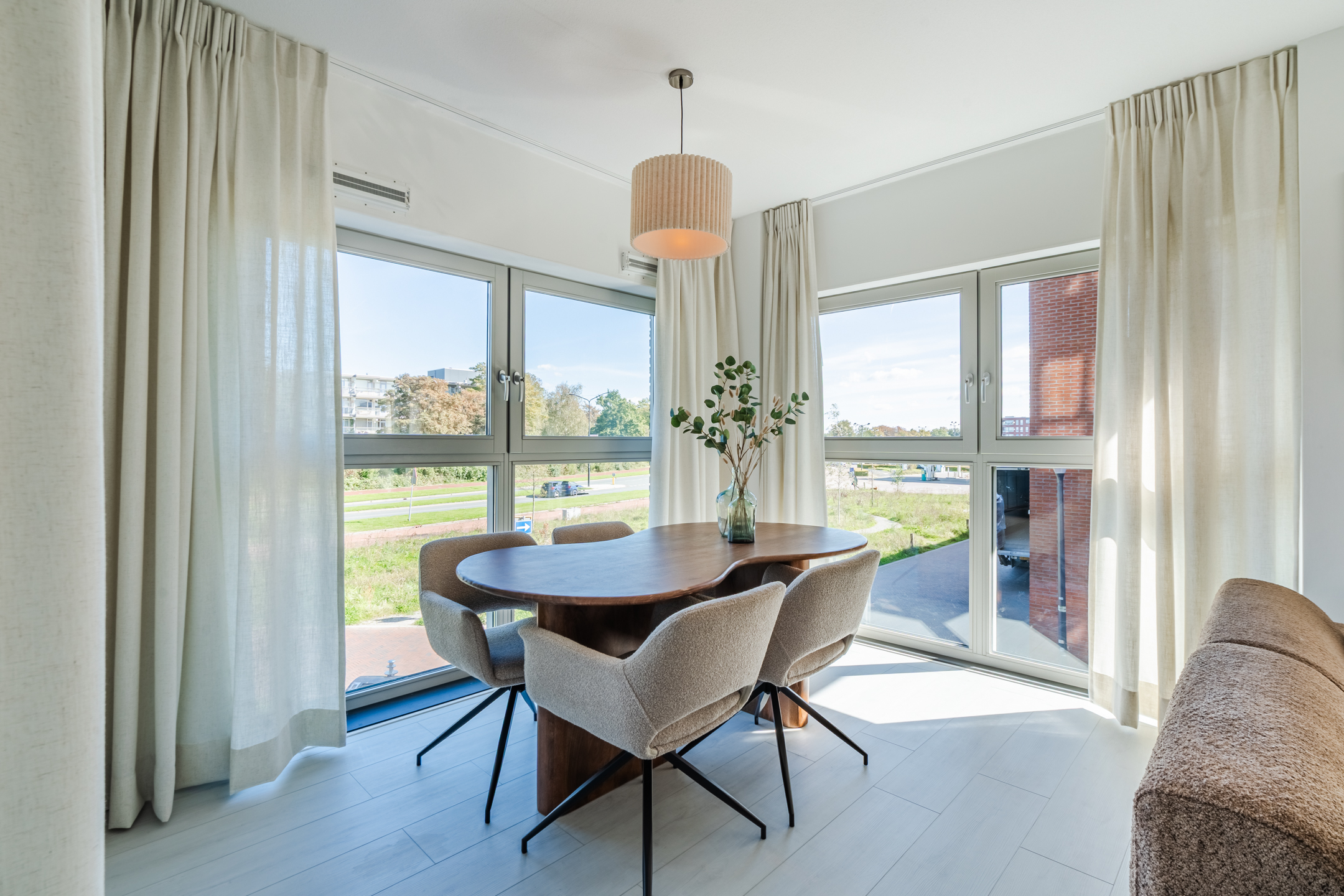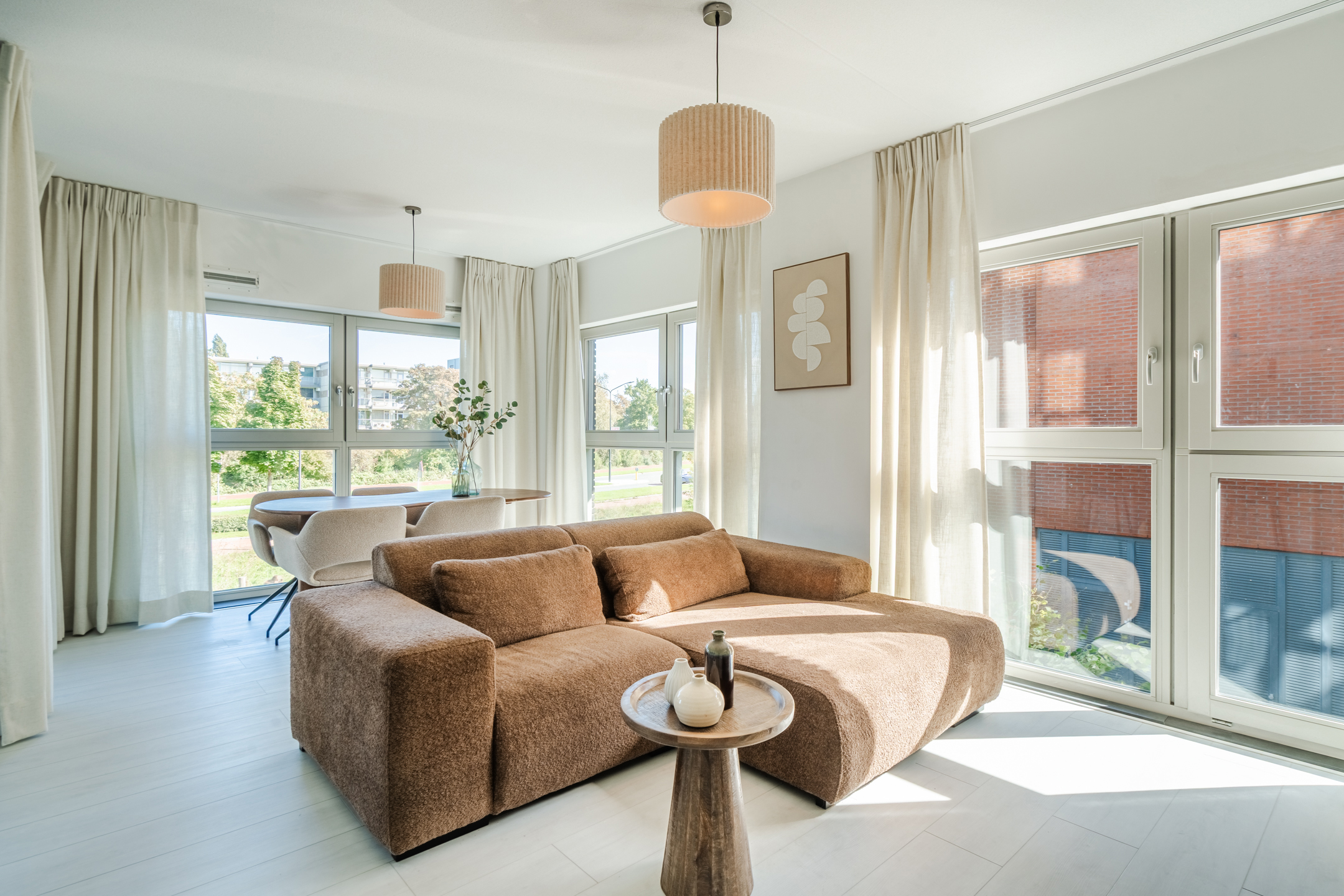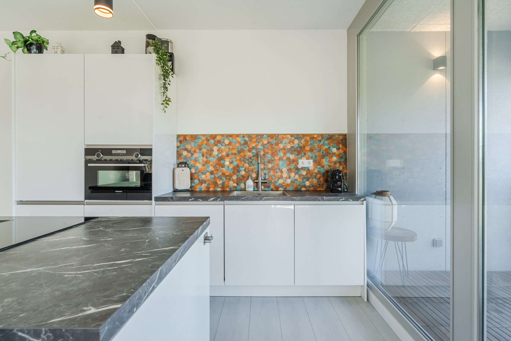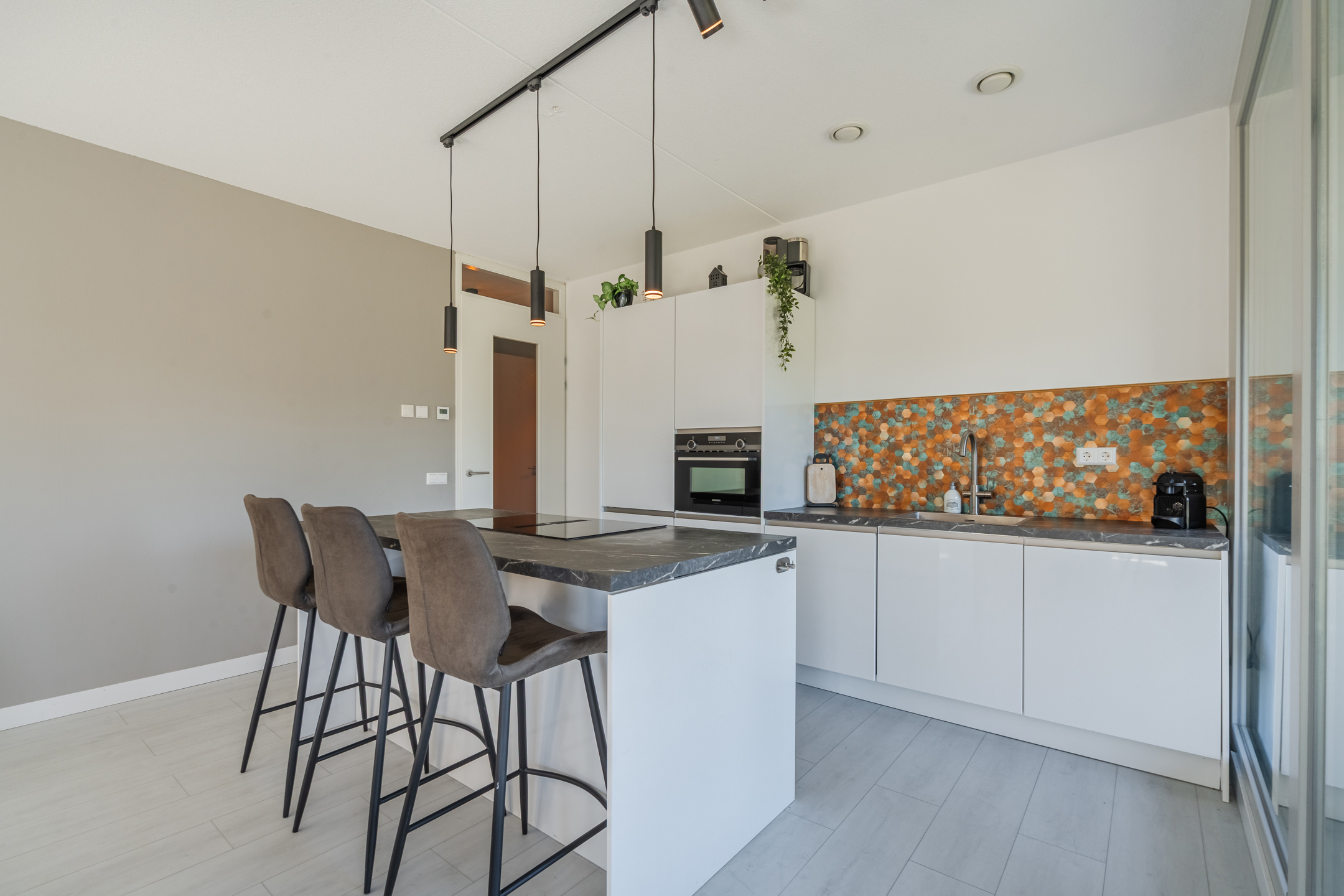 Het appartement met uitzicht over een groenstrook en de Zuidtangent is heerlijk licht. Bij het betreden van het appartement op de 1e verdieping treft u een hal. In de hal treft u een praktische bergkast met wasmachine en droger aansluiting, technische ruimte, meterkast en geheel betegelde toiletruimte met wandcloset en fonteintje. Het appartement heeft een ruime en lichte living met fraaie PVC vloerbedekking met vloerverwarming, gestuukte wanden en een open verbinding met de keuken (2023), welke in een rechte opstelling is geplaatst met kookeiland en voorzien van diverse Siemens inbouwapparatuur, waaronder een vaatwasser met Wifi, 4 pits inductie kookplaat incl. afzuiging, combi-magnetron, koelkast, vriezer en Quooker. De royale slaapkamer is tevens voorzien van een PVC vloer en heeft toegang tot een geheel betegelde badkamer met inloopdouche, wastafel met meubel en spiegel.