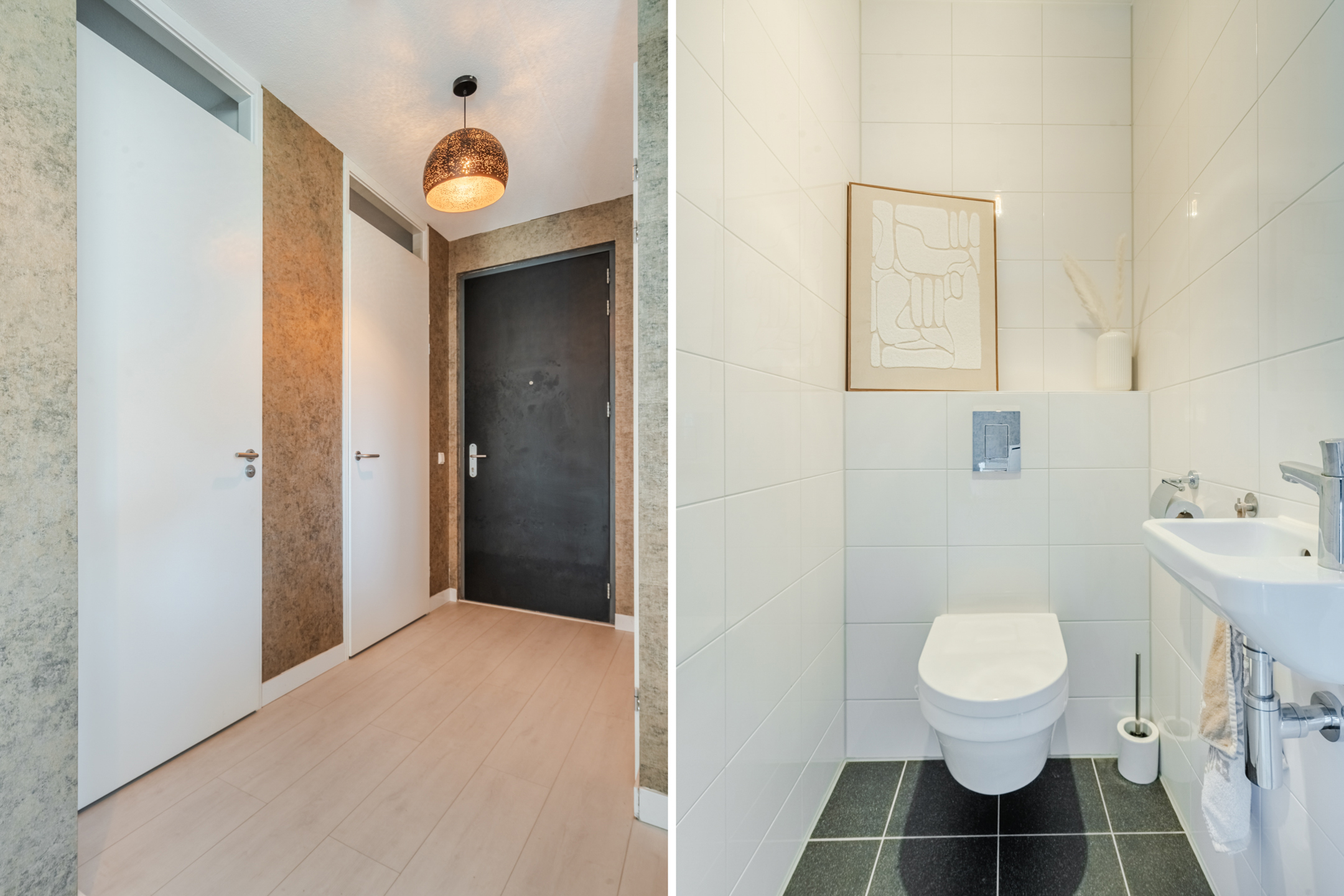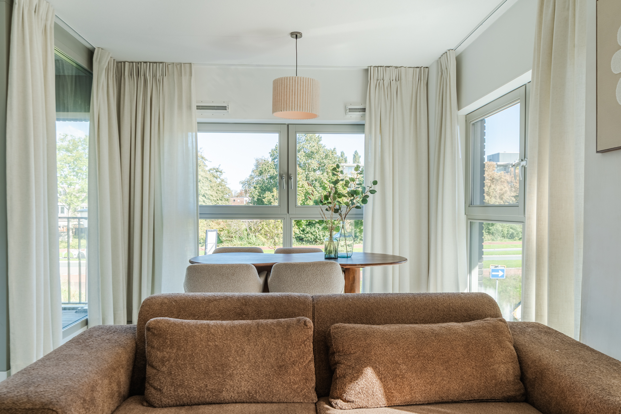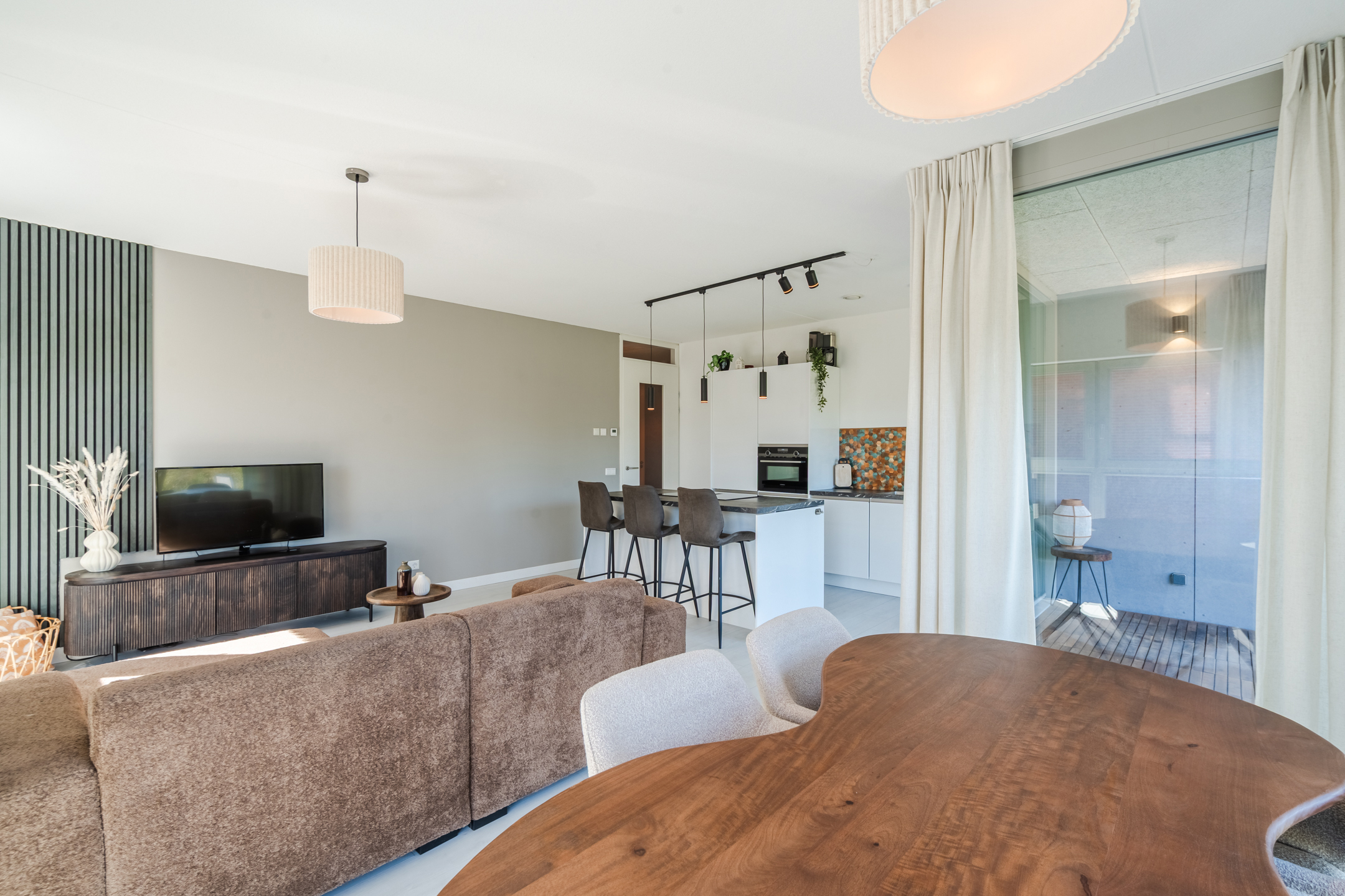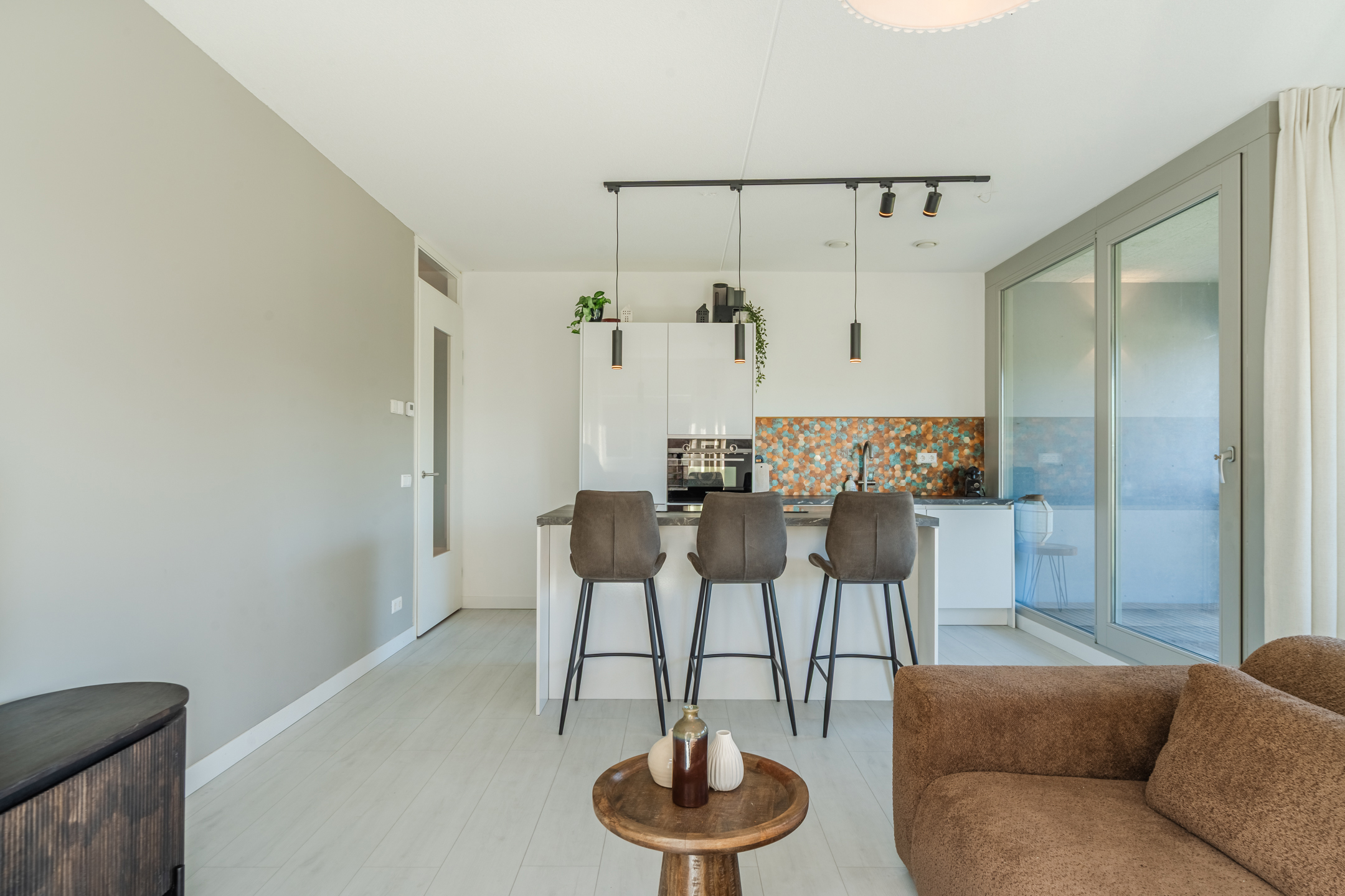 Het appartement met uitzicht over een groenstrook en de Zuidtangent is heerlijk licht. Bij het betreden van het appartement op de 1e verdieping treft u een hal. In de hal treft u een praktische bergkast met wasmachine en droger aansluiting, technische ruimte, meterkast en geheel betegelde toiletruimte met wandcloset en fonteintje. Het appartement heeft een ruime en lichte living met fraaie PVC vloerbedekking met vloerverwarming, gestuukte wanden en een open verbinding met de keuken (2023), welke in een rechte opstelling is geplaatst met kookeiland en voorzien van diverse Siemens inbouwapparatuur, waaronder een vaatwasser met Wifi, 4 pits inductie kookplaat incl. afzuiging, combi-magnetron, koelkast, vriezer en Quooker. De royale slaapkamer is tevens voorzien van een PVC vloer en heeft toegang tot een geheel betegelde badkamer met inloopdouche, wastafel met meubel en spiegel.