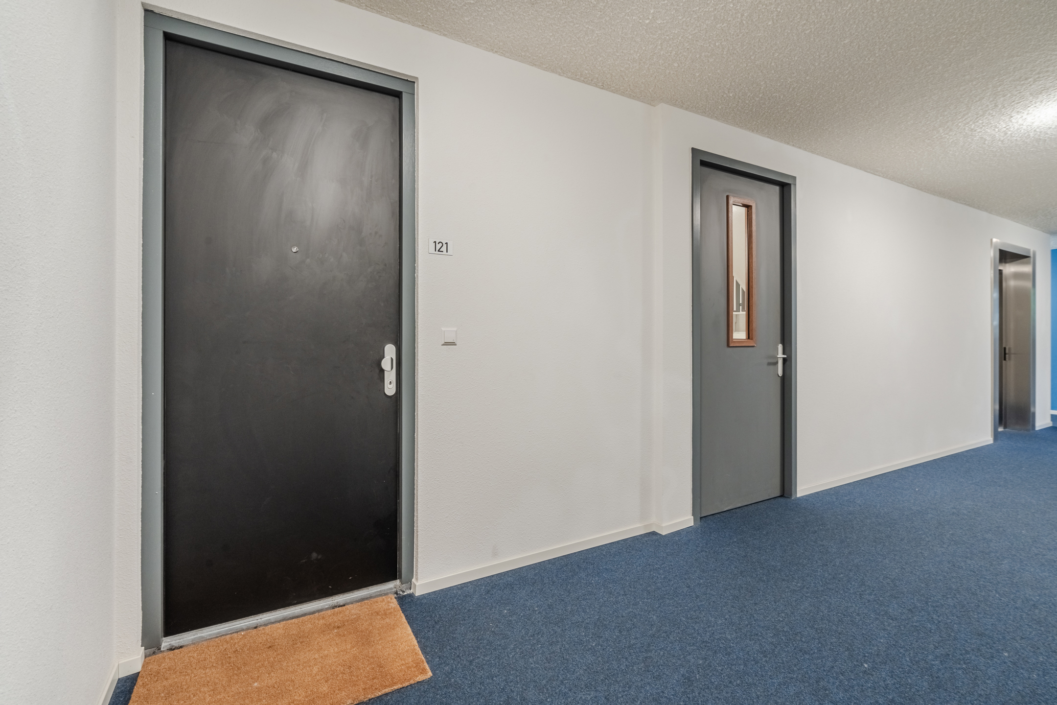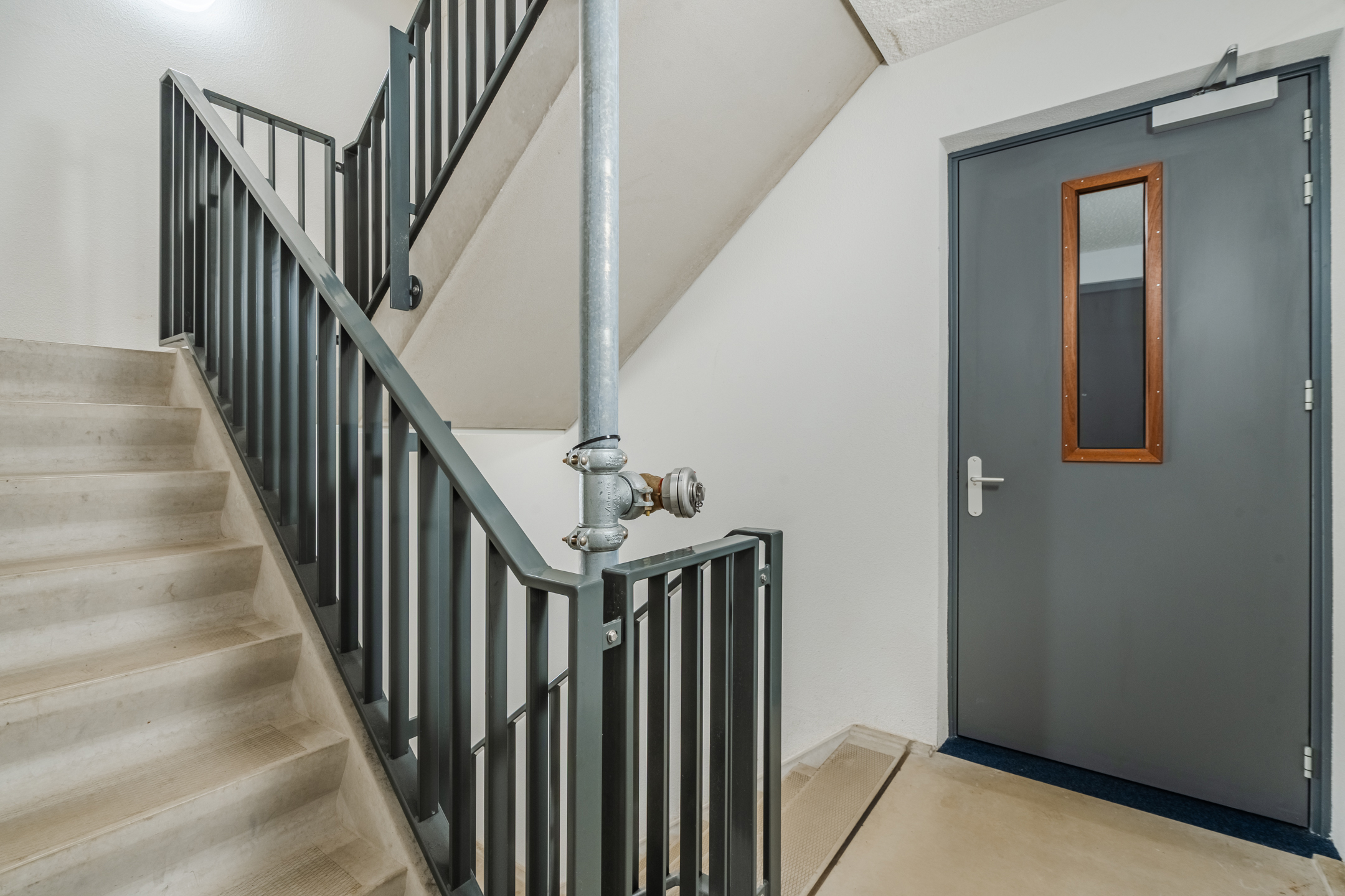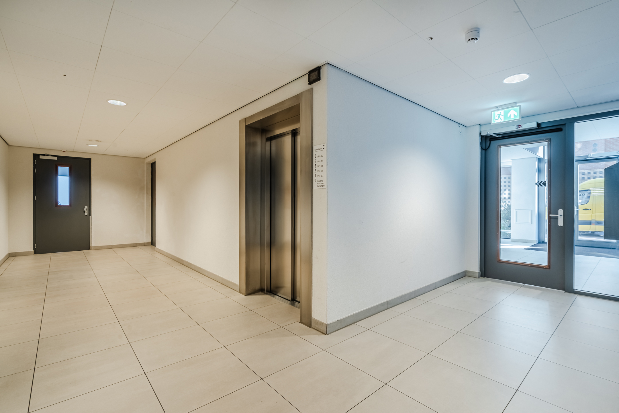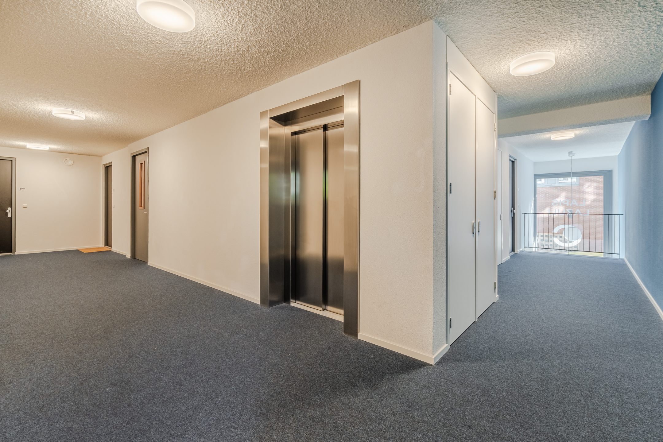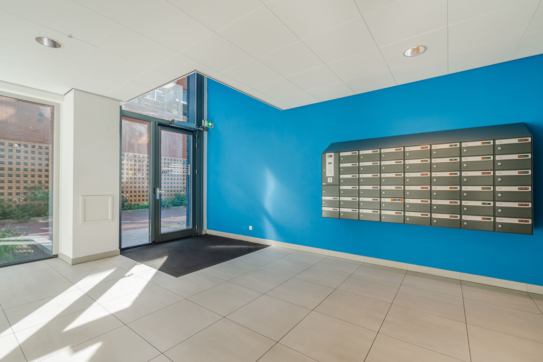 Hoofdentree met brievenbussen en intercom systeem, hal, gang, trappenhuis en lift; toegang tot bergingenstelsel en gemeenschappelijke fietsenberging.