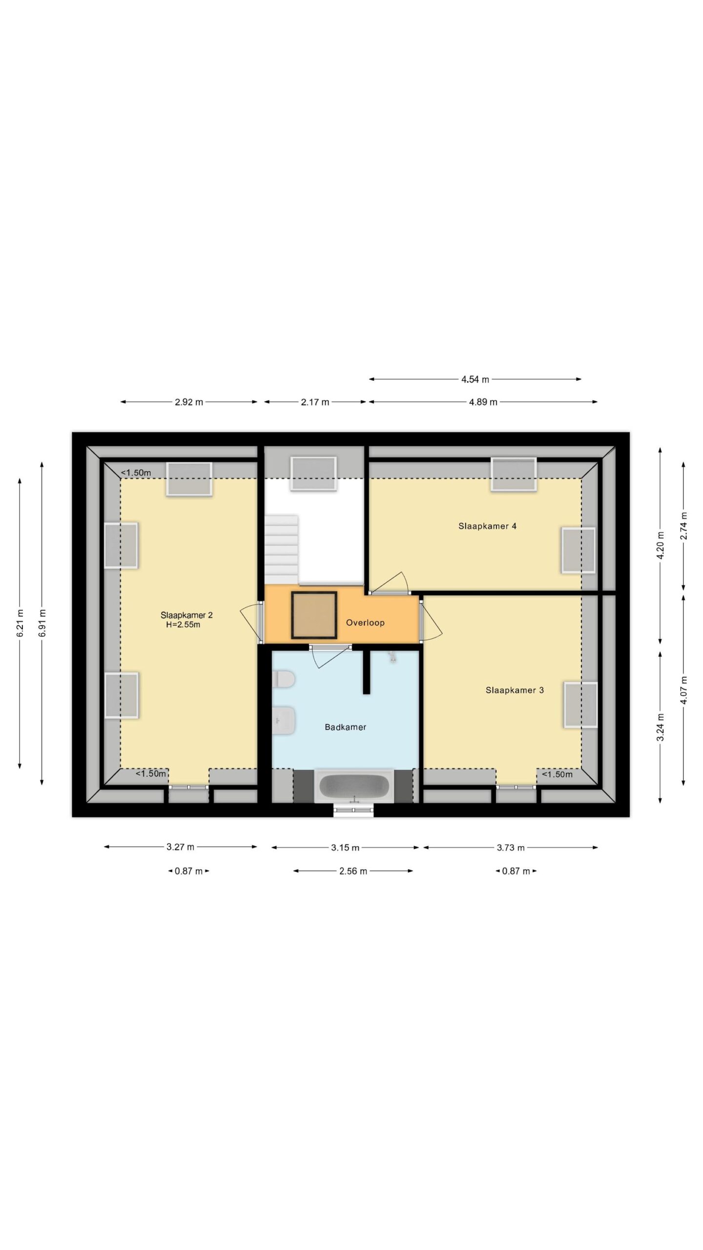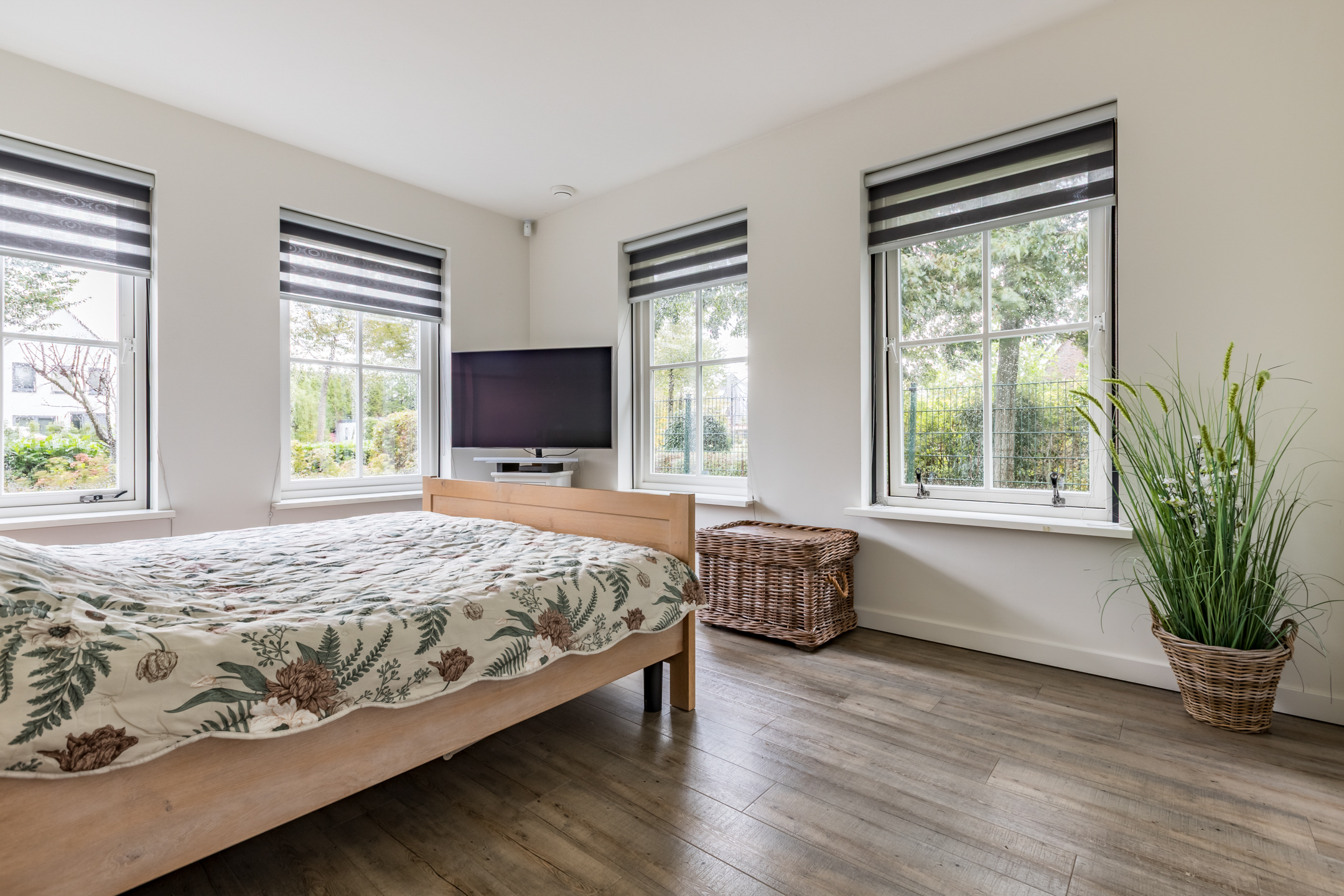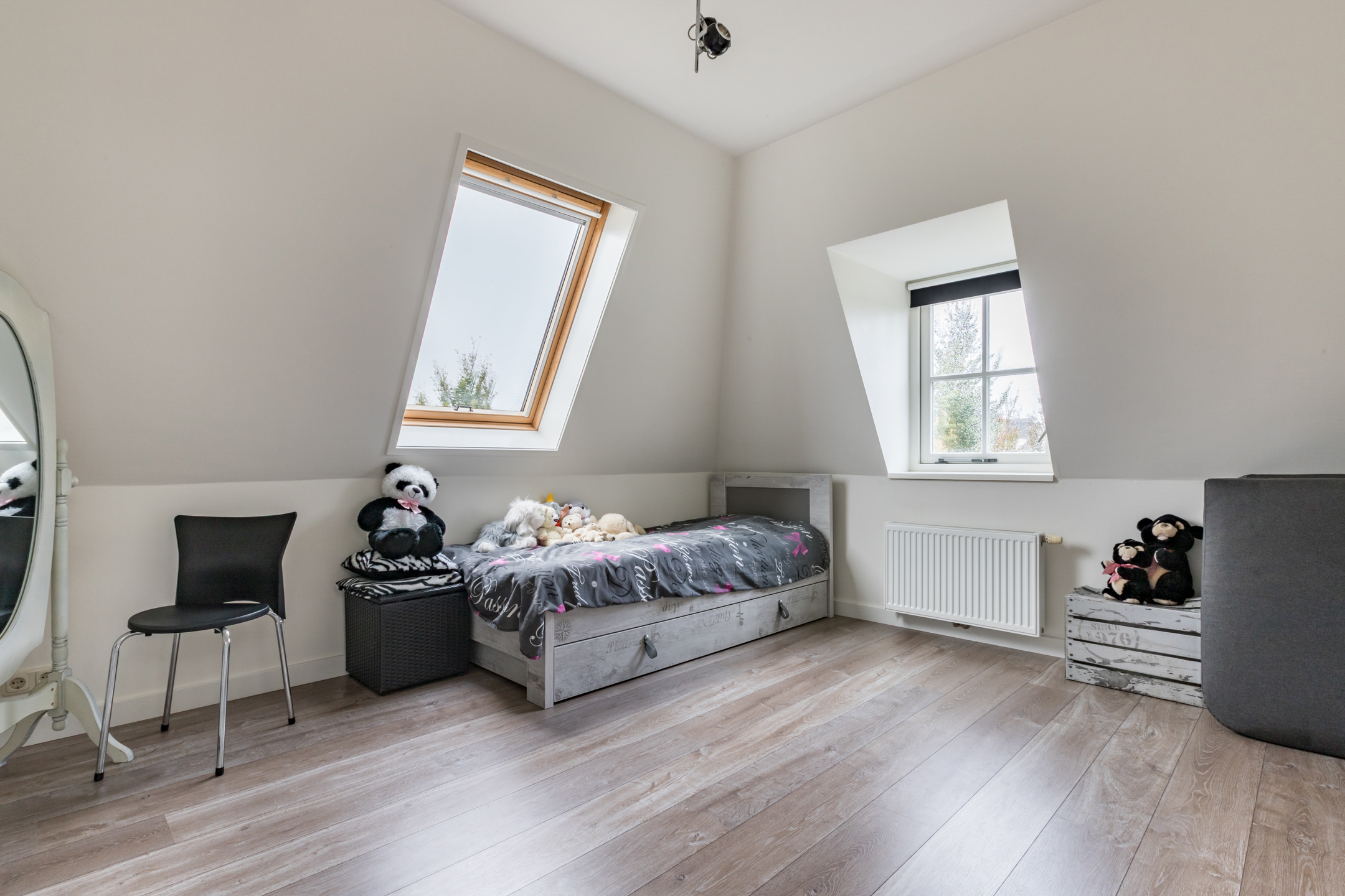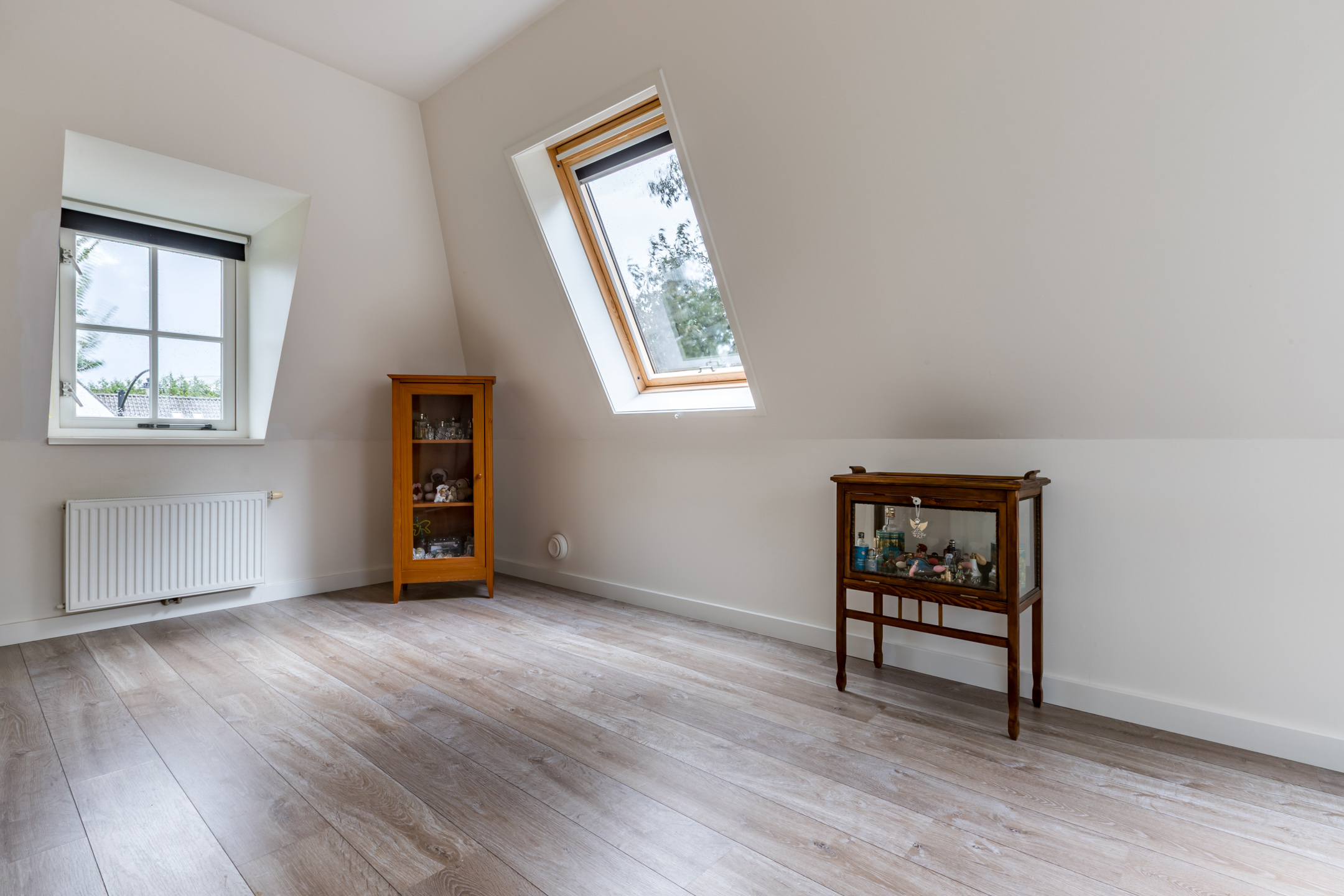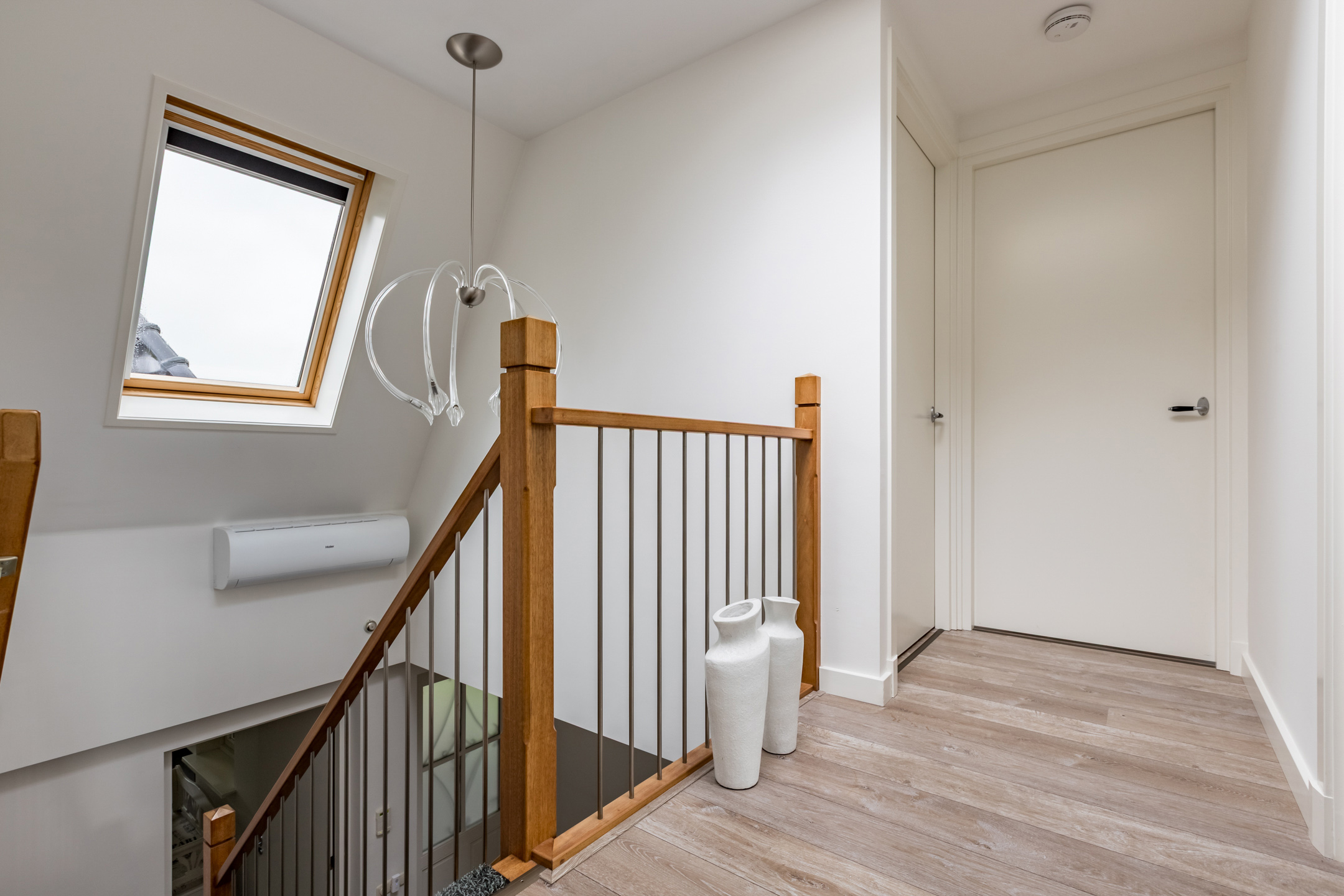 Overloop met toegang tot alle vertrekken op deze verdieping. 3 zeer ruime en lichte slaapkamers. Een moderne badkamer met ligbad, wastafelmeubel, inloopdouche en wandcloset. Alle slaapkamers zijn voorzien van gestuukte wanden, laminaat en houten kozijnen met stompe deuren.