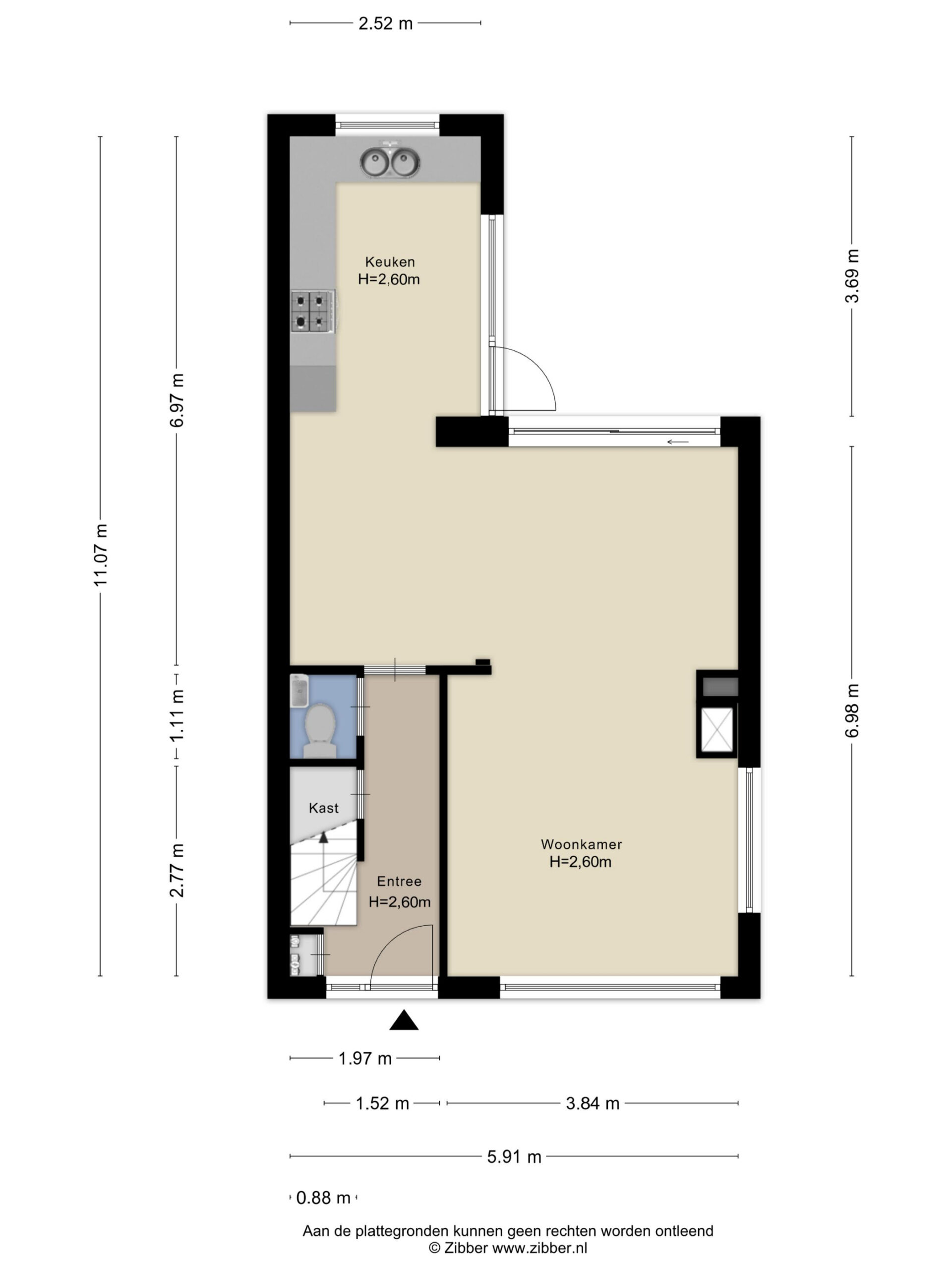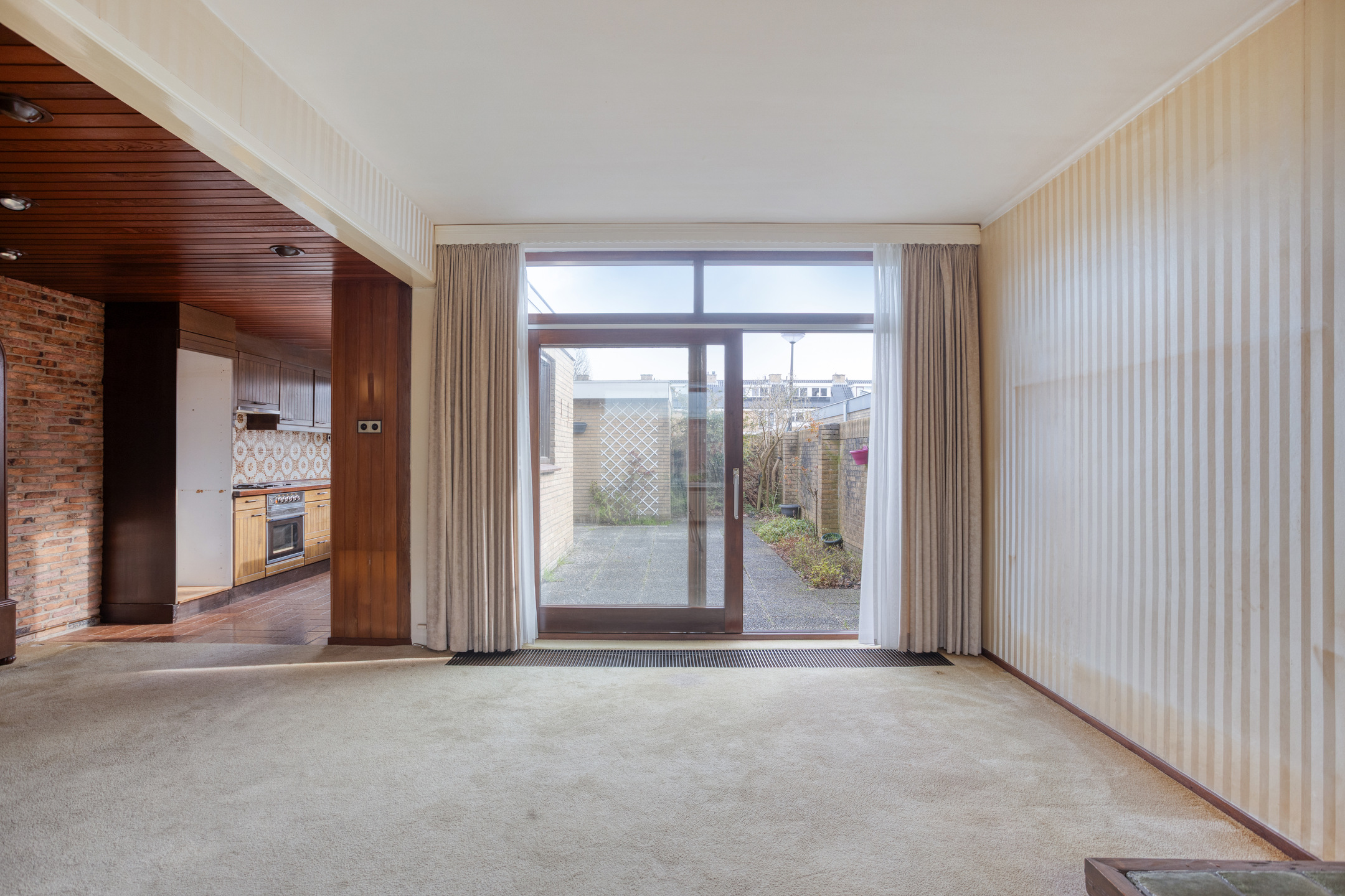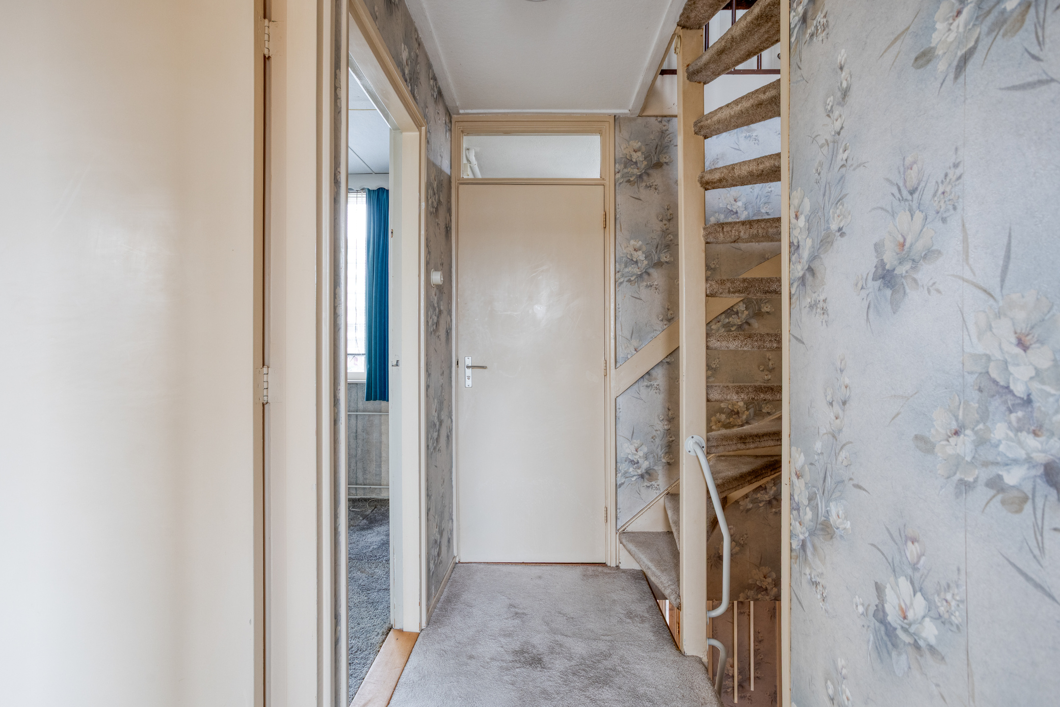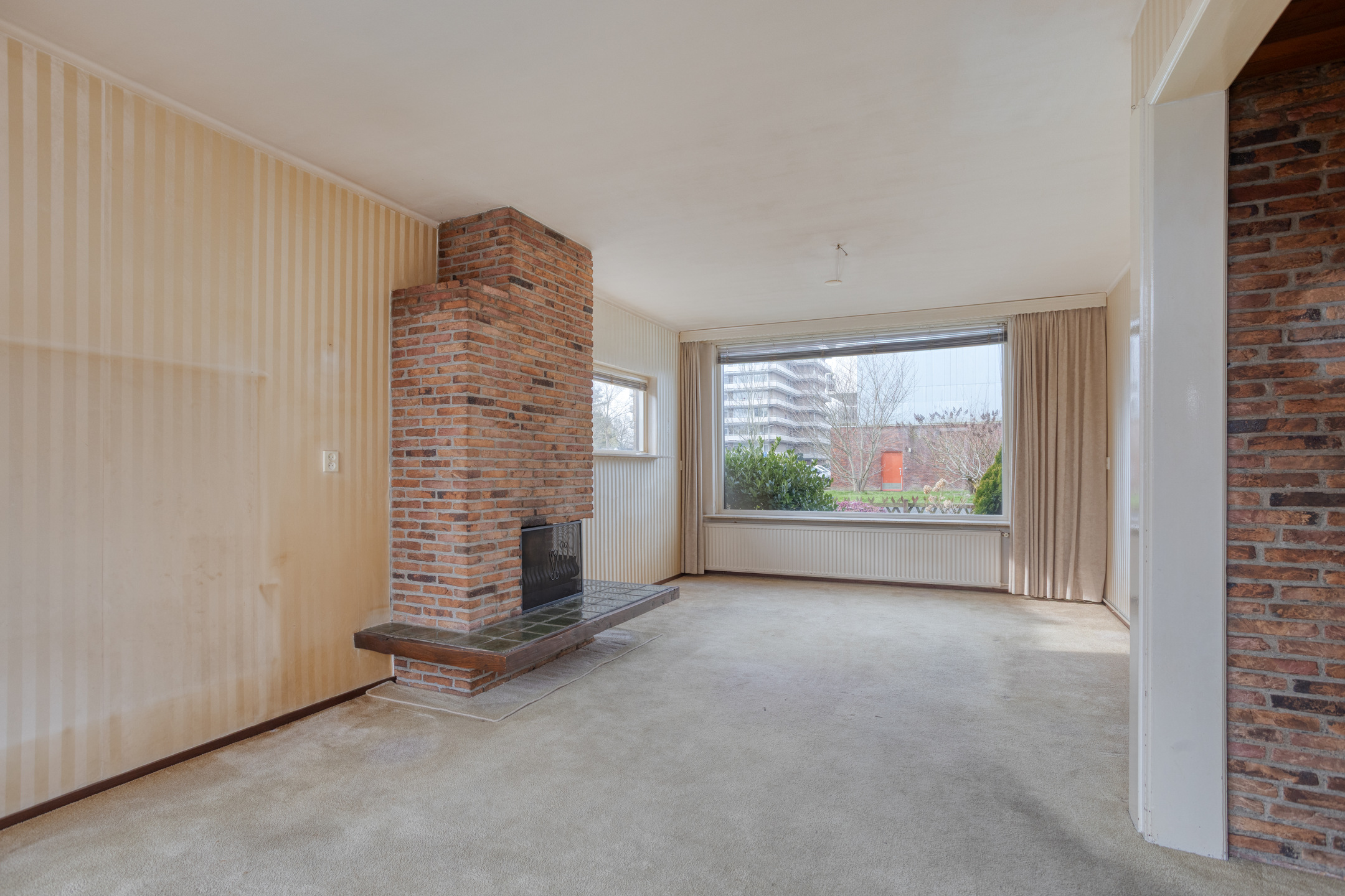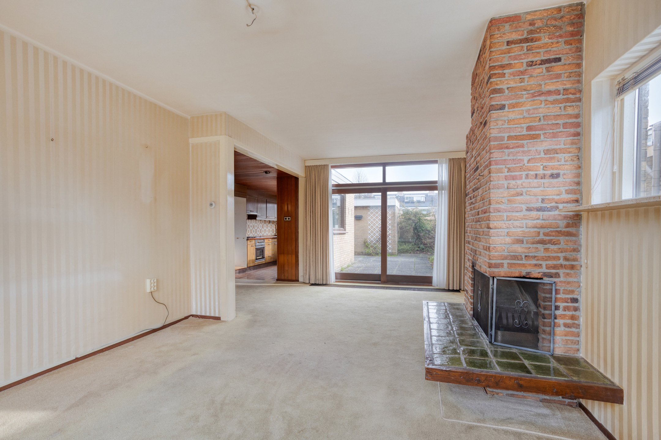 Entree met meterkast, trapopgang, trapkast en het toilet met fonteintje. Vanuit de hal loop je door naar de woonkamer, die zich uitstrekt over de volledige diepte en profiteert van prettig daglicht aan beide zijden. De aanwezige open haard zorgt voor een sfeervol element in de ruimte.
