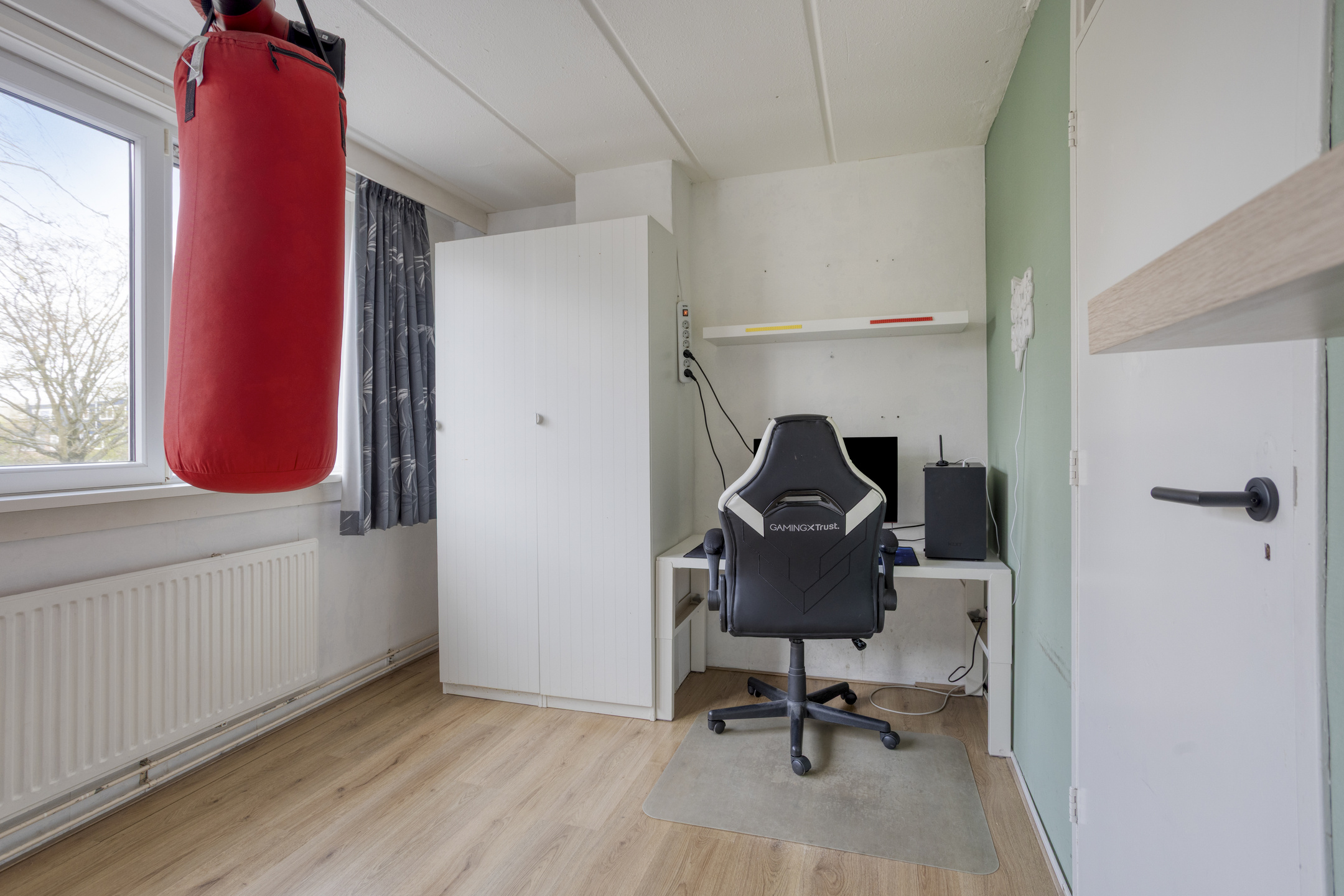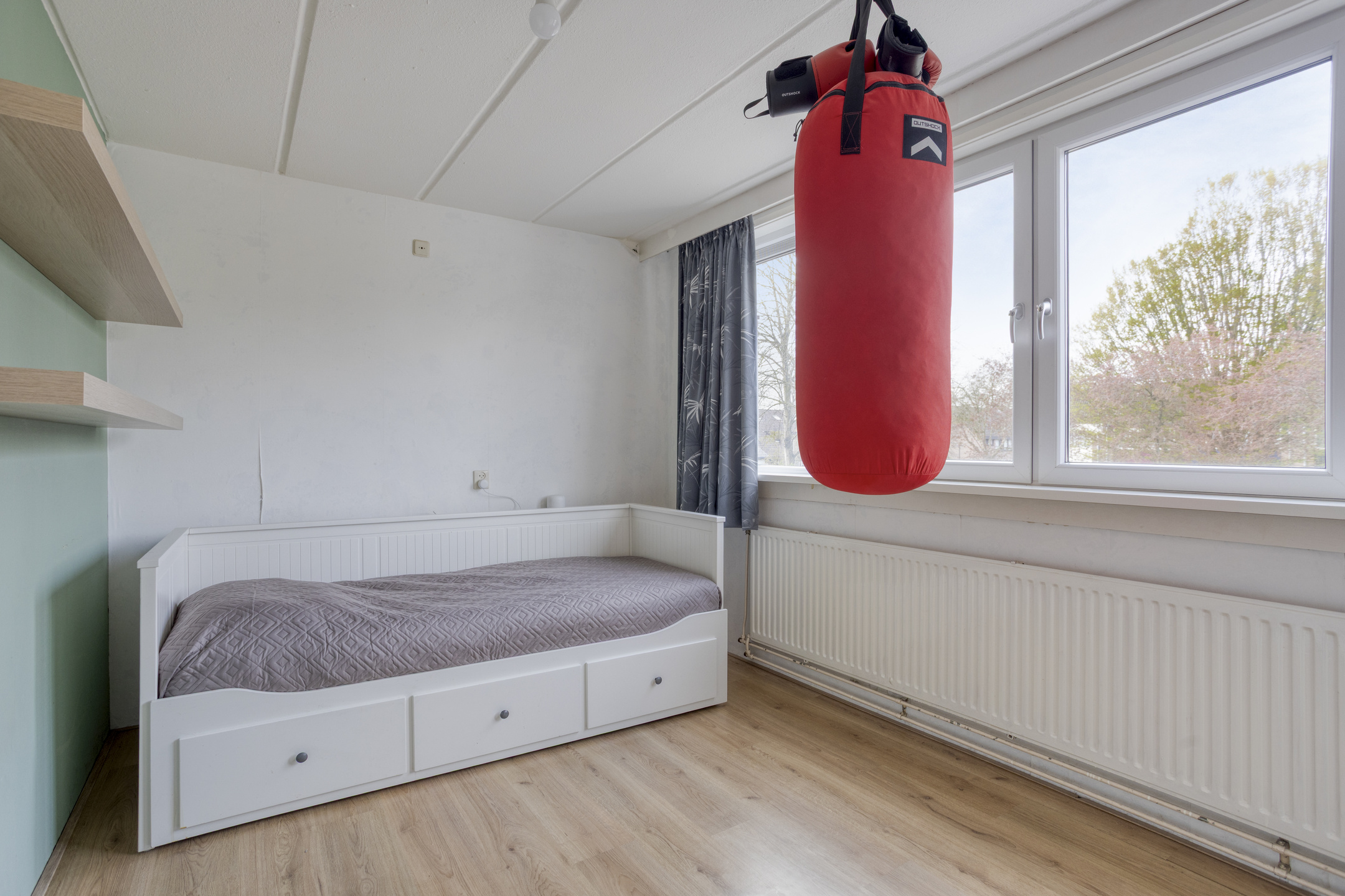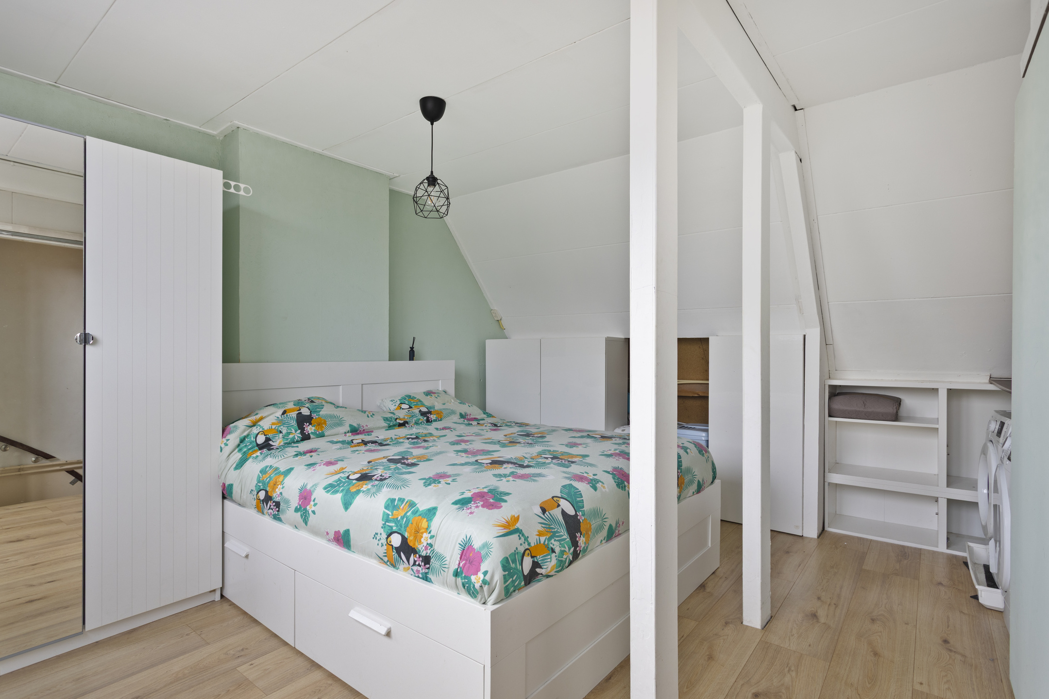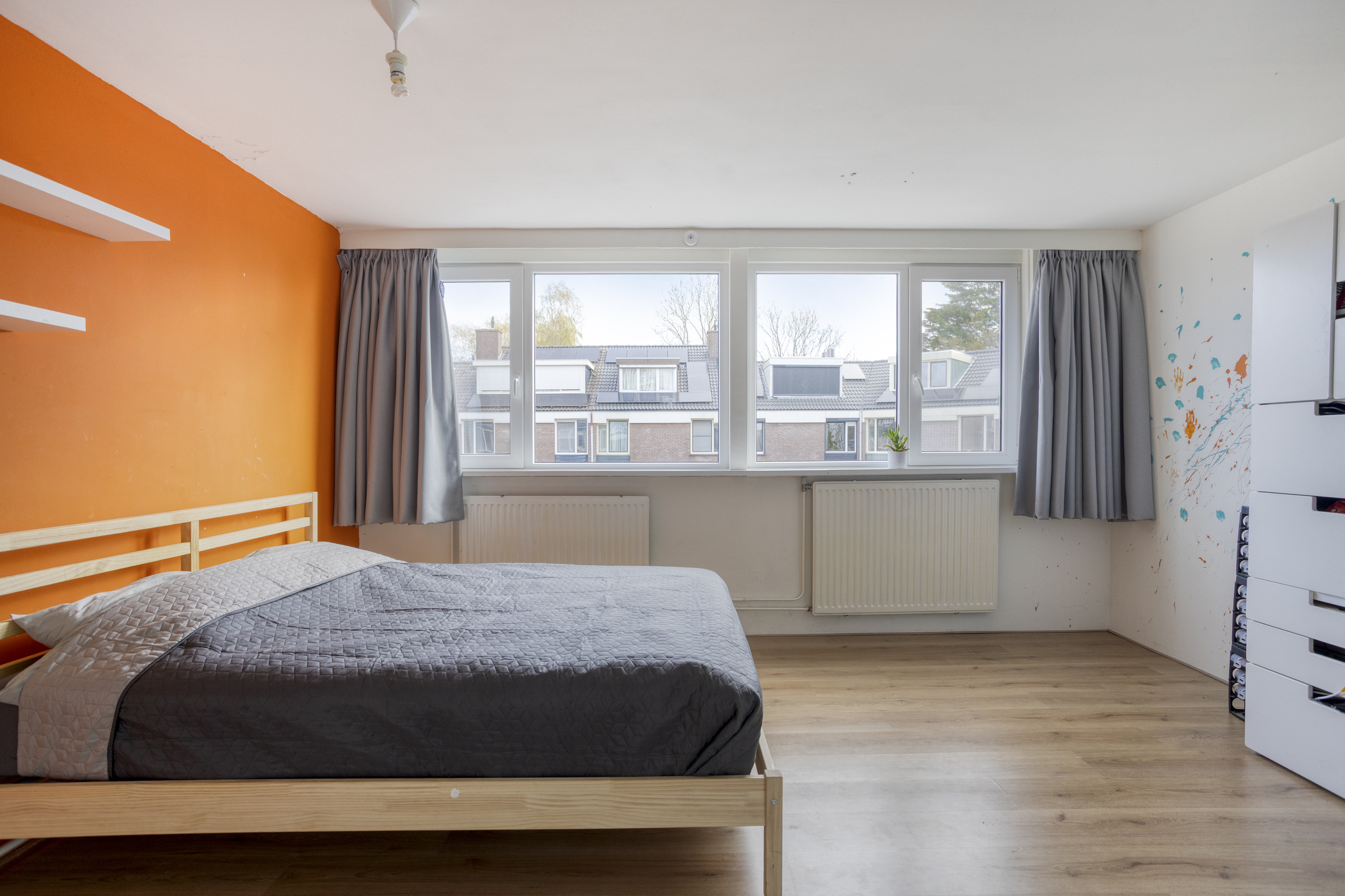Op de eerste verdieping bevinden zich twee slaapkamers en de badkamer. Beide kamers zijn van goed formaat (ca. 12,5 en 17 m²) en hebben een prettige lichtinval. De badkamer is in 2022 vernieuwd en uitgevoerd met een inloopdouche, wastafelmeubel met dubbele opbouwkom en een wandcloset. De afwerking is modern en strak, met een rustige kleurstelling. Aan de overloop grenst tevens een praktische bergkast.