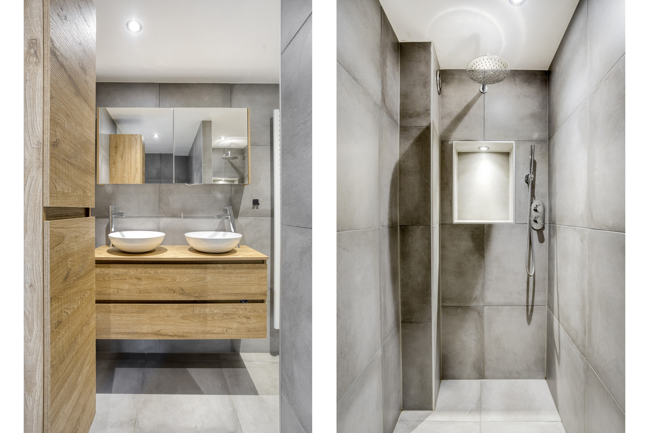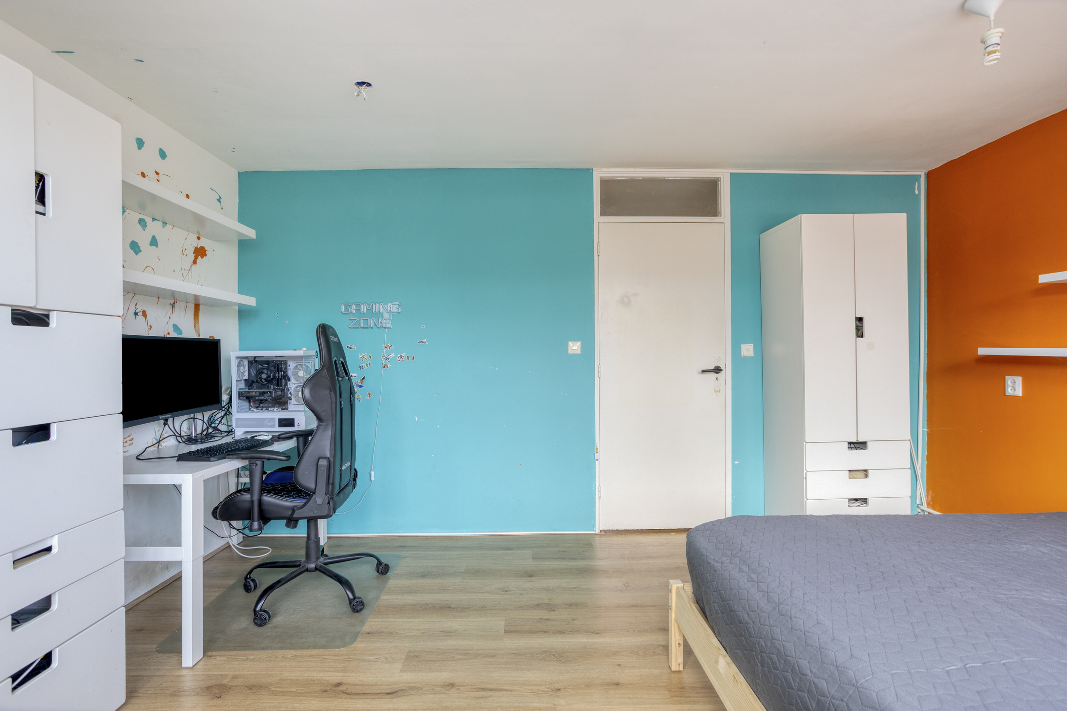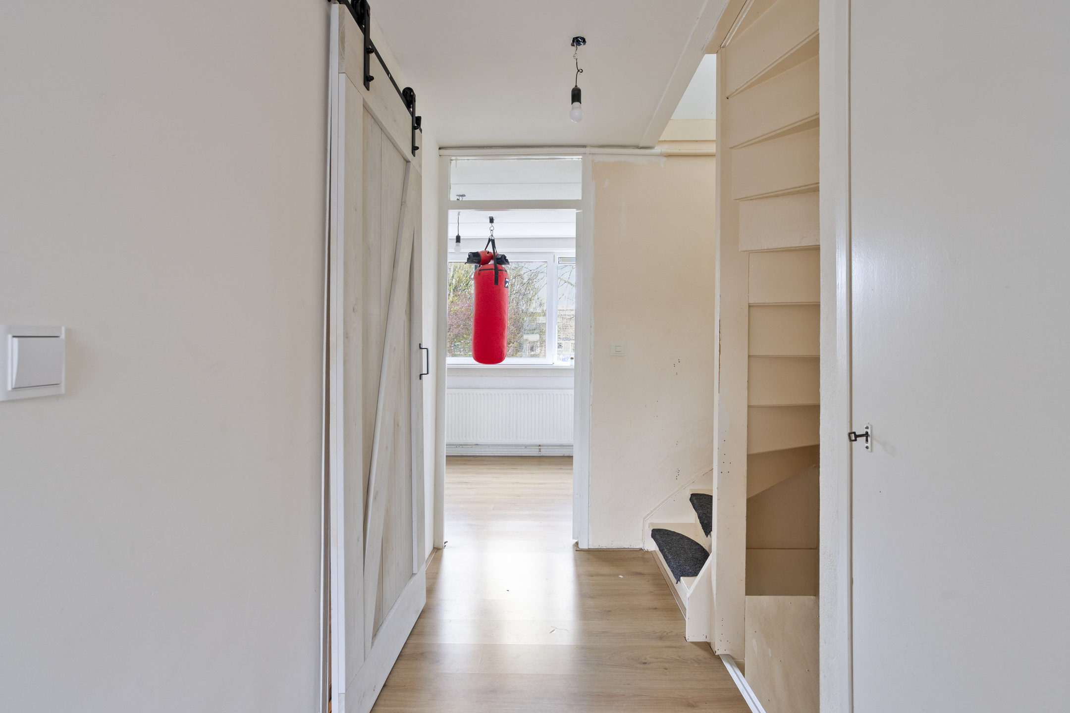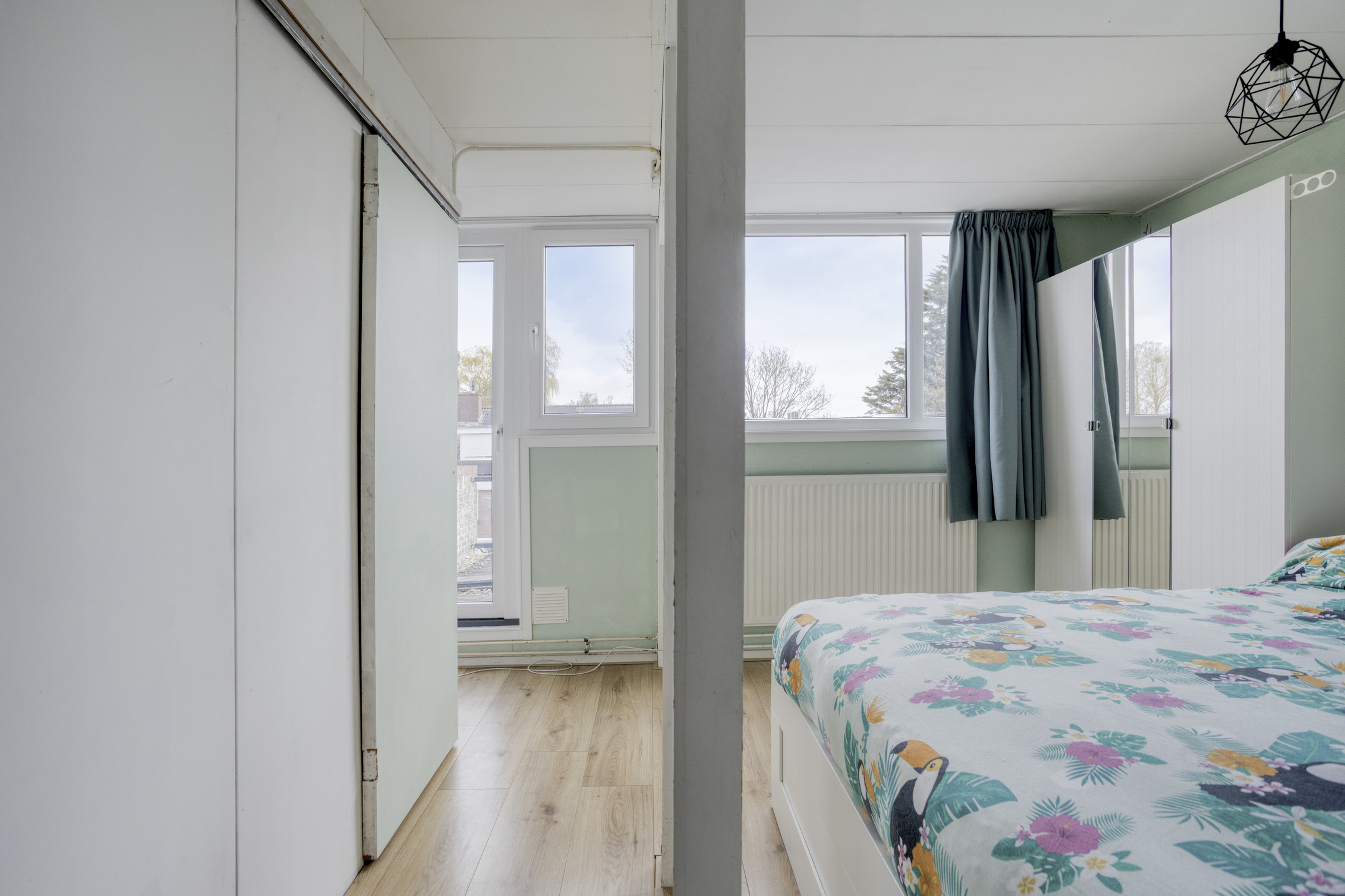 Op de eerste verdieping bevinden zich twee slaapkamers en de badkamer. Beide kamers zijn van goed formaat (ca. 12,5 en 17 m²) en hebben een prettige lichtinval. De badkamer is in 2022 vernieuwd en uitgevoerd met een inloopdouche, wastafelmeubel met dubbele opbouwkom en een wandcloset. De afwerking is modern en strak, met een rustige kleurstelling. Aan de overloop grenst tevens een praktische bergkast.