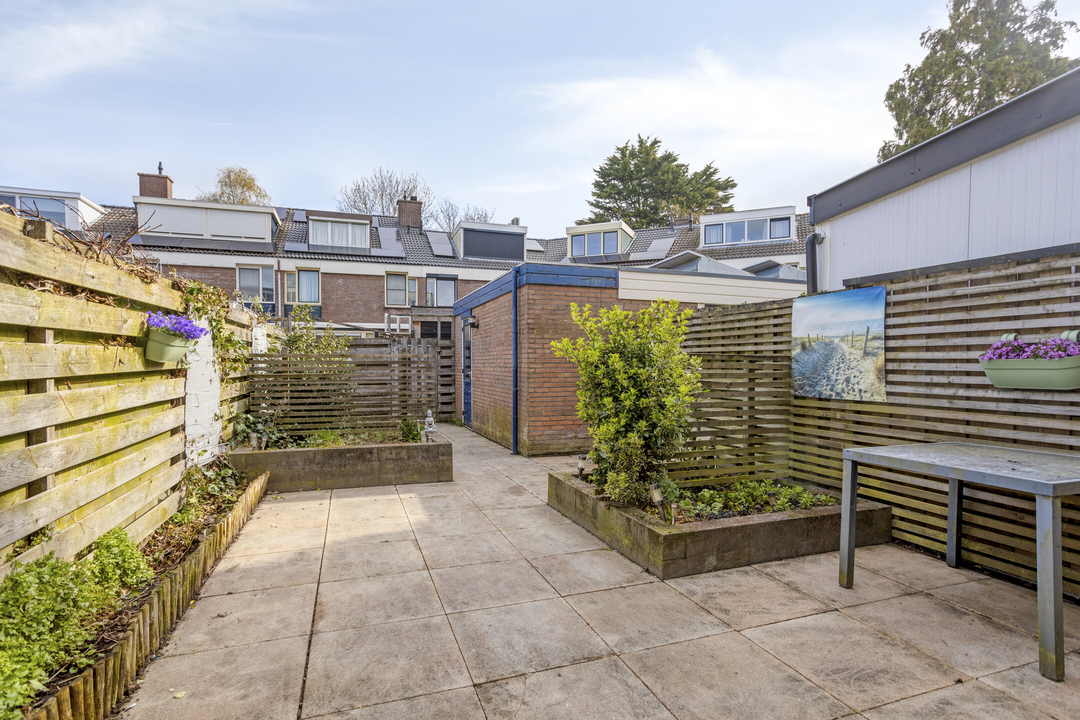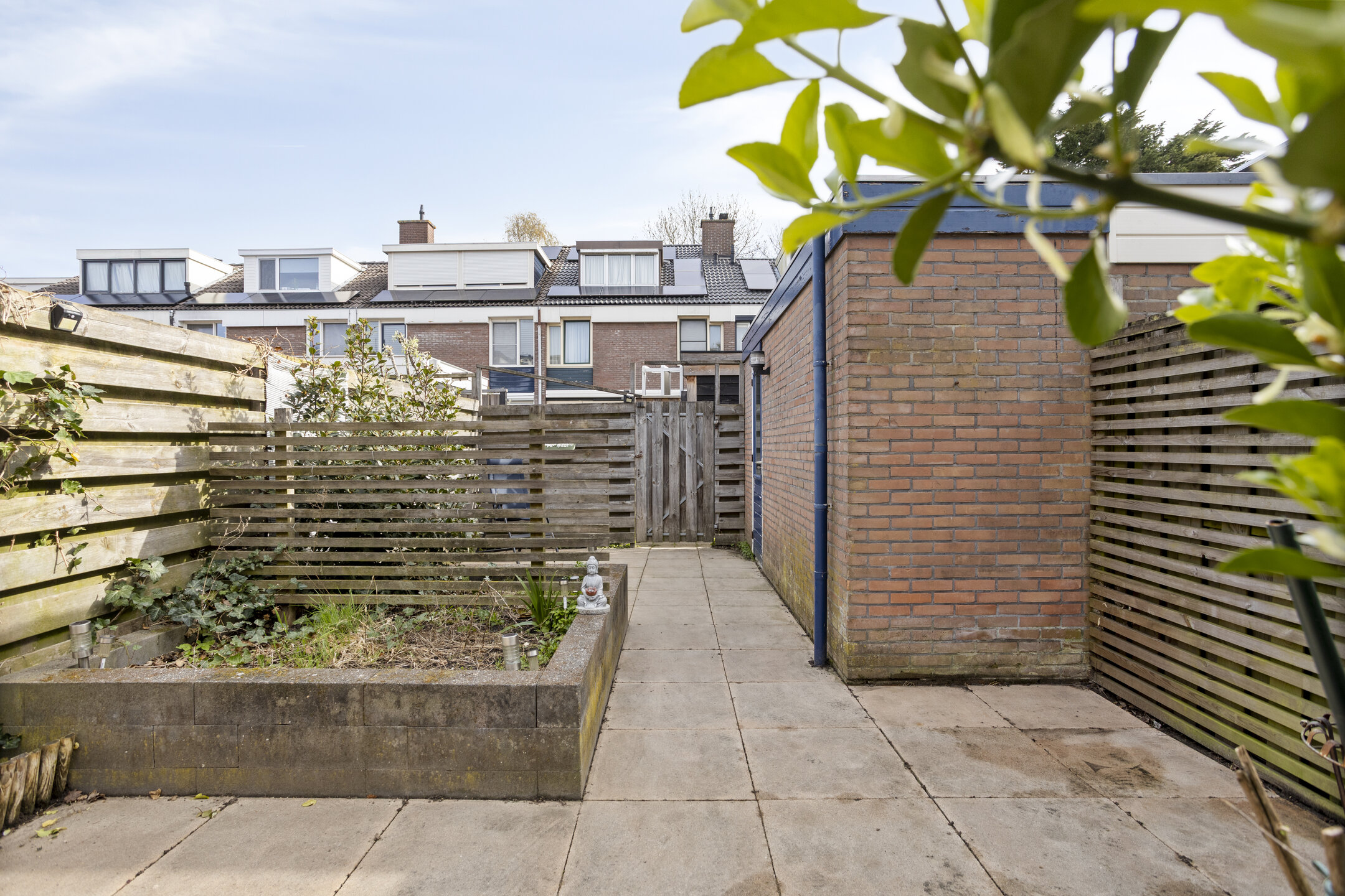De achtertuin is onderhoudsvriendelijk aangelegd met bestrating en groenborders. Ook hier is genoeg ruimte voor gezellige zitplekken. Bovendien beschik je over een stenen berging, en is de tuin ook via de achterom bereikbaar. Parkeren kan in de directe omgeving van de woning.