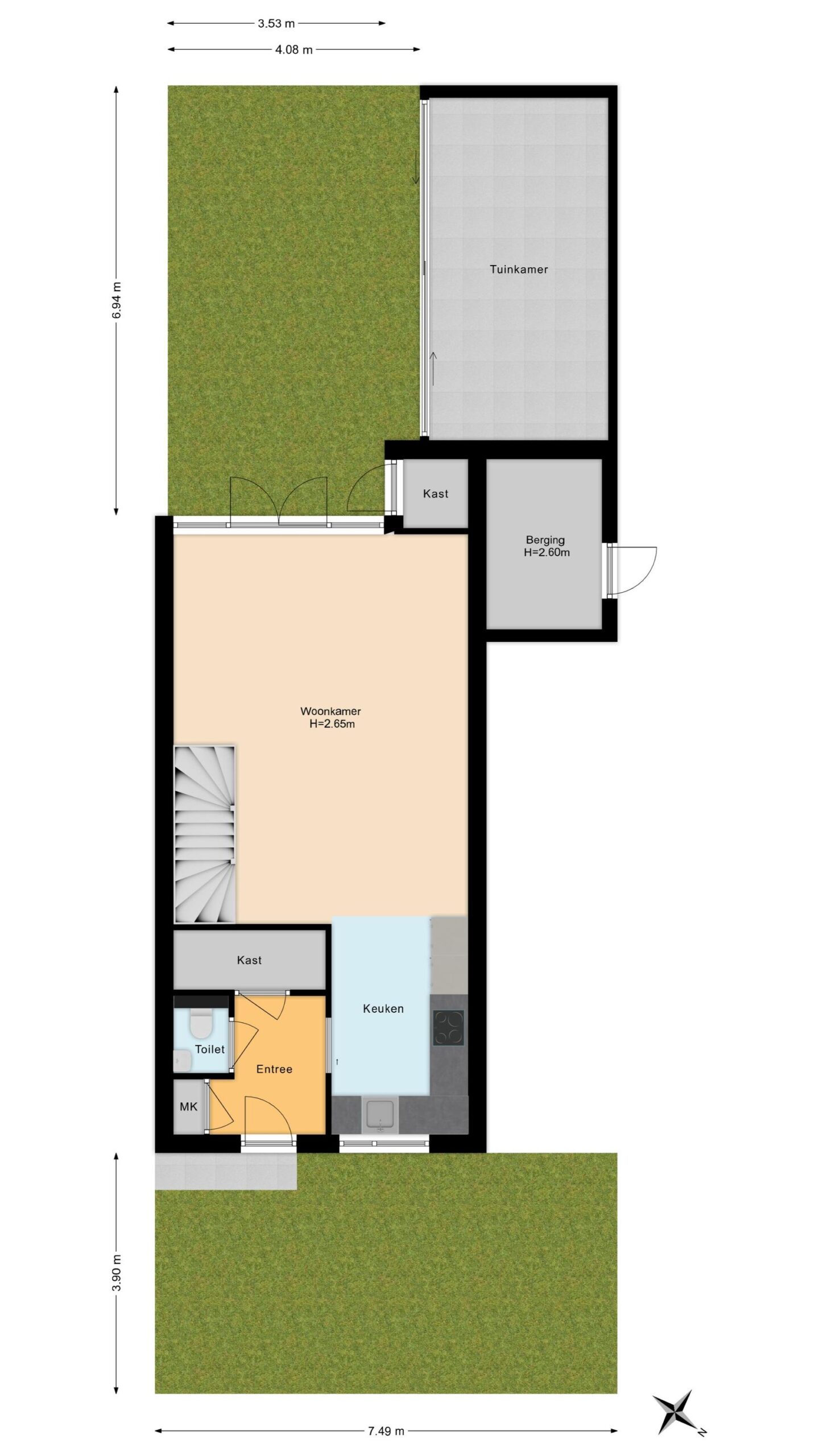 ⢠Woonoppervlakte 87 m2 (stenen berging van 6m2)